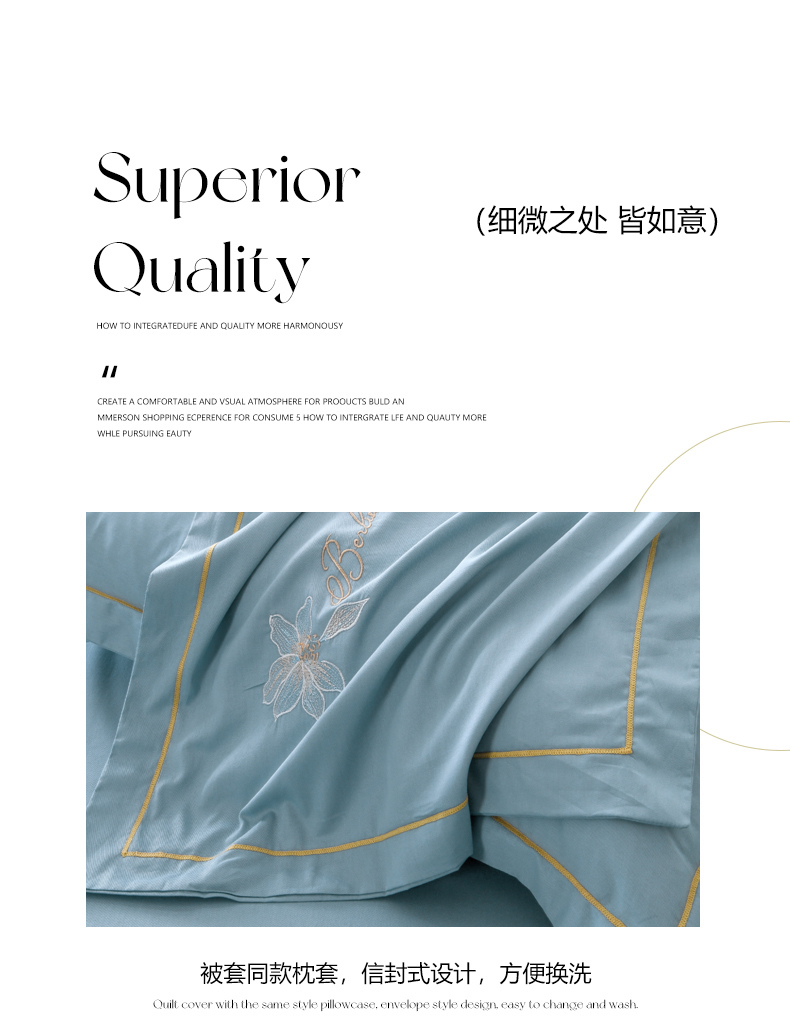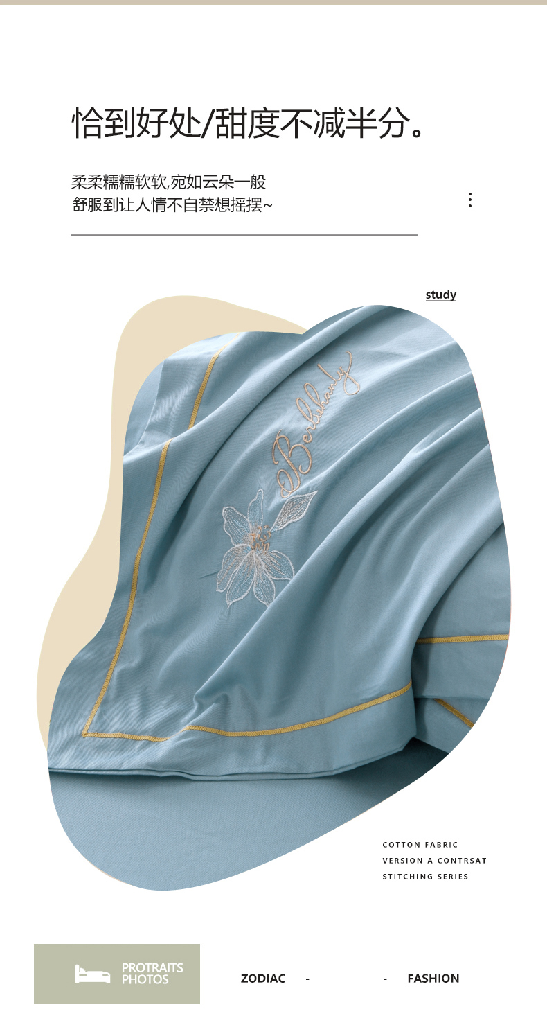 (总)布乐意 2021新欧美风绣花40S全棉轻奢风四件套纯棉,宾利蓝,草绿,淡雅蓝,豆沙,粉色,金黄,咖啡,浅紫,银灰,紫色