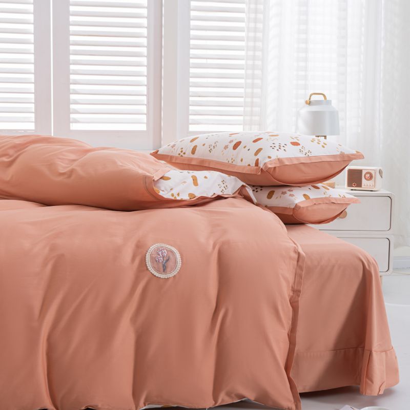 (总)优姿家纺 2026新款全棉拼接绣花四件套,繁花粉,繁花灰,繁花桔,繁花蓝,繁花绿,繁花紫