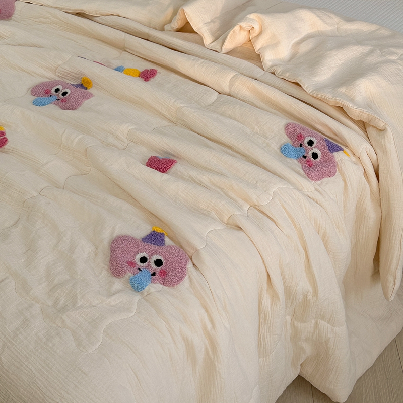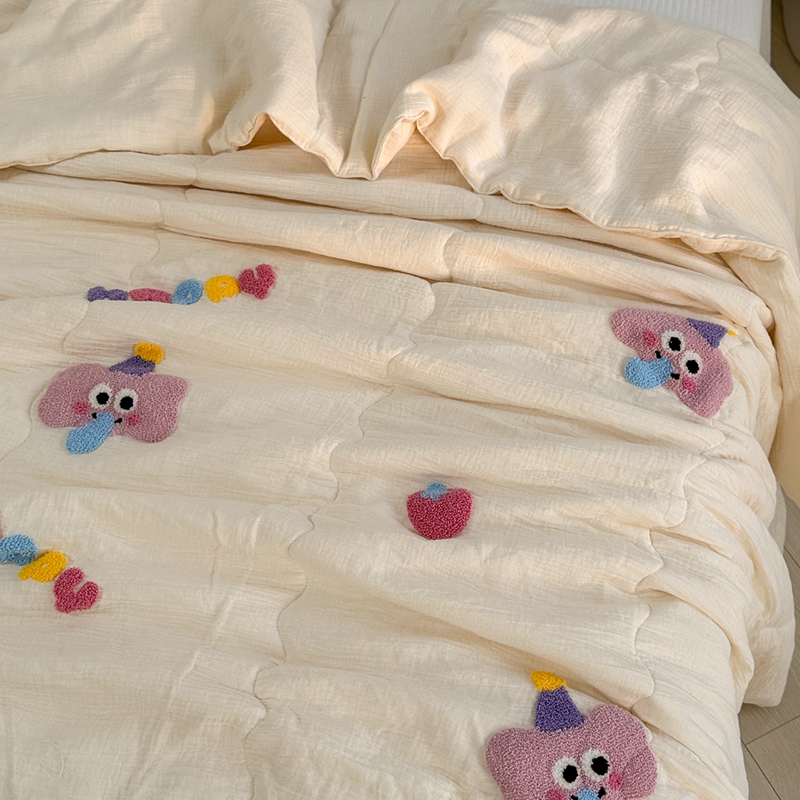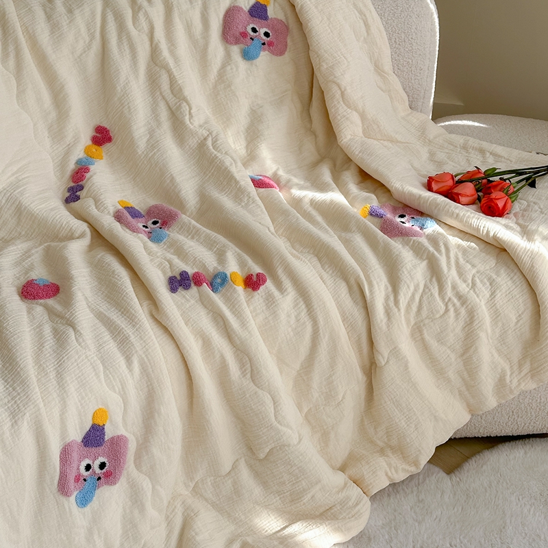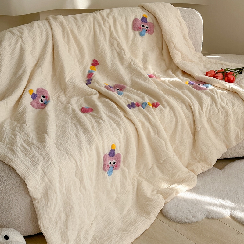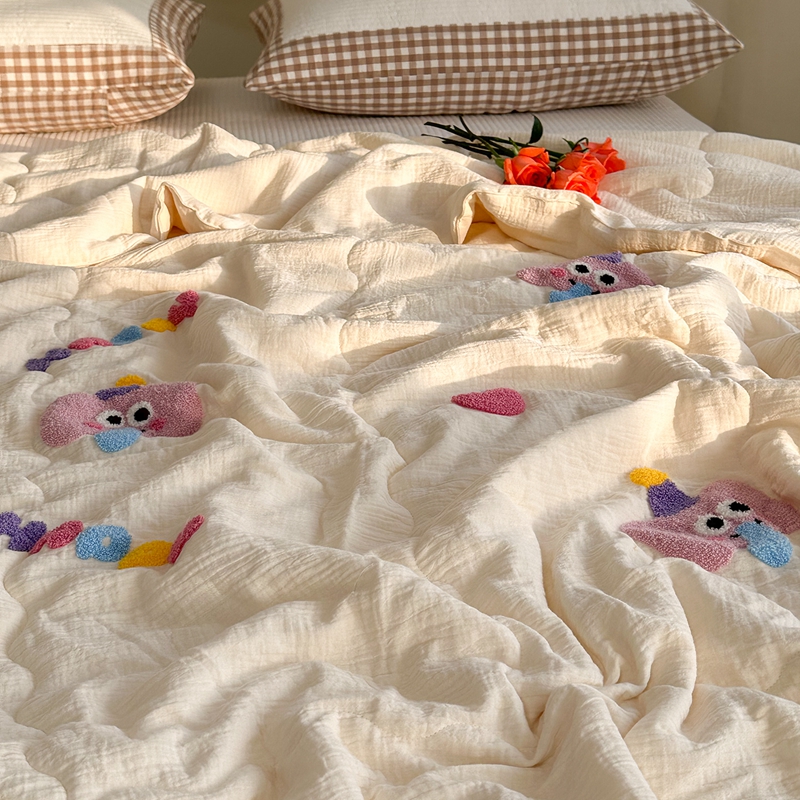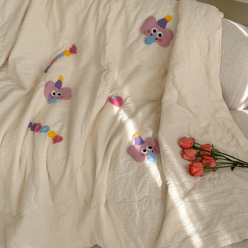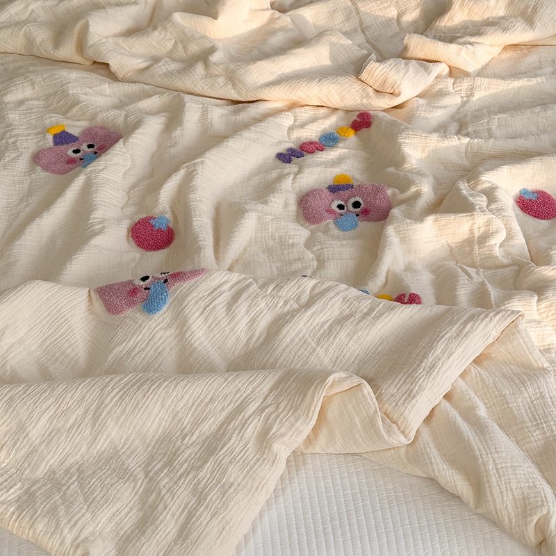 洋铭区(原狠狠爱)2024新款皱皱纱绣花夏被 糖粉小象
