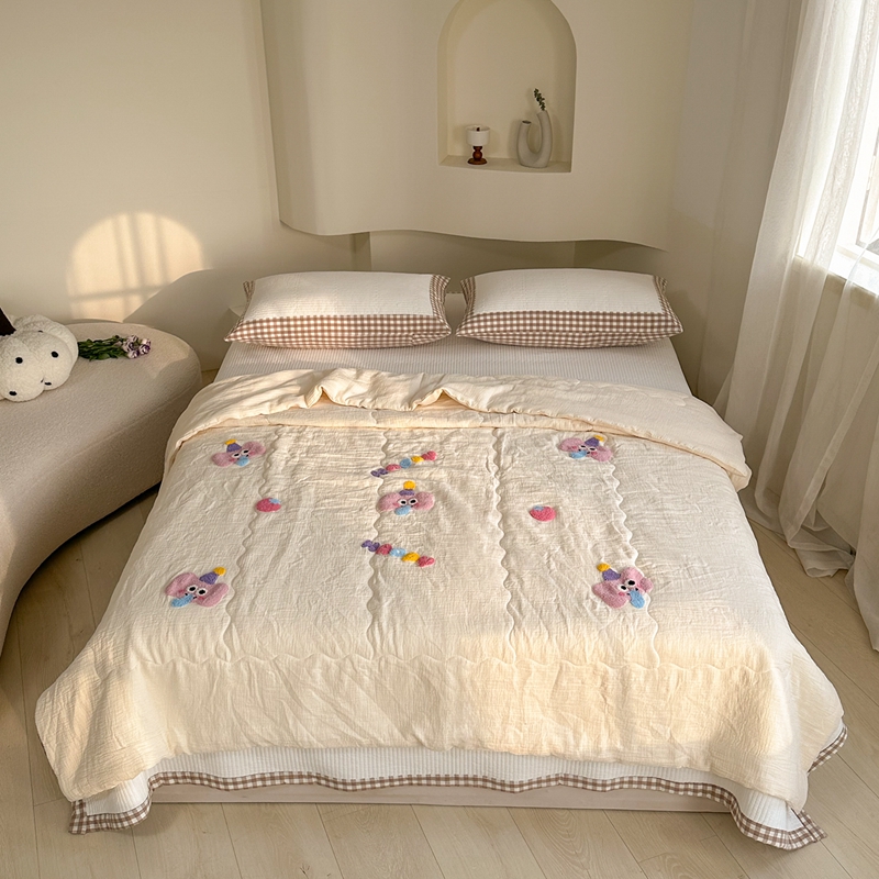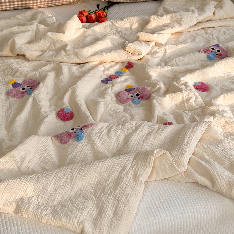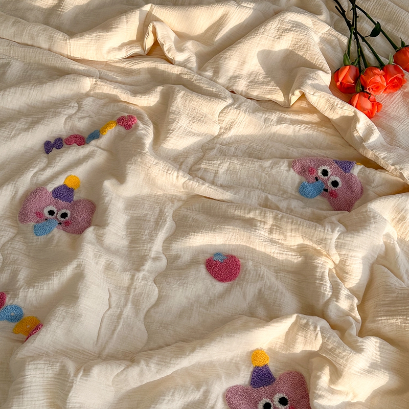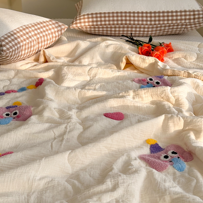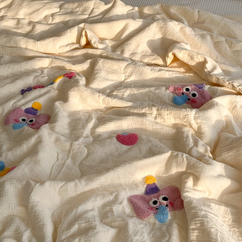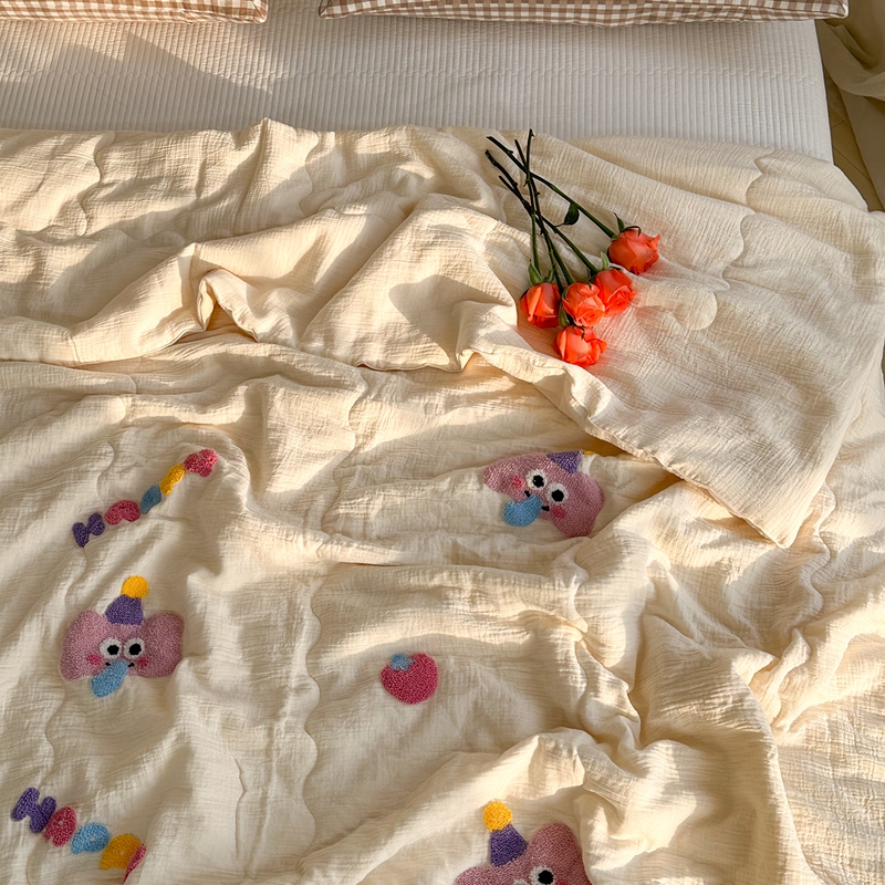 洋铭区(原狠狠爱)2024新款皱皱纱绣花夏被 糖粉小象