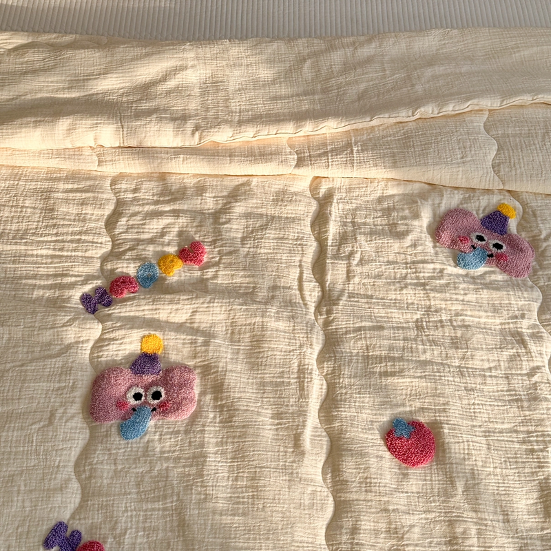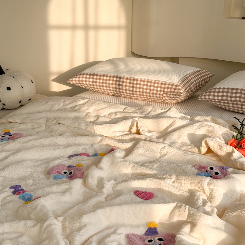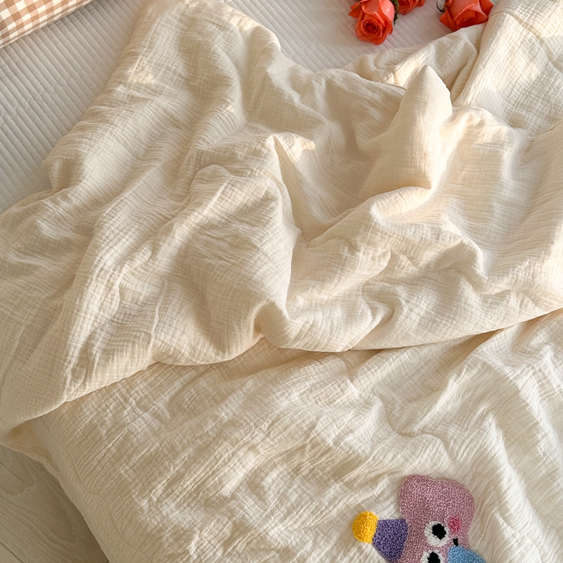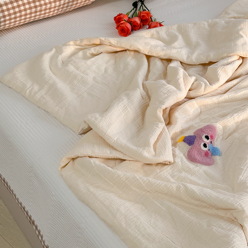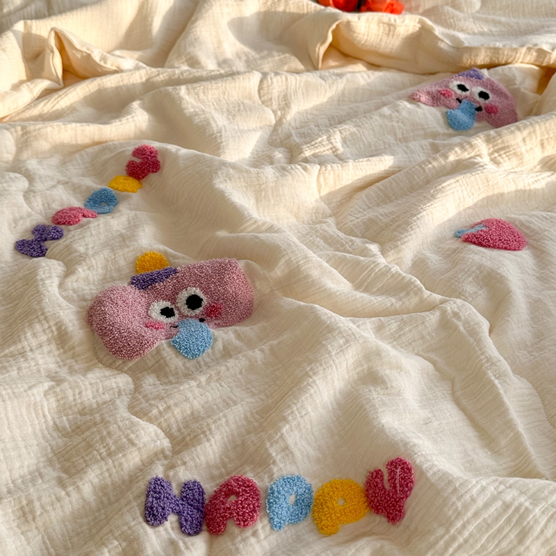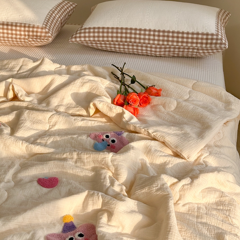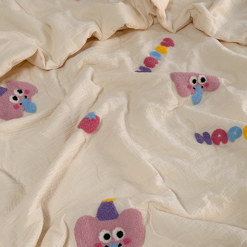 洋铭区(原狠狠爱)2024新款皱皱纱绣花夏被 糖粉小象