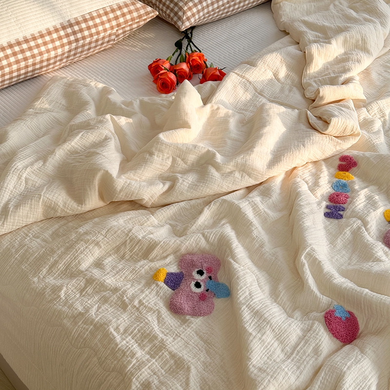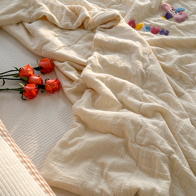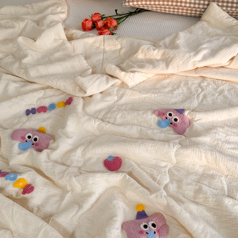(总)洋铭区 2023新款全棉皱皱双层纱夏被,粉色郁金香,甜萝卜,旺旺熊,微笑,香甜草莓,小花仙,小鸭鸭