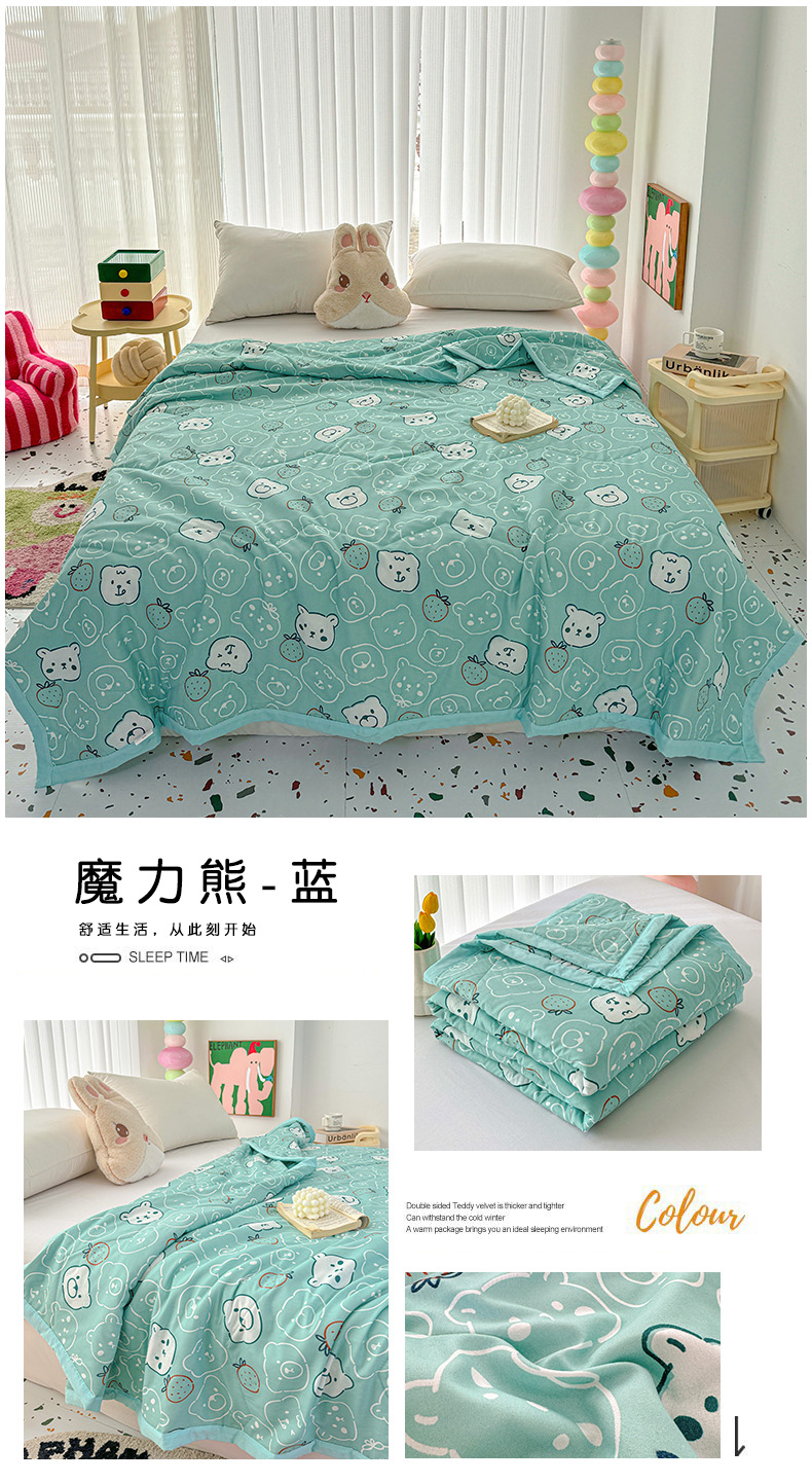 简冠家纺 2024新款水洗棉夏被 魔力熊-蓝