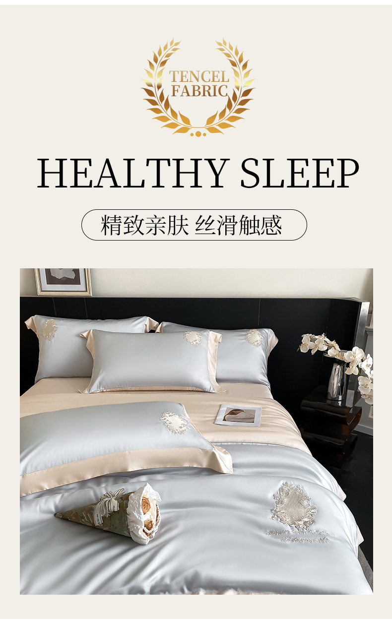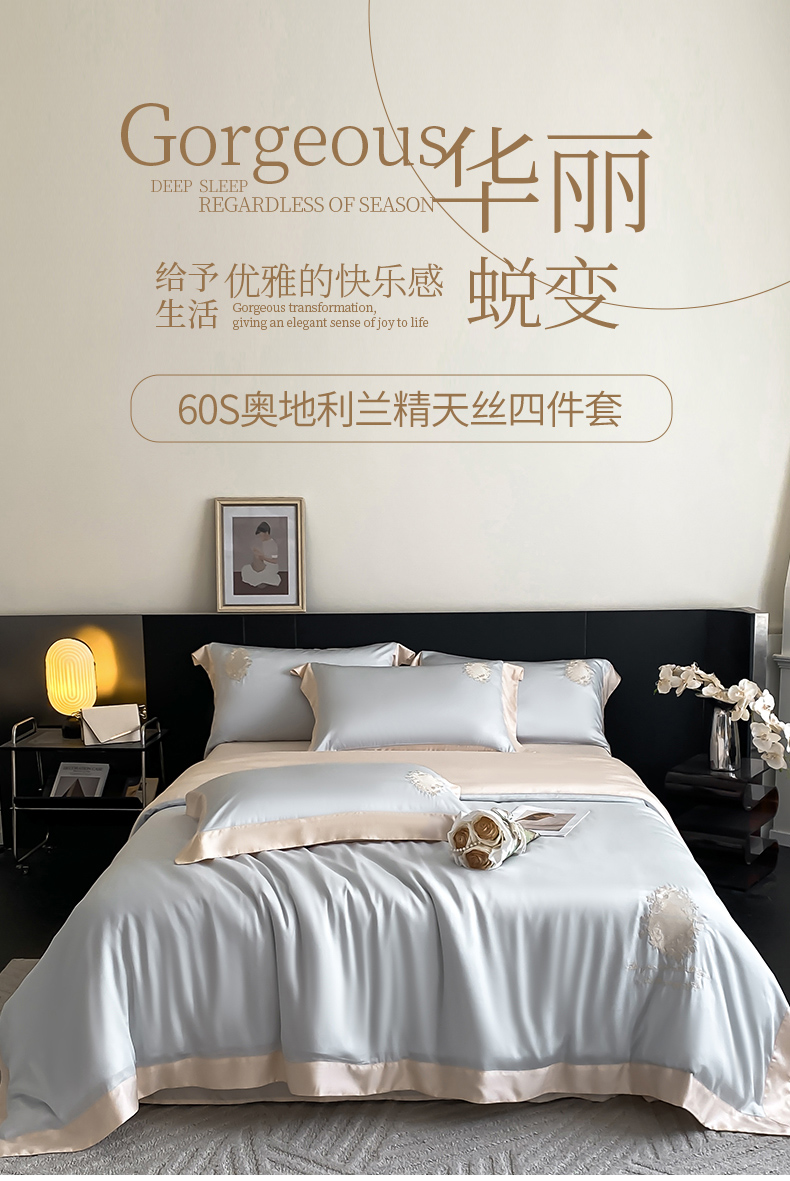 爱缦 2024新款60支奥地利兰精四件套--洛丽塔系列 绵绵海盐
