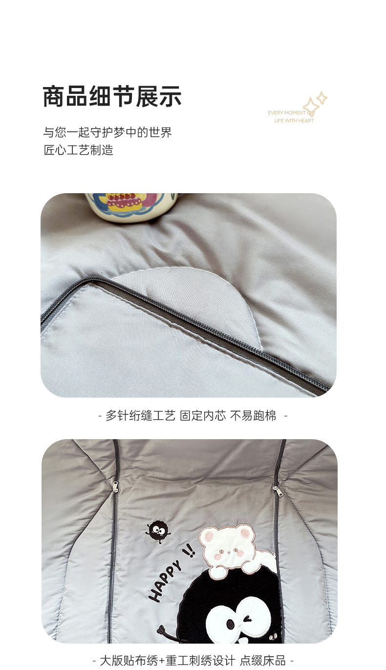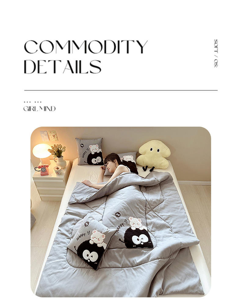 商品名称:铭宣家居 2024新款贴布绣+重工刺绣多功能抱枕被系列 可爱煤球 可爱煤球-灰色