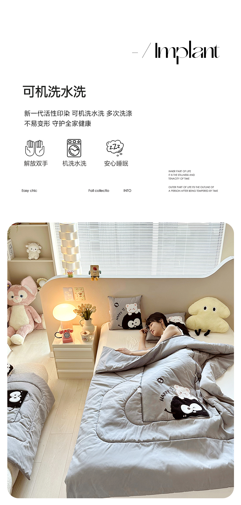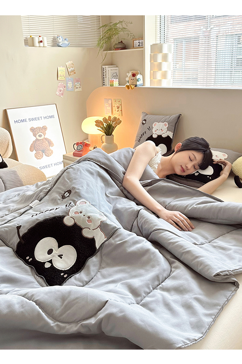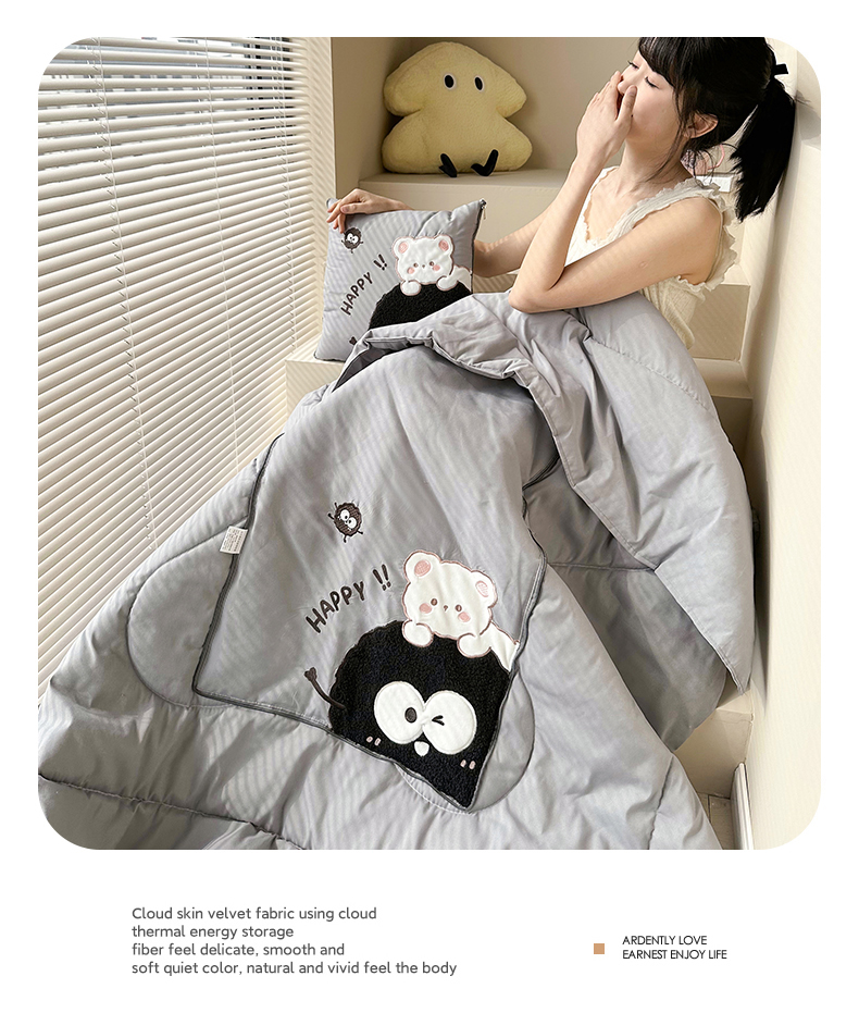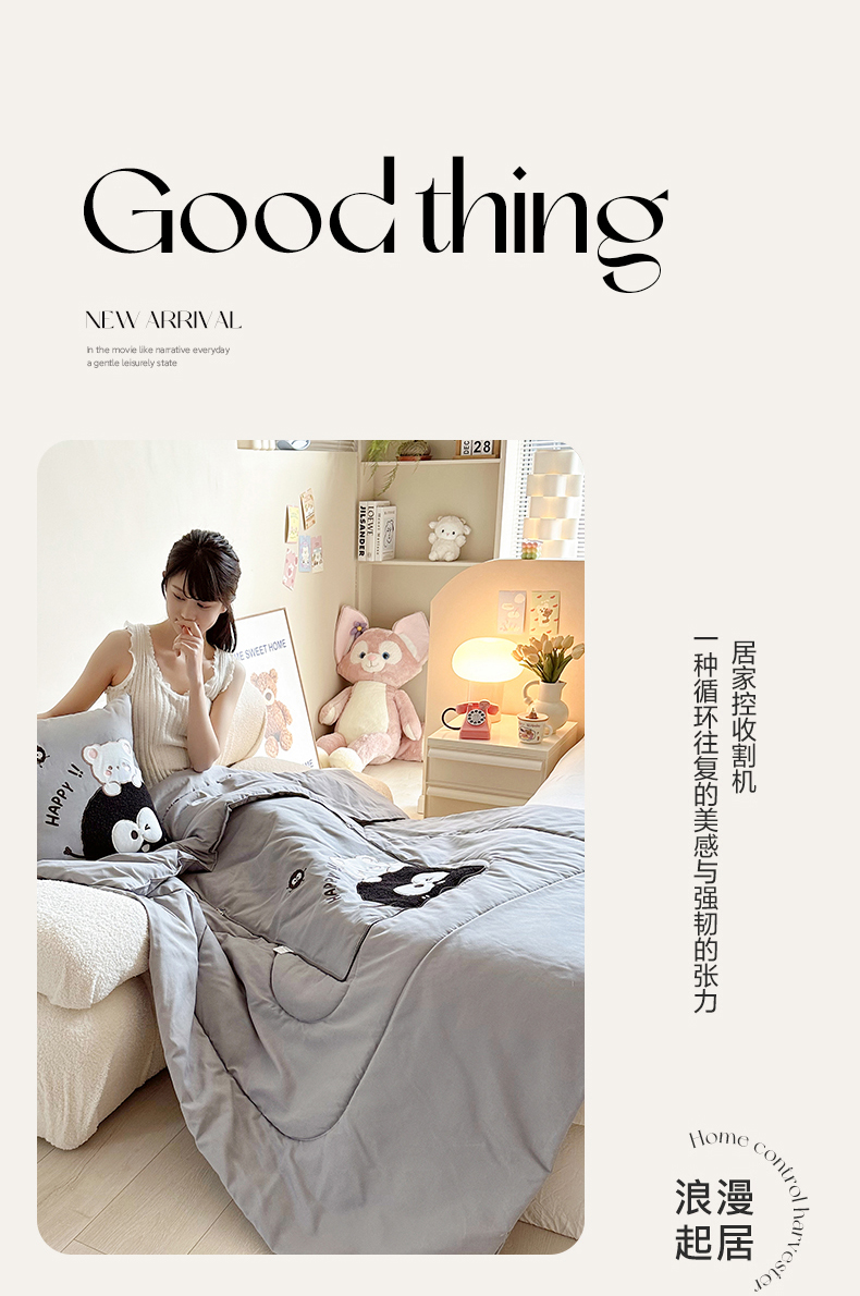 铭宣家居 2024新款贴布绣+重工刺绣多功能抱枕被系列 可爱煤球 可爱煤球-灰色