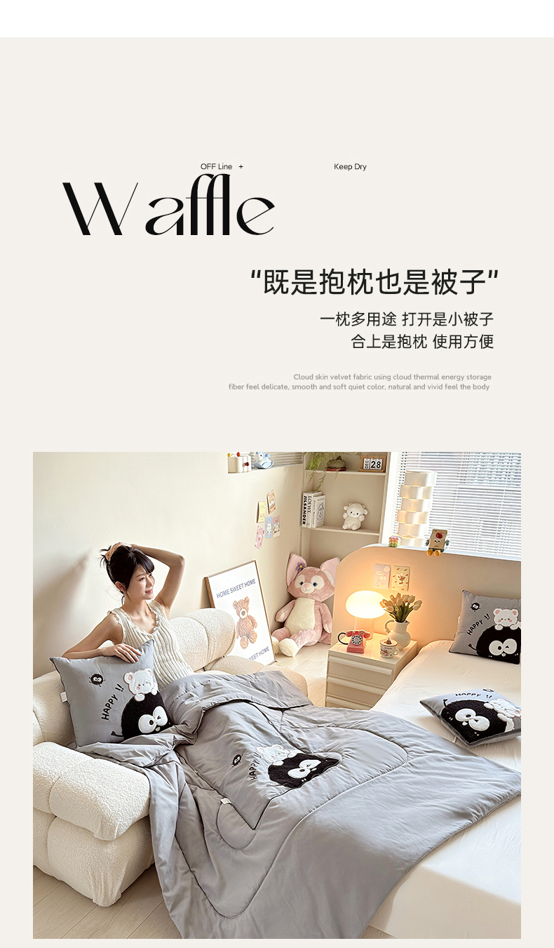 铭宣家居 2025新增花型 亲肤柔软棉被抱枕被-字母小狗,字母小狗