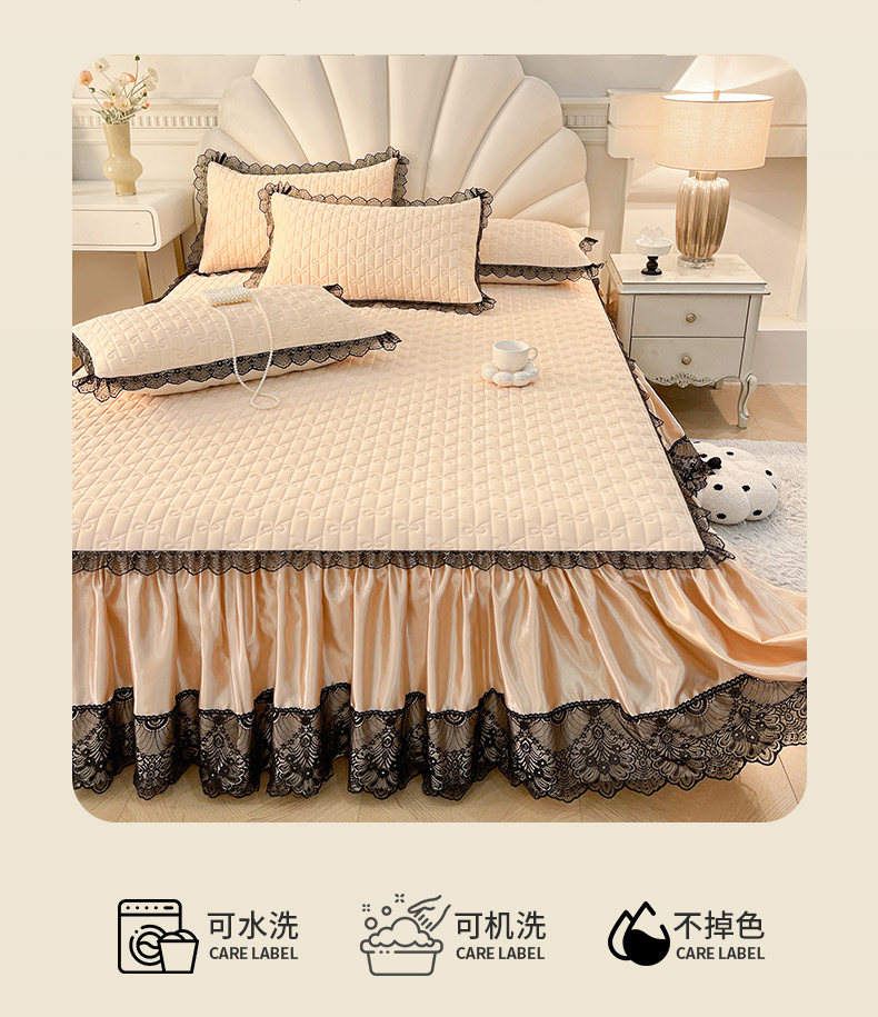 商品名称:恋尚 2025新款纯色床笠式床裙乳胶三件套-香奈【控价155起】 香奈儿 香槟