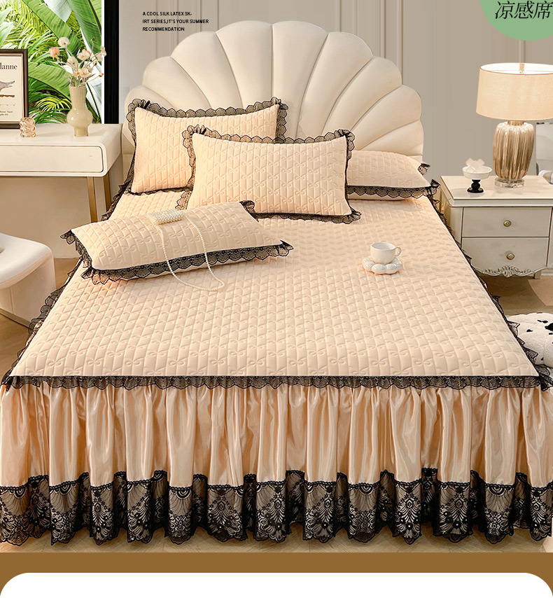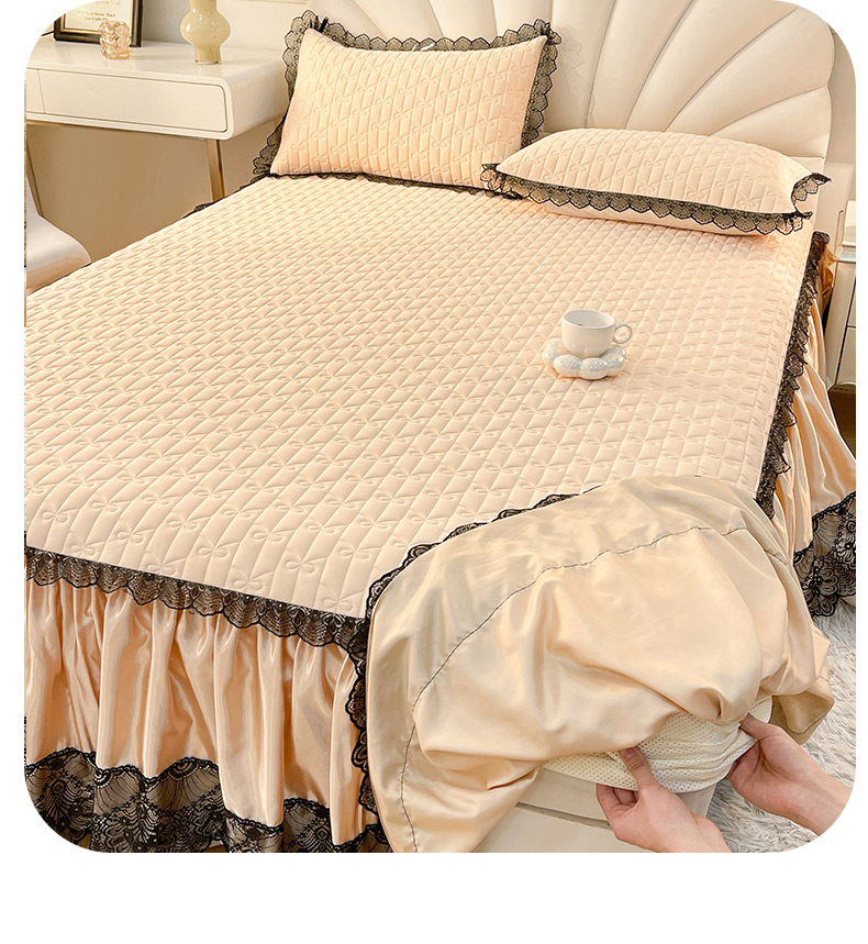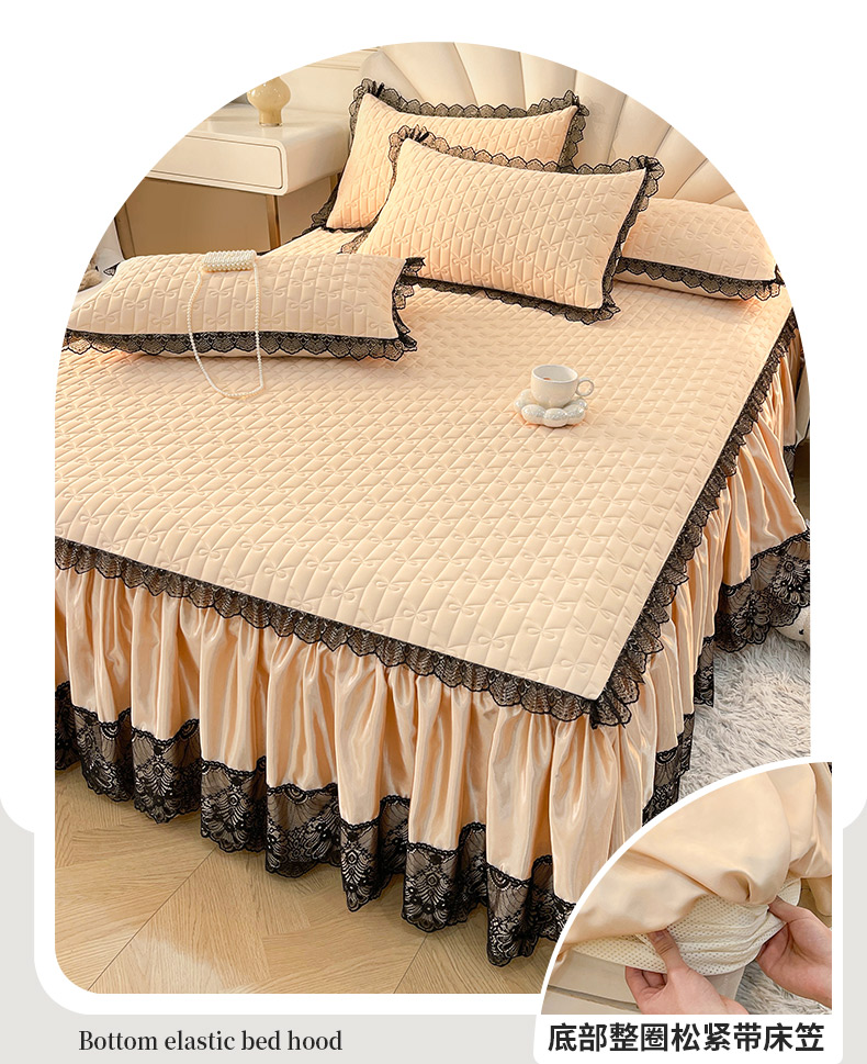 恋尚 2025新款纯色床笠式床裙乳胶三件套-香奈【控价155起】 香奈儿 香槟