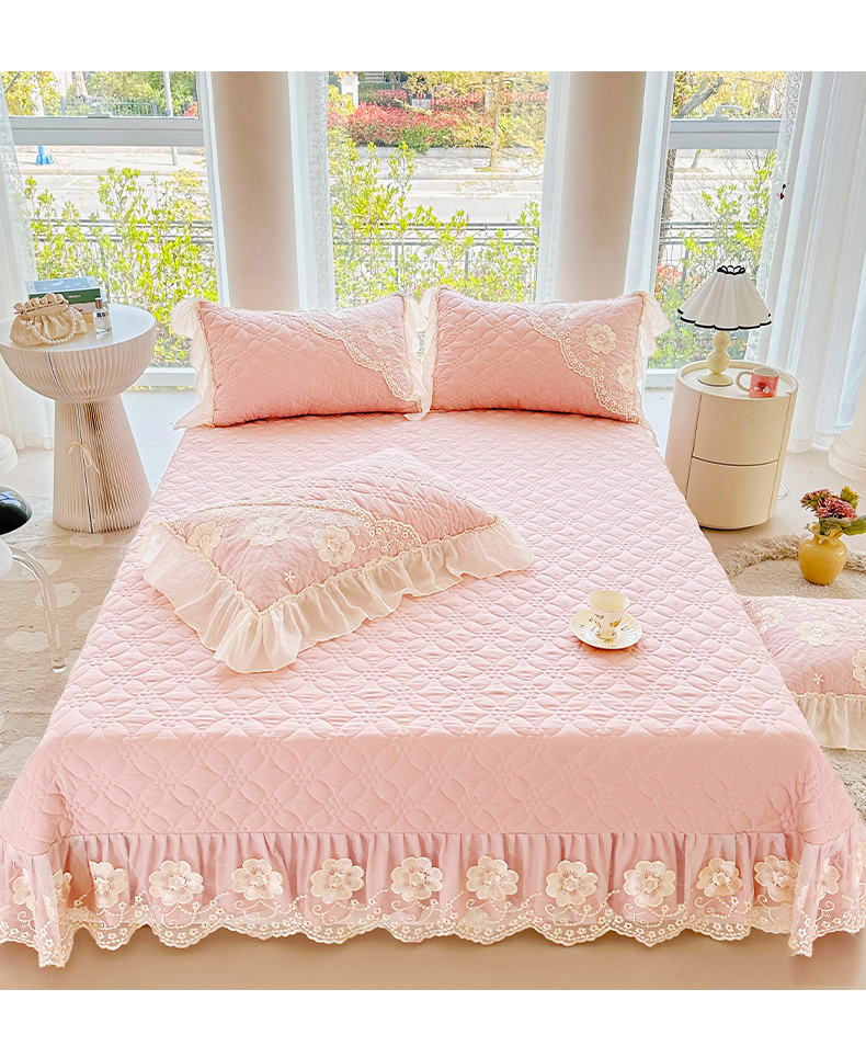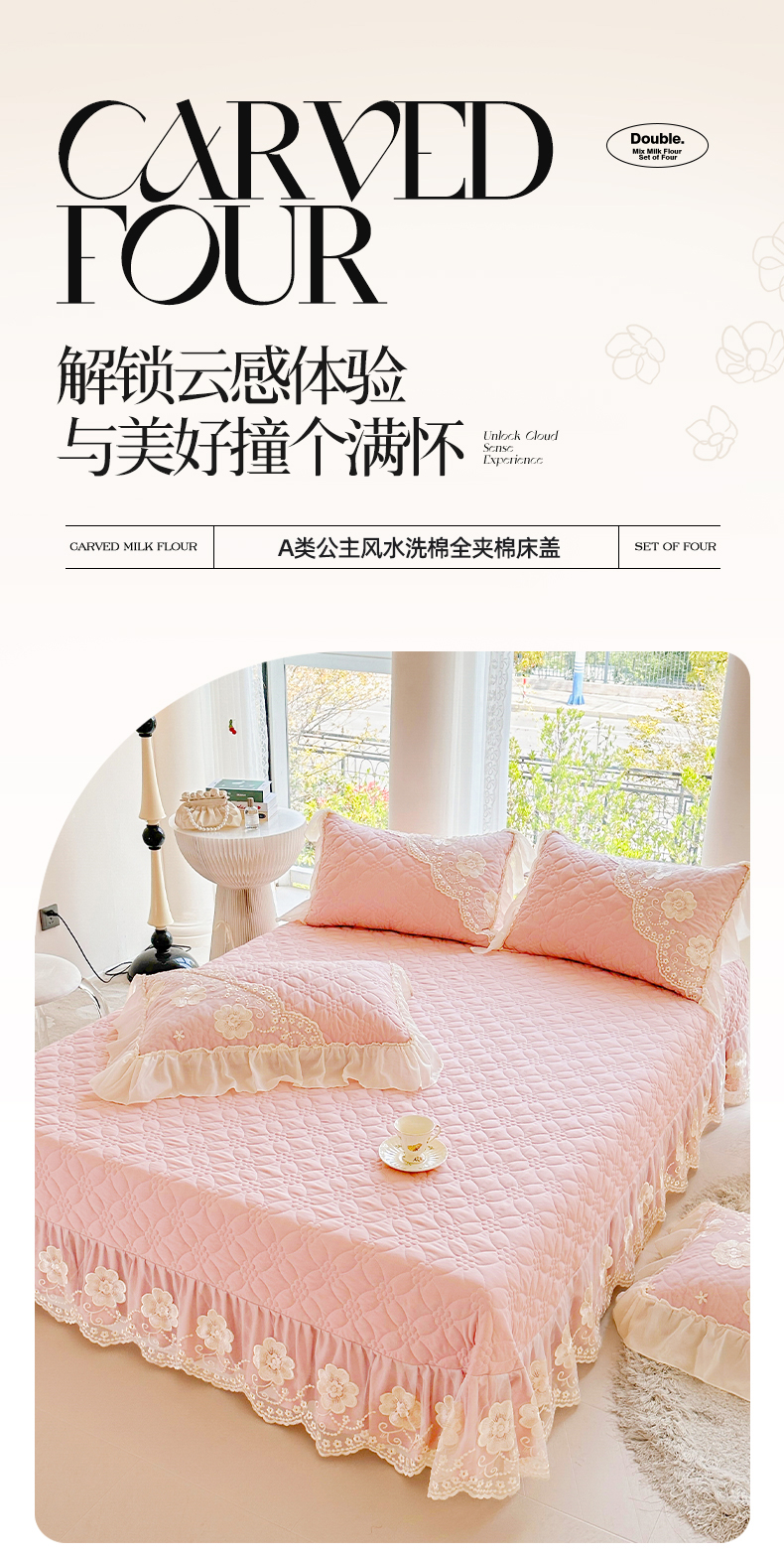 罗艺轩 2024新款公主风水洗棉全夹棉床盖款三件套-盛宴 盛宴-少女粉