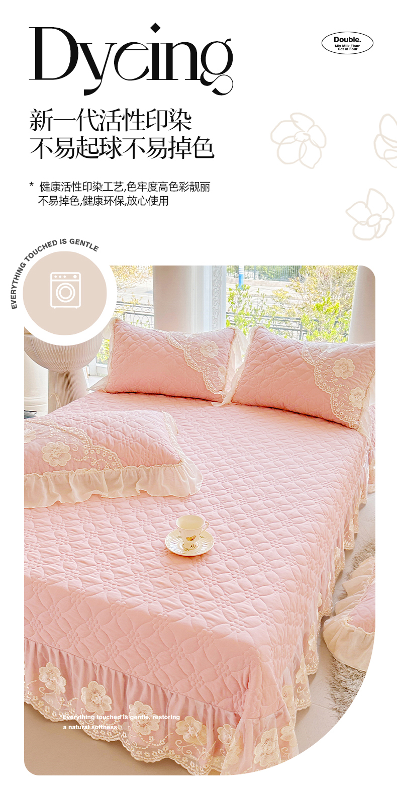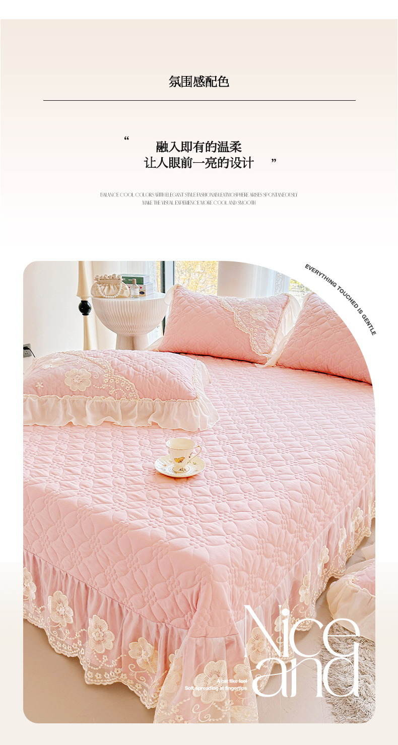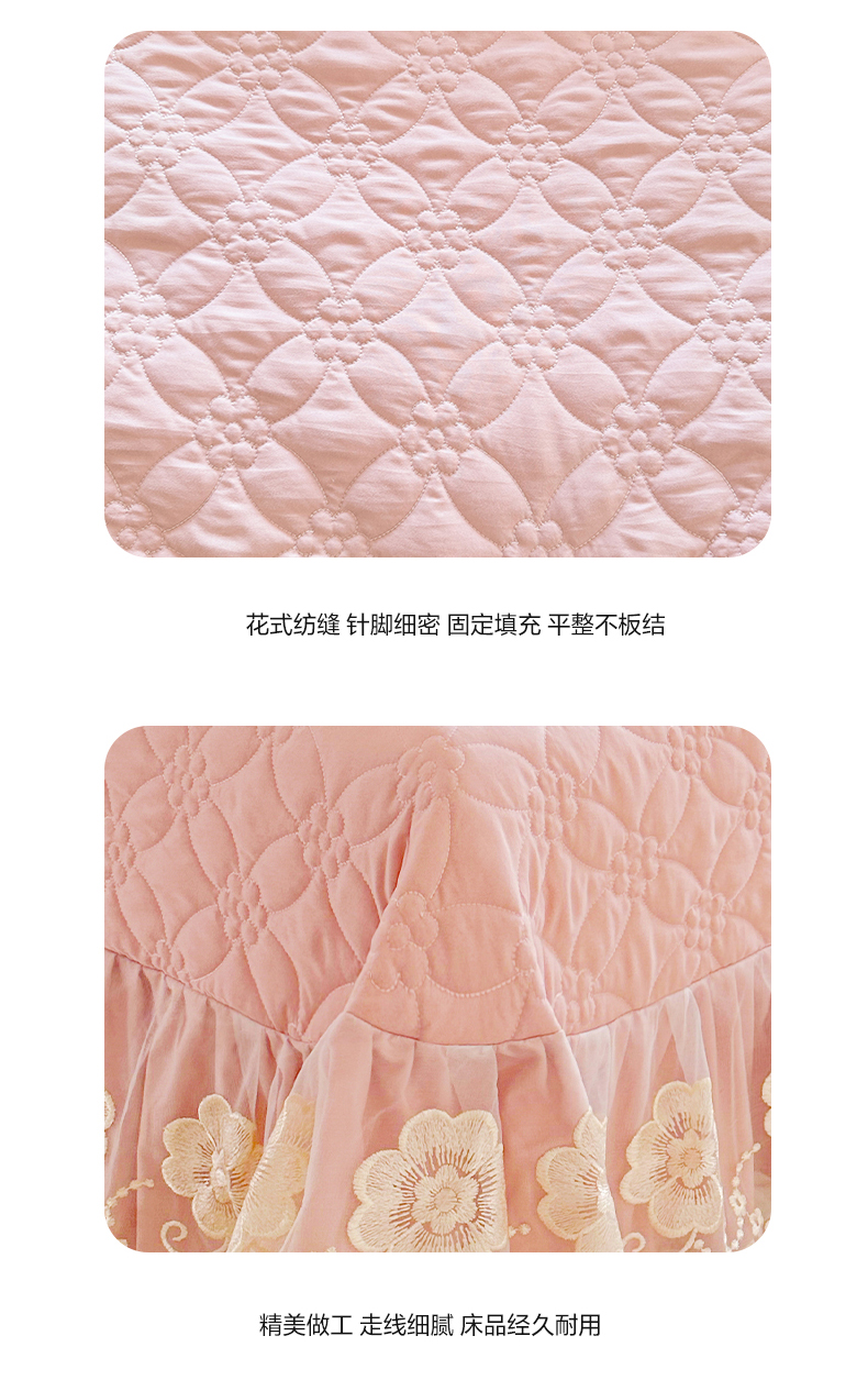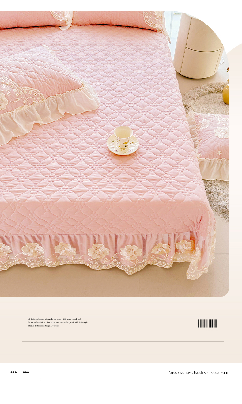 • 91家纺网 家纺一手货源 找家纺 罗艺轩 2024新款公主风水洗棉全夹棉床盖款三件套-盛宴 盛宴-少女粉
