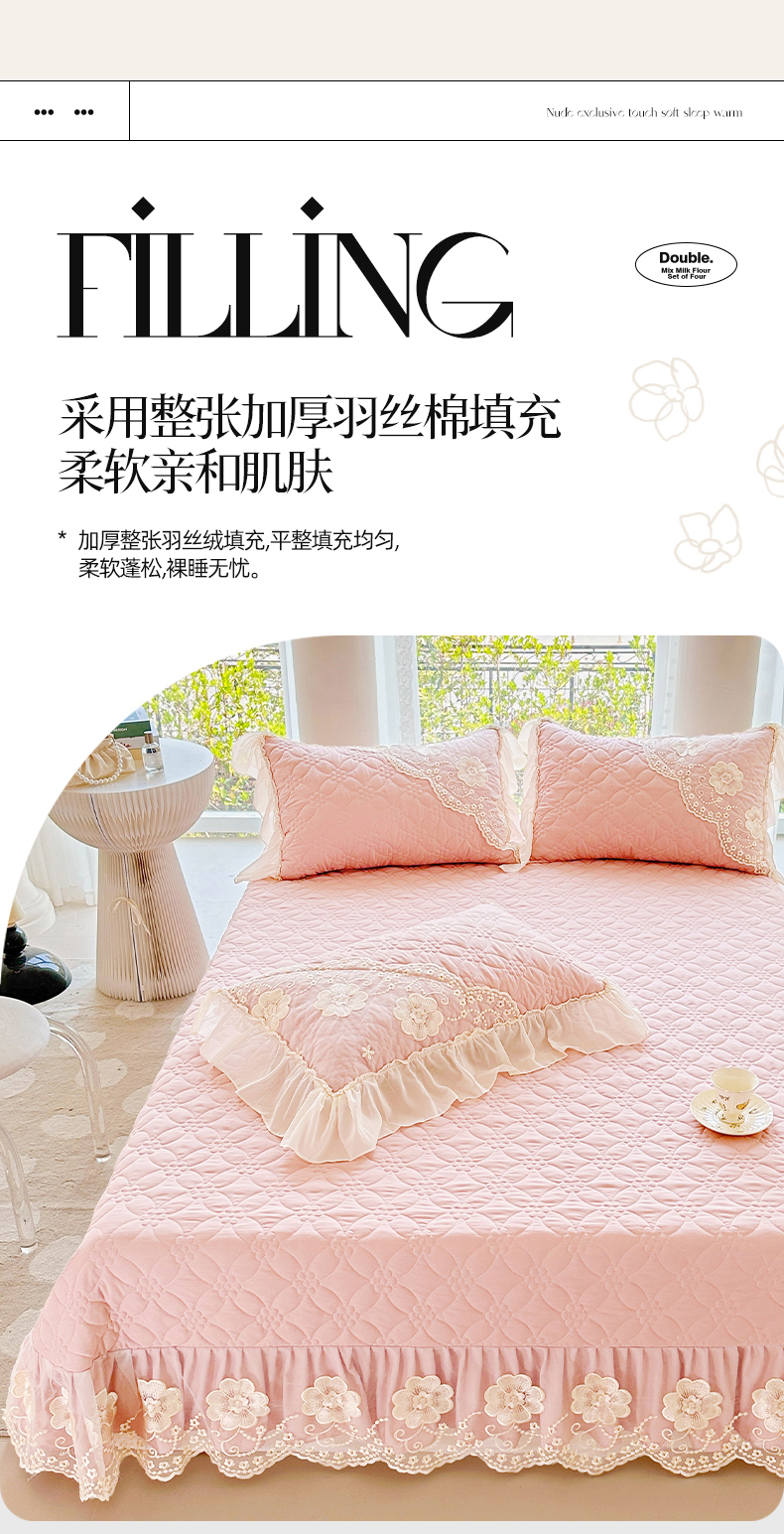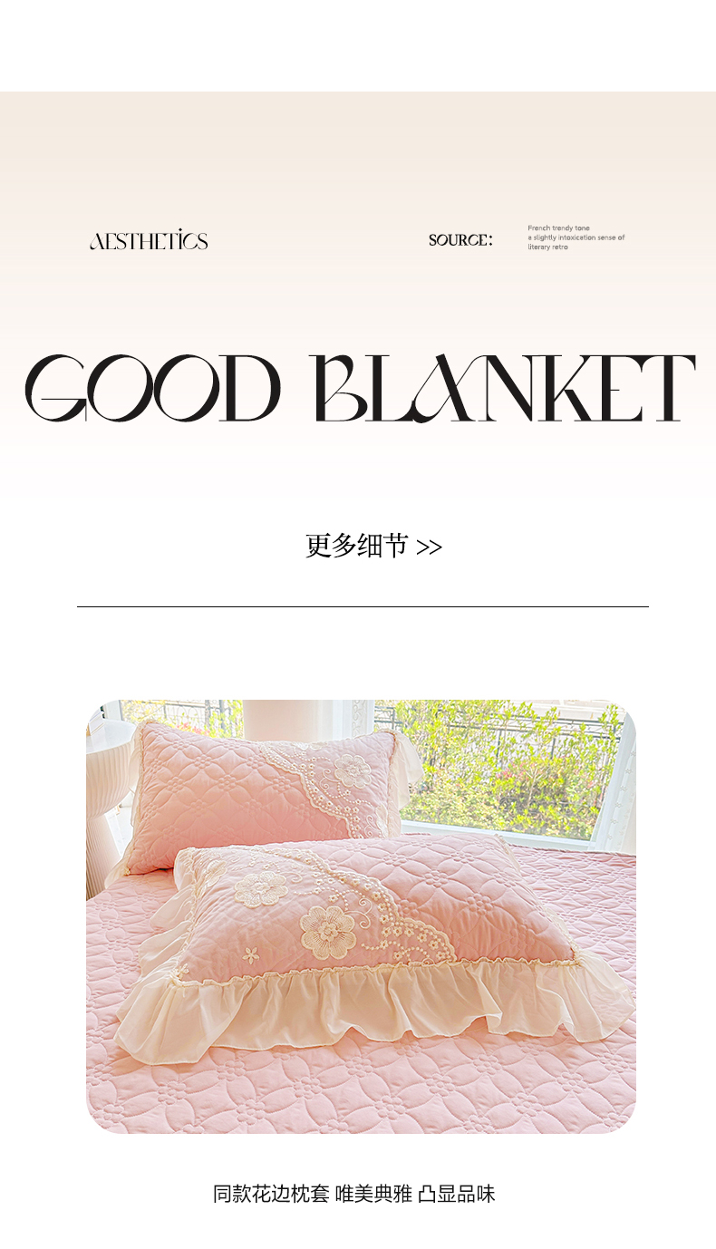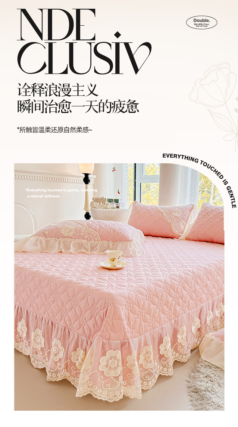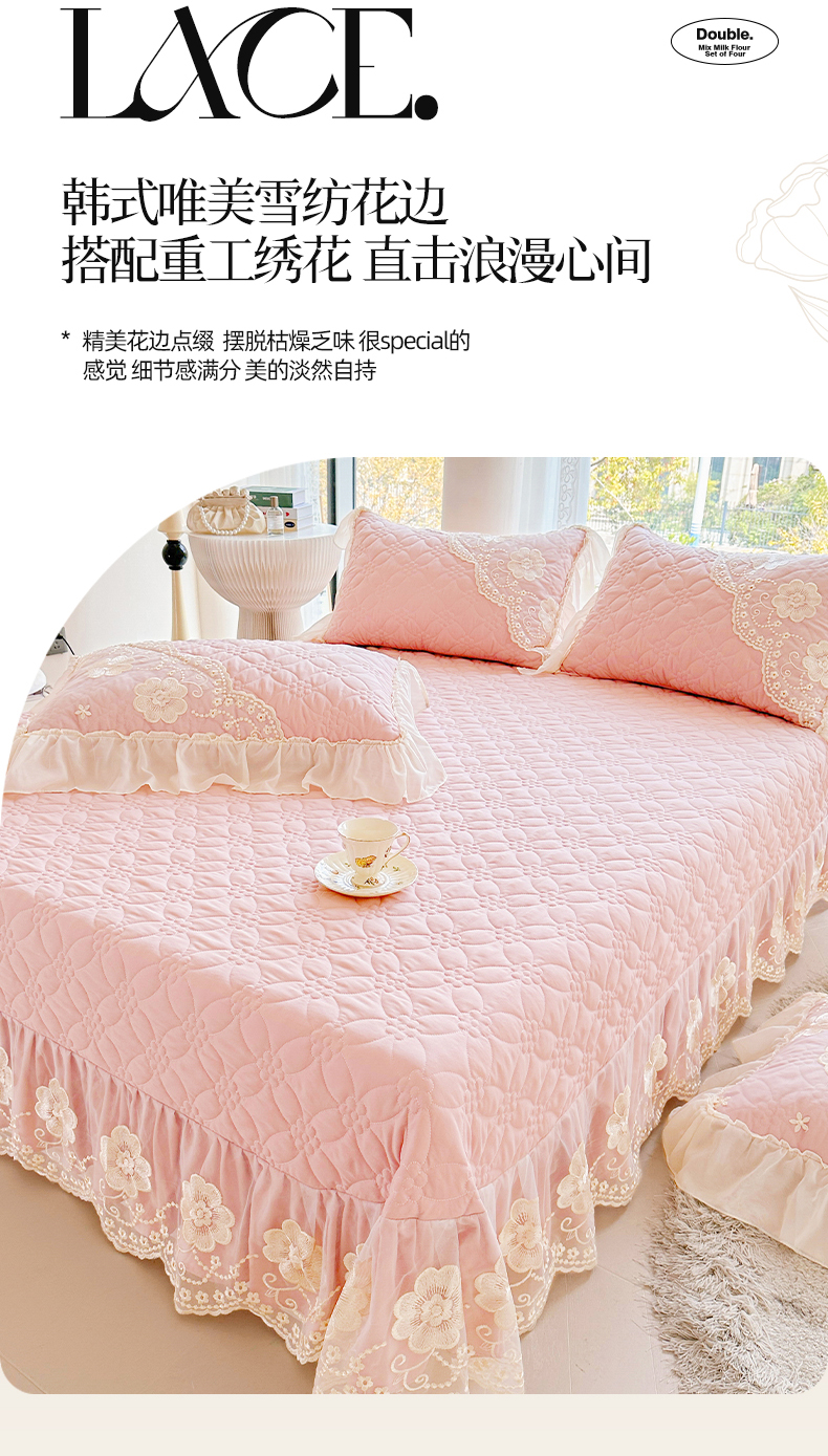 • 91家纺网 家纺一手货源 找家纺 罗艺轩 2024新款公主风水洗棉全夹棉床盖款三件套-盛宴 盛宴-少女粉