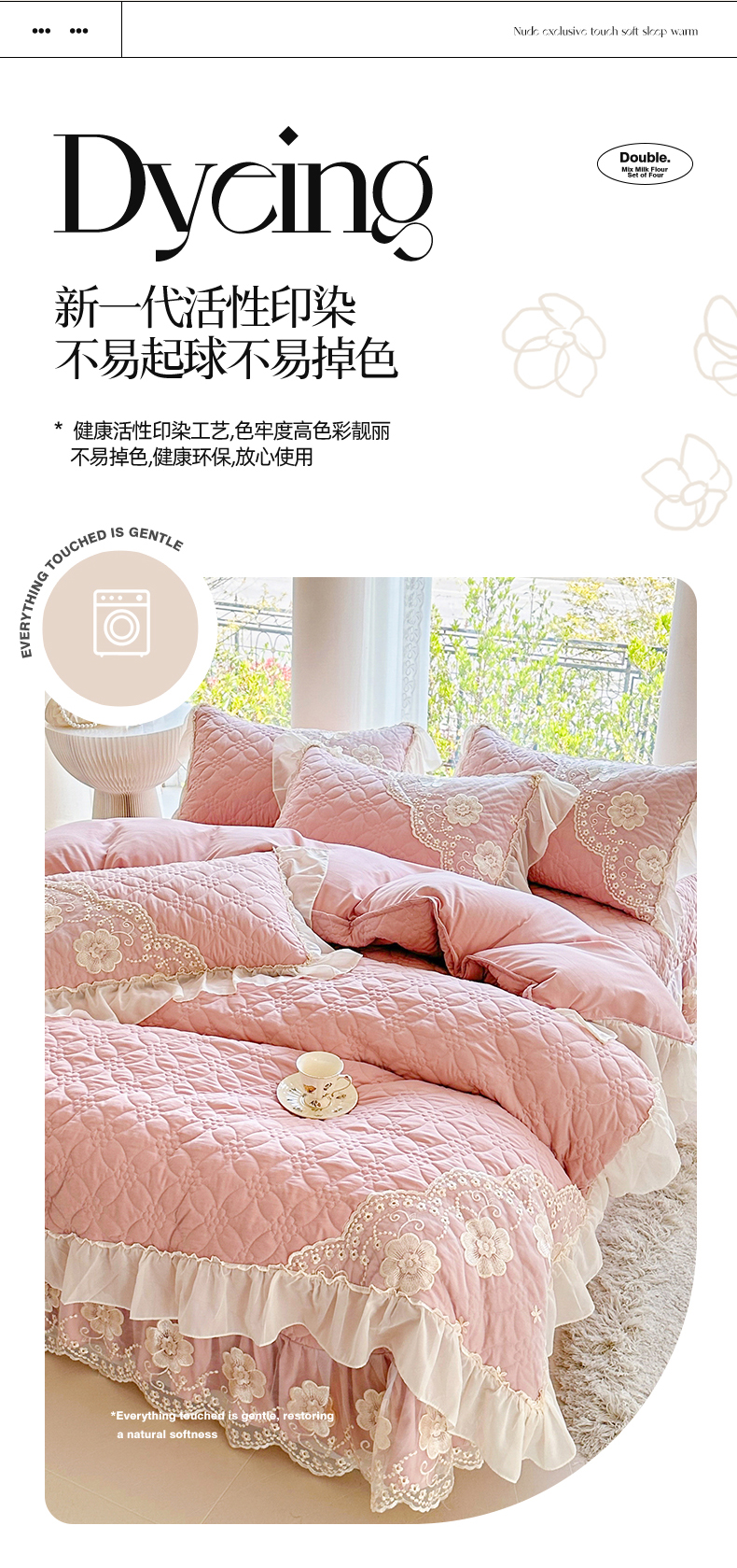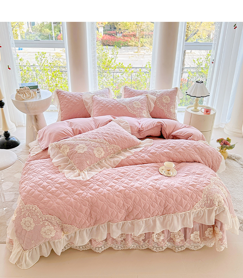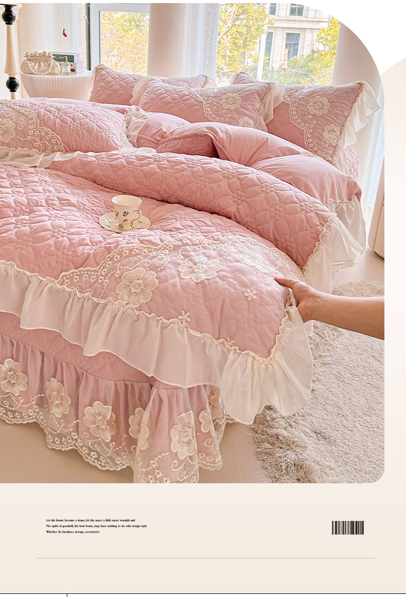 商品名称:罗艺轩 2024新款公主风水洗棉全夹棉床盖款四件套-盛宴 盛宴-豆沙