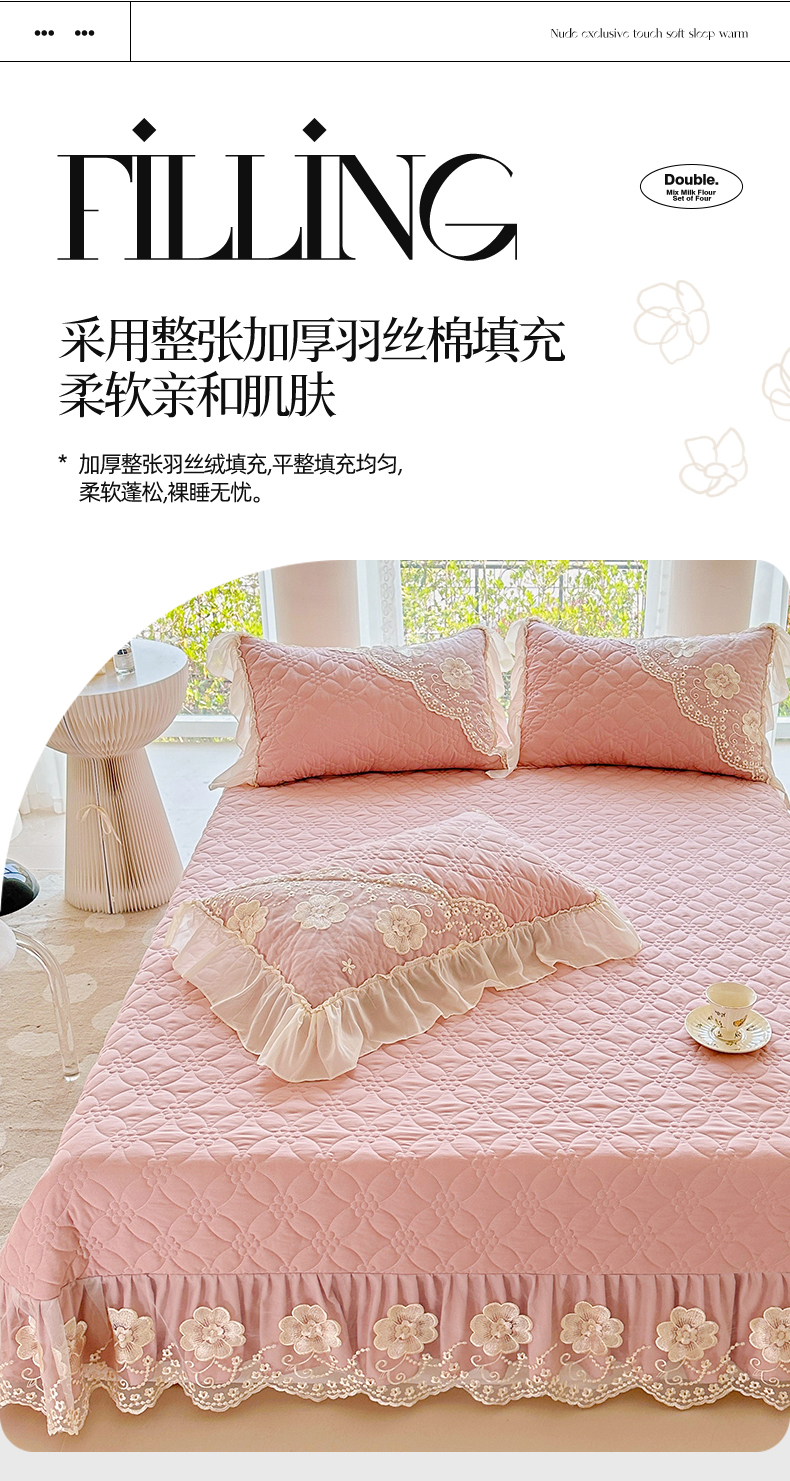 (总)罗艺轩 2025新款牛奶绒浪漫花边床裙款四件套-暖洋洋(报活动和优惠券后控价99起/控价107起),暖洋洋-白,暖洋洋-豆沙,暖洋洋-灰,暖洋洋-酒红,暖洋洋-绿,暖洋洋-奶咖