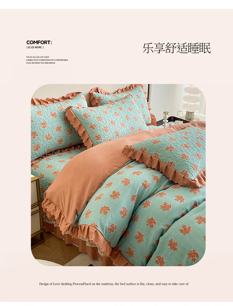 艺慕家纺 2025新款水洗棉麻双层纱床盖四件套 枫叶