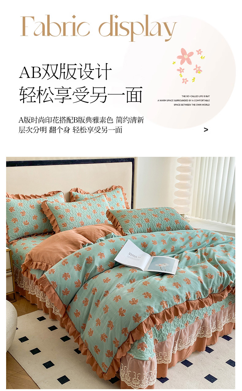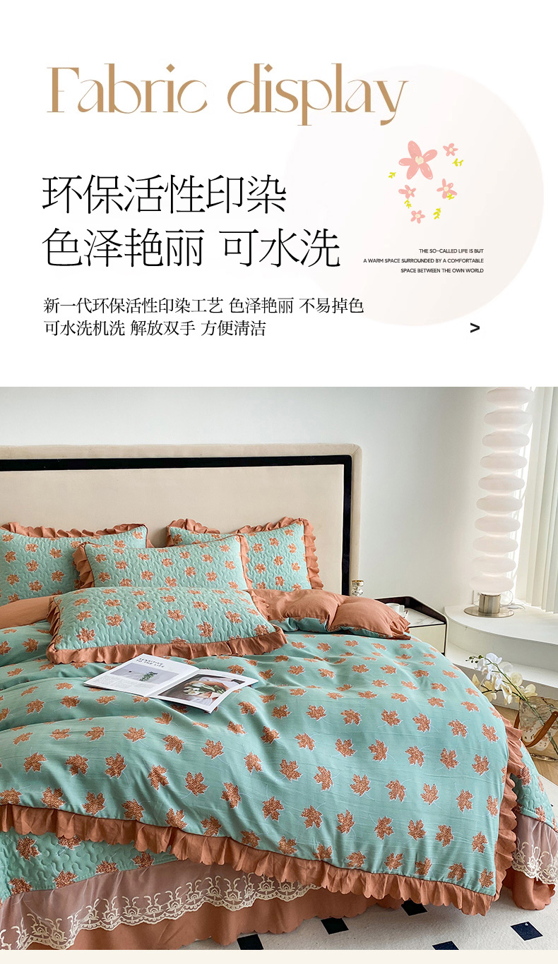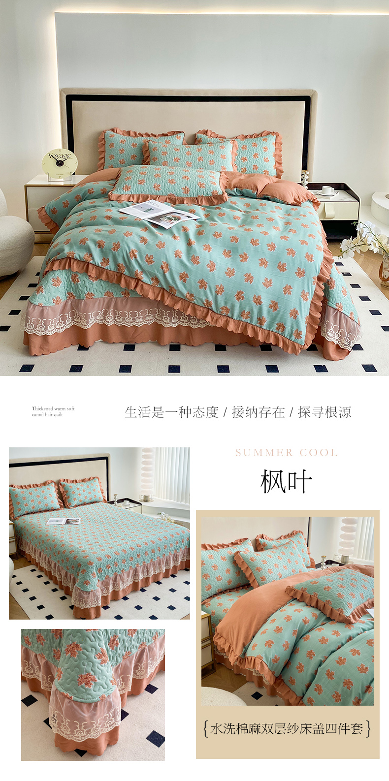 商品名称:艺慕家纺 2025新款水洗棉麻双层纱床盖四件套 枫叶
