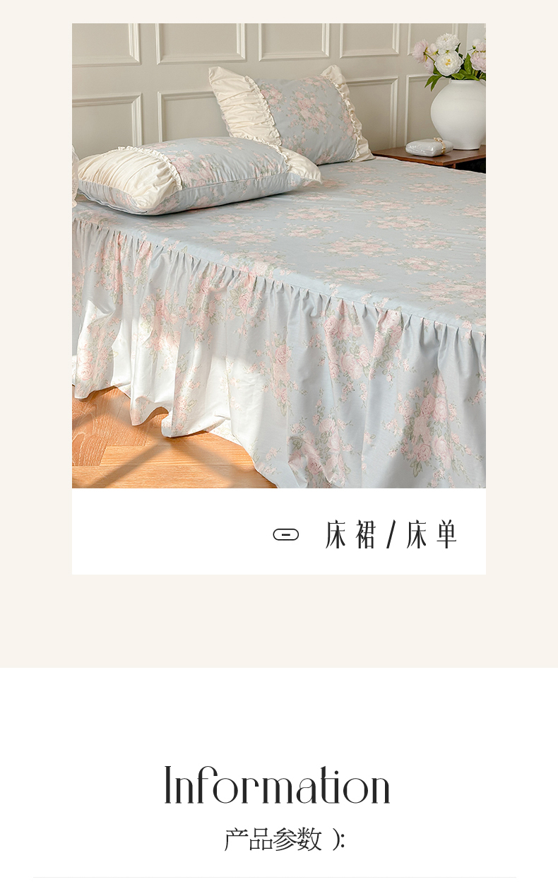 商品名称:婳庭家居 2024新款法式全棉印花四件套 花卉-浅蓝