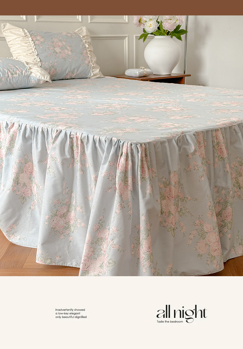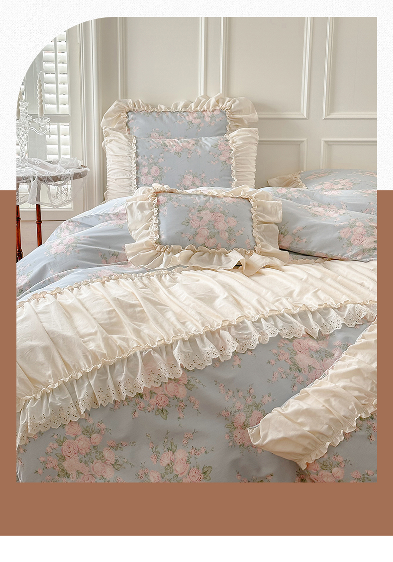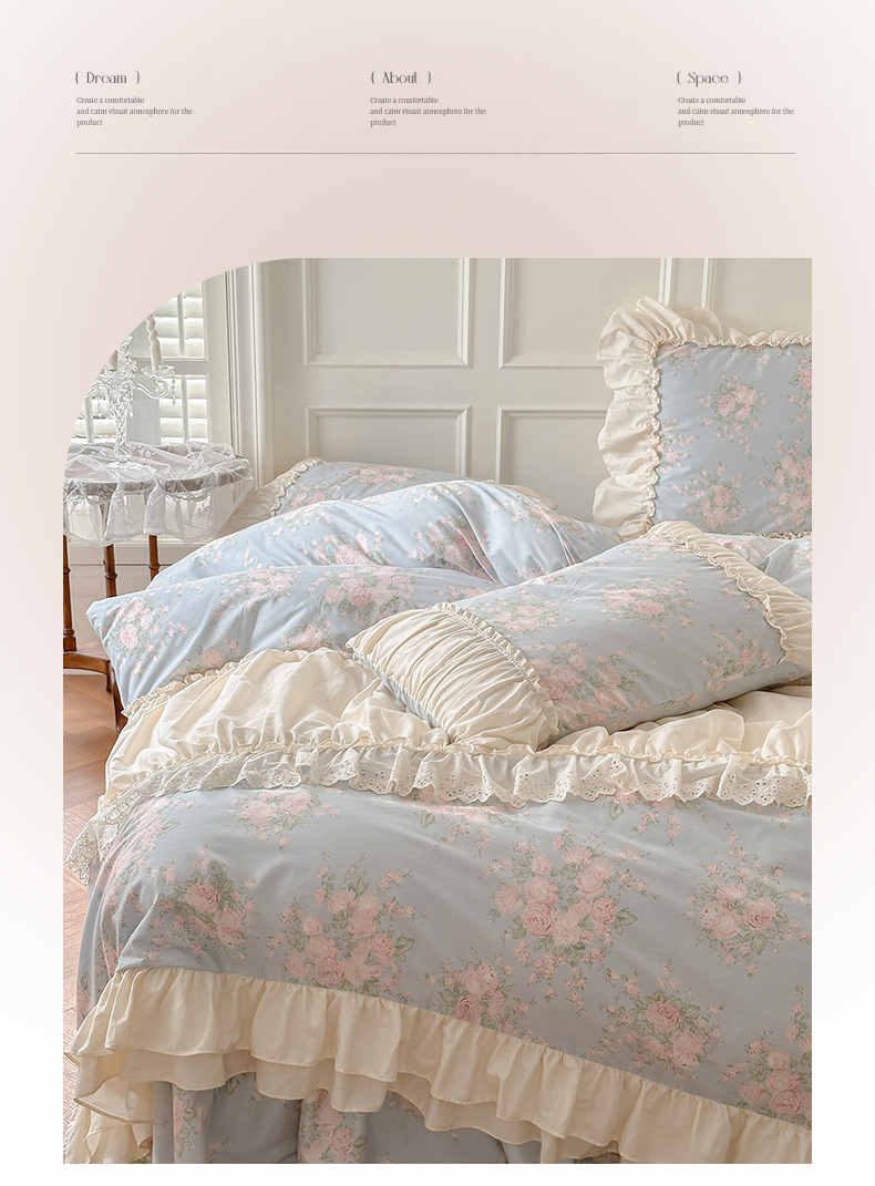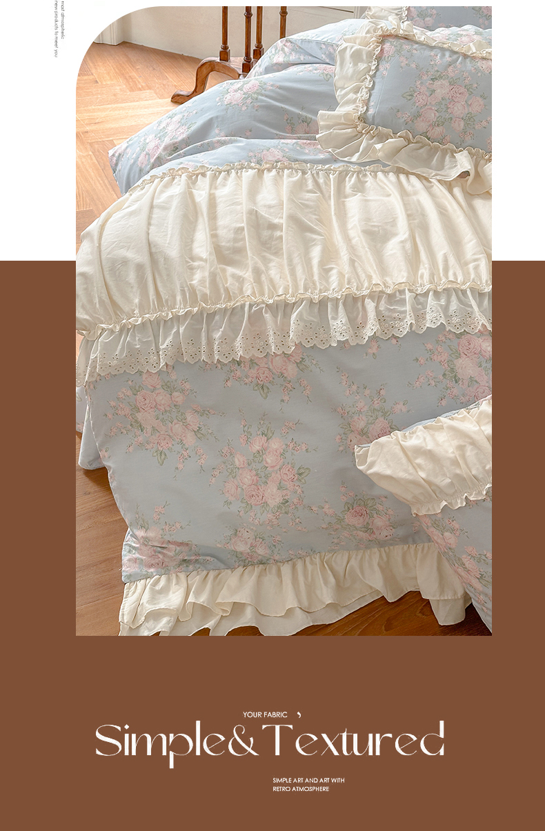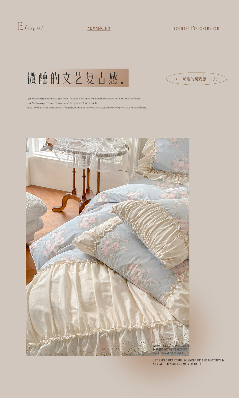 婳庭家居 2024新款法式全棉印花四件套 花卉-浅蓝