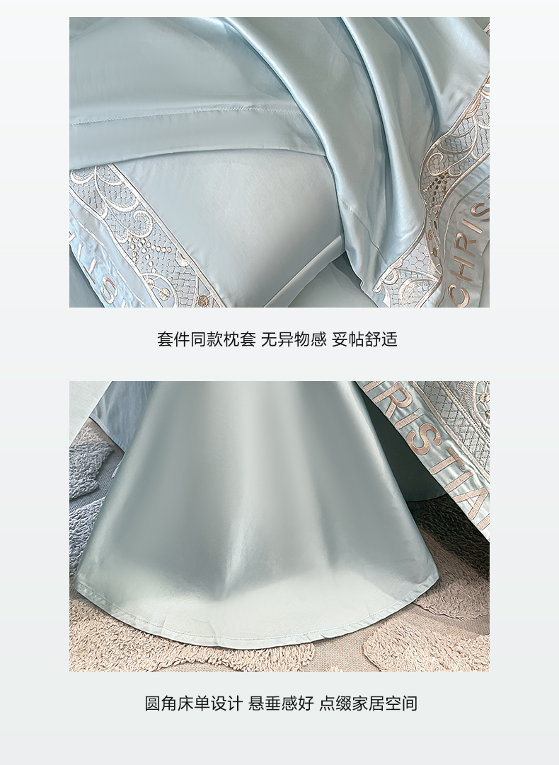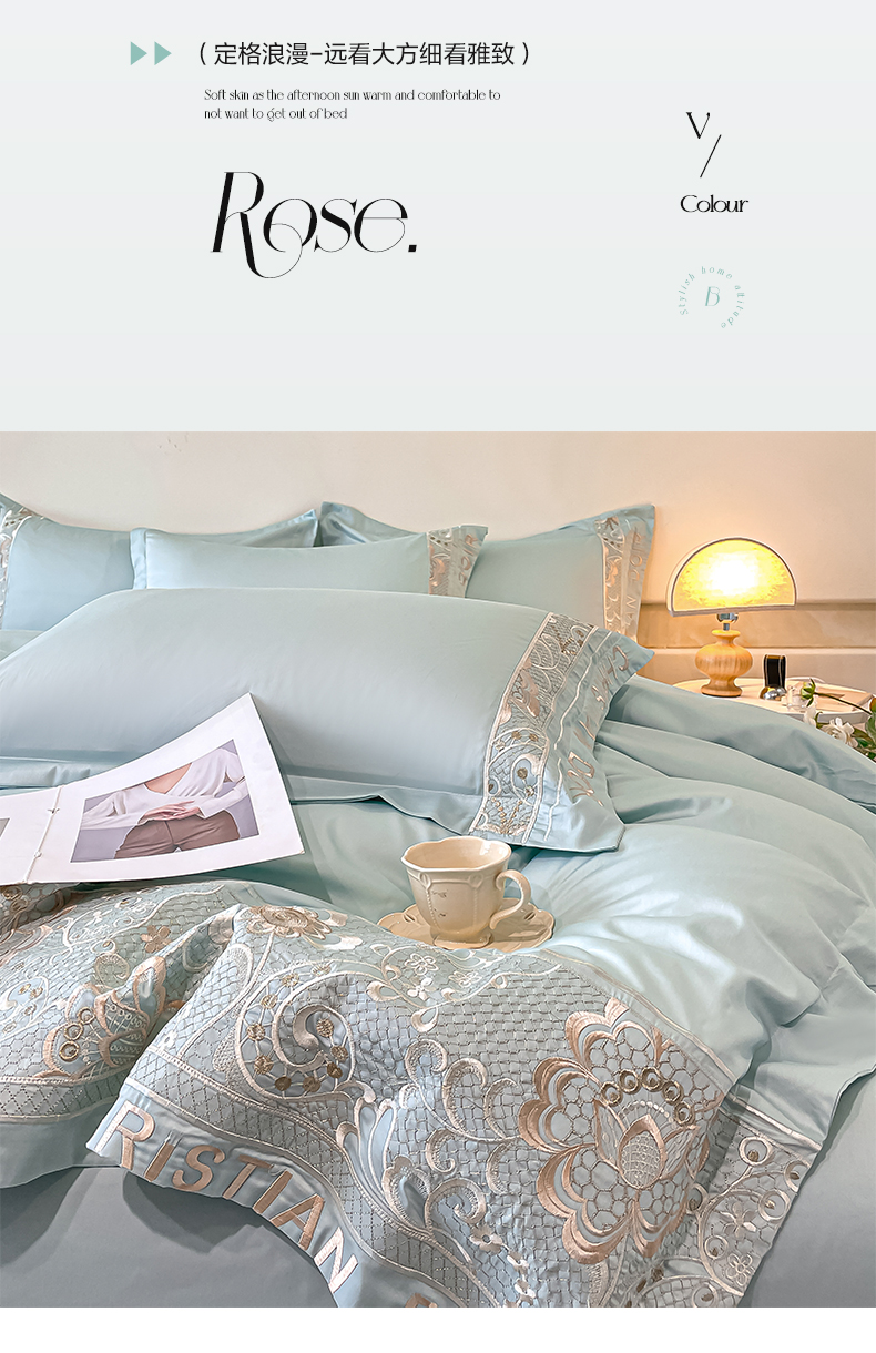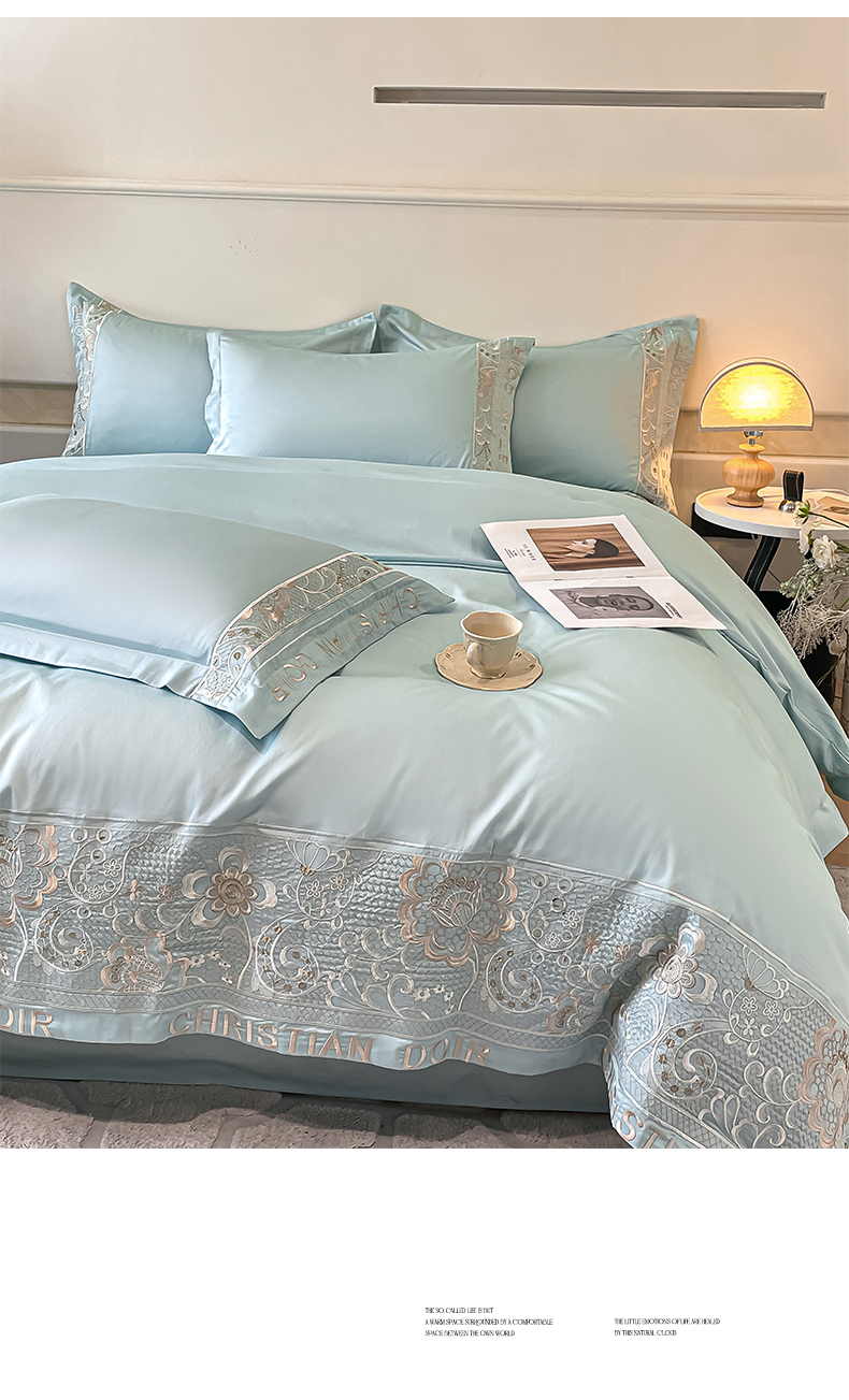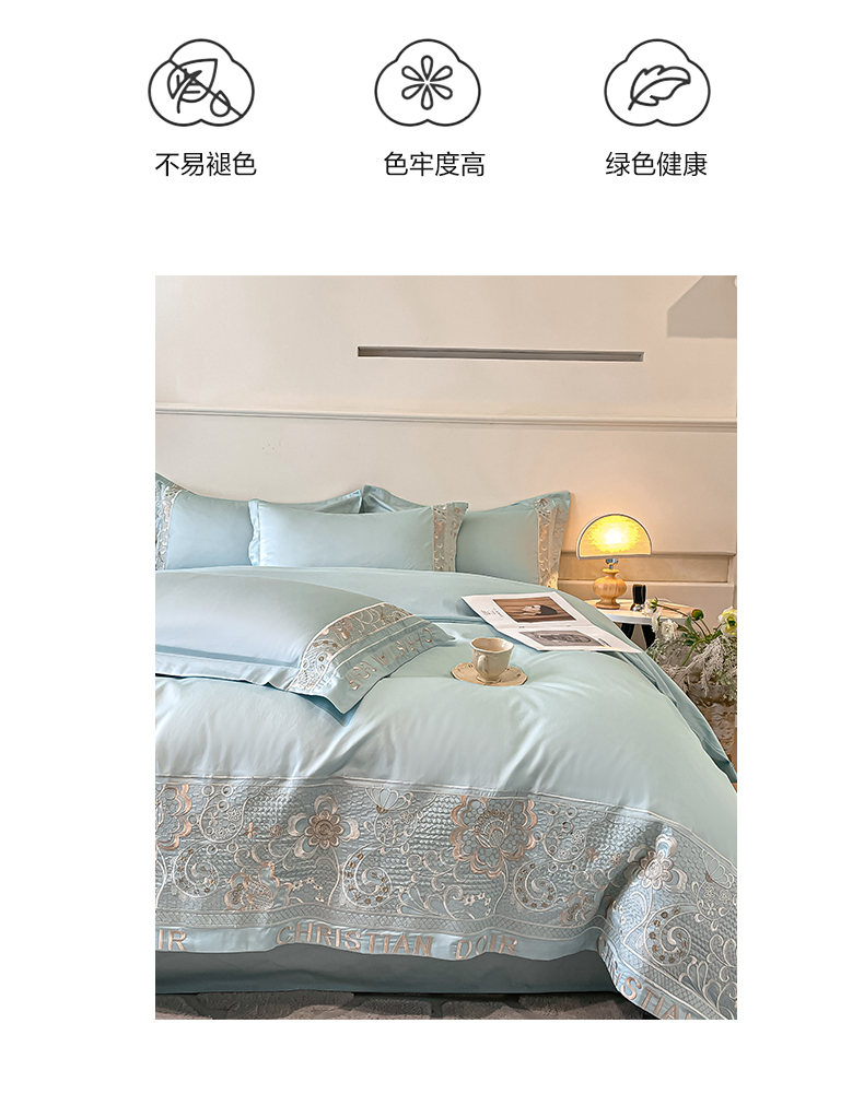 (总)欧乐蒂 2025新款欧式水洗贡缎全棉刺绣四件套-欧雅终版,宾利蓝,玉色,白色,粉色,豆沙,酒红,香槟,高级灰