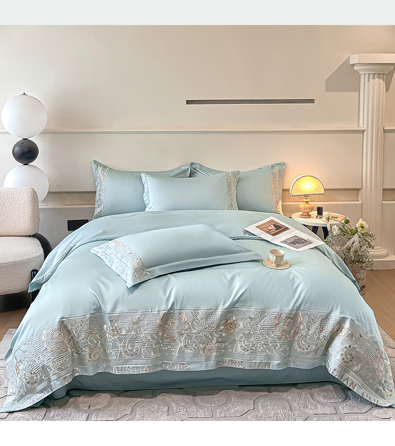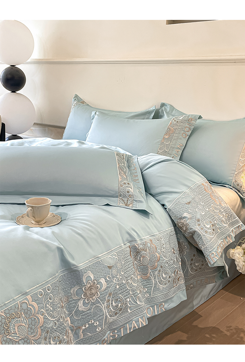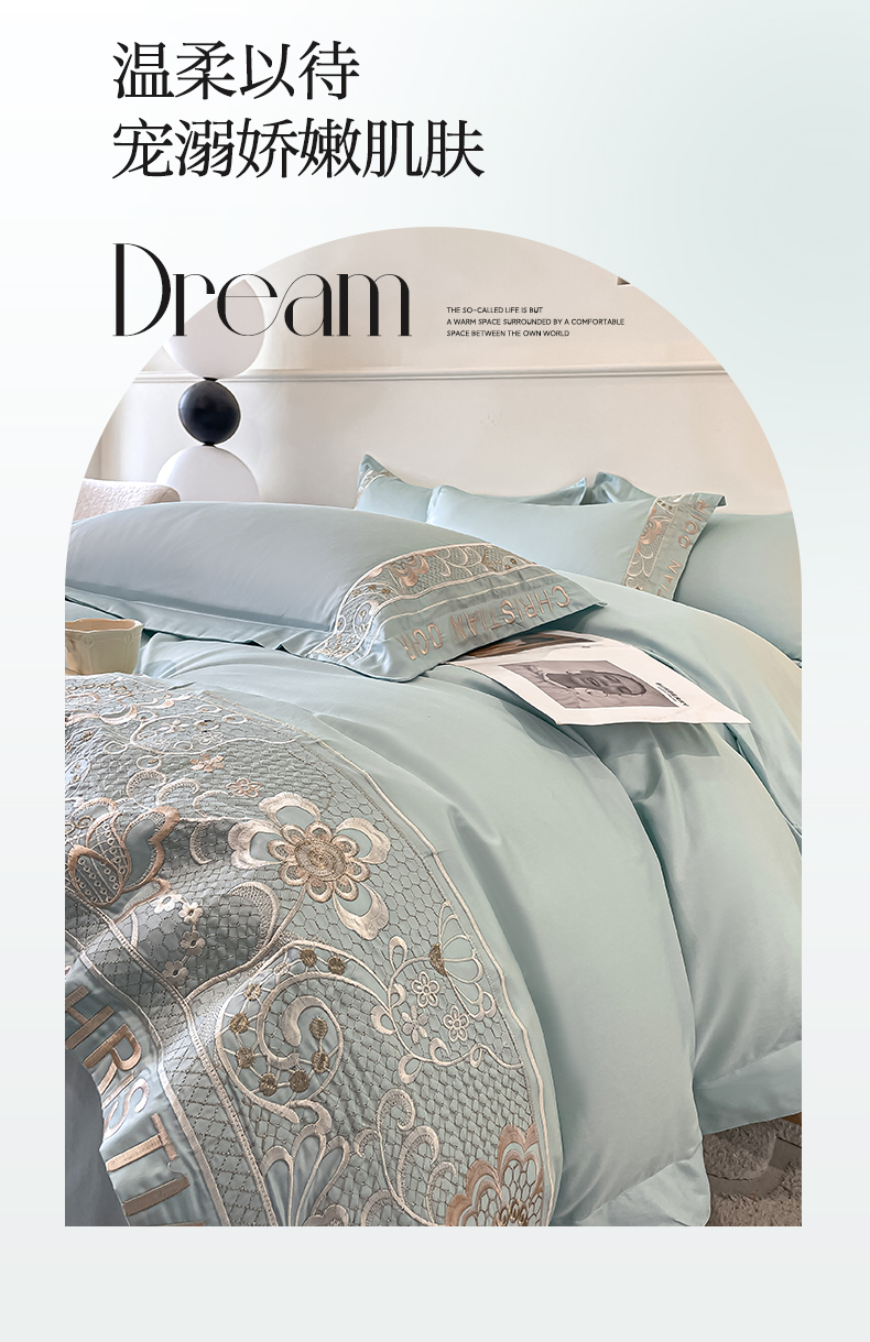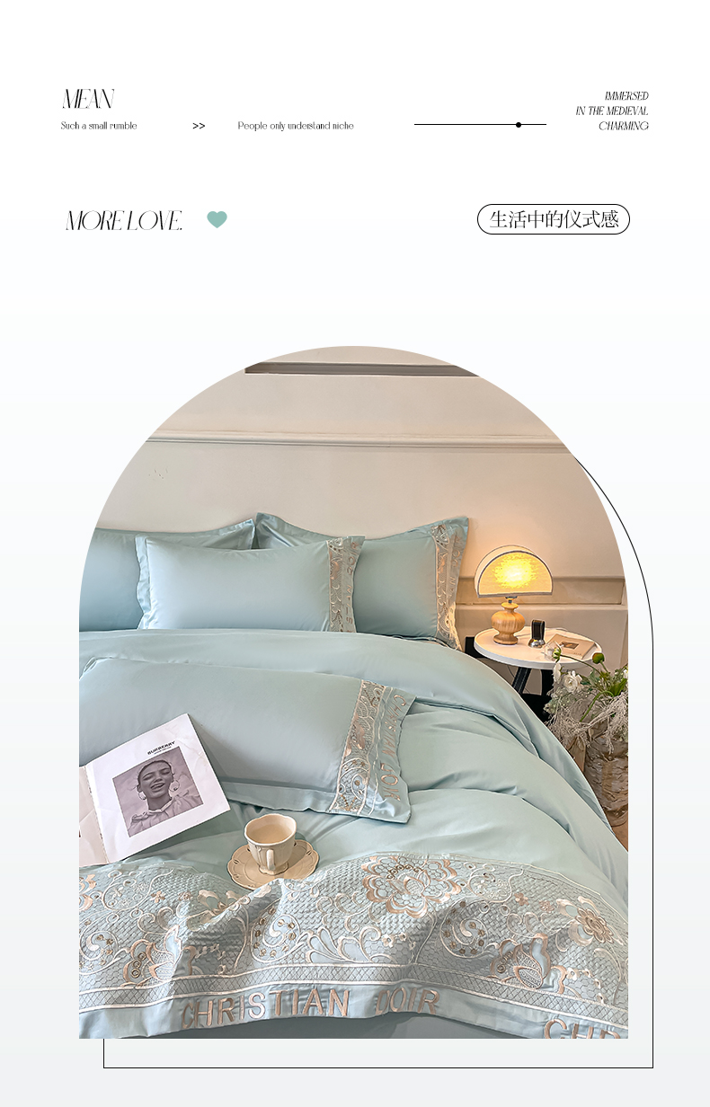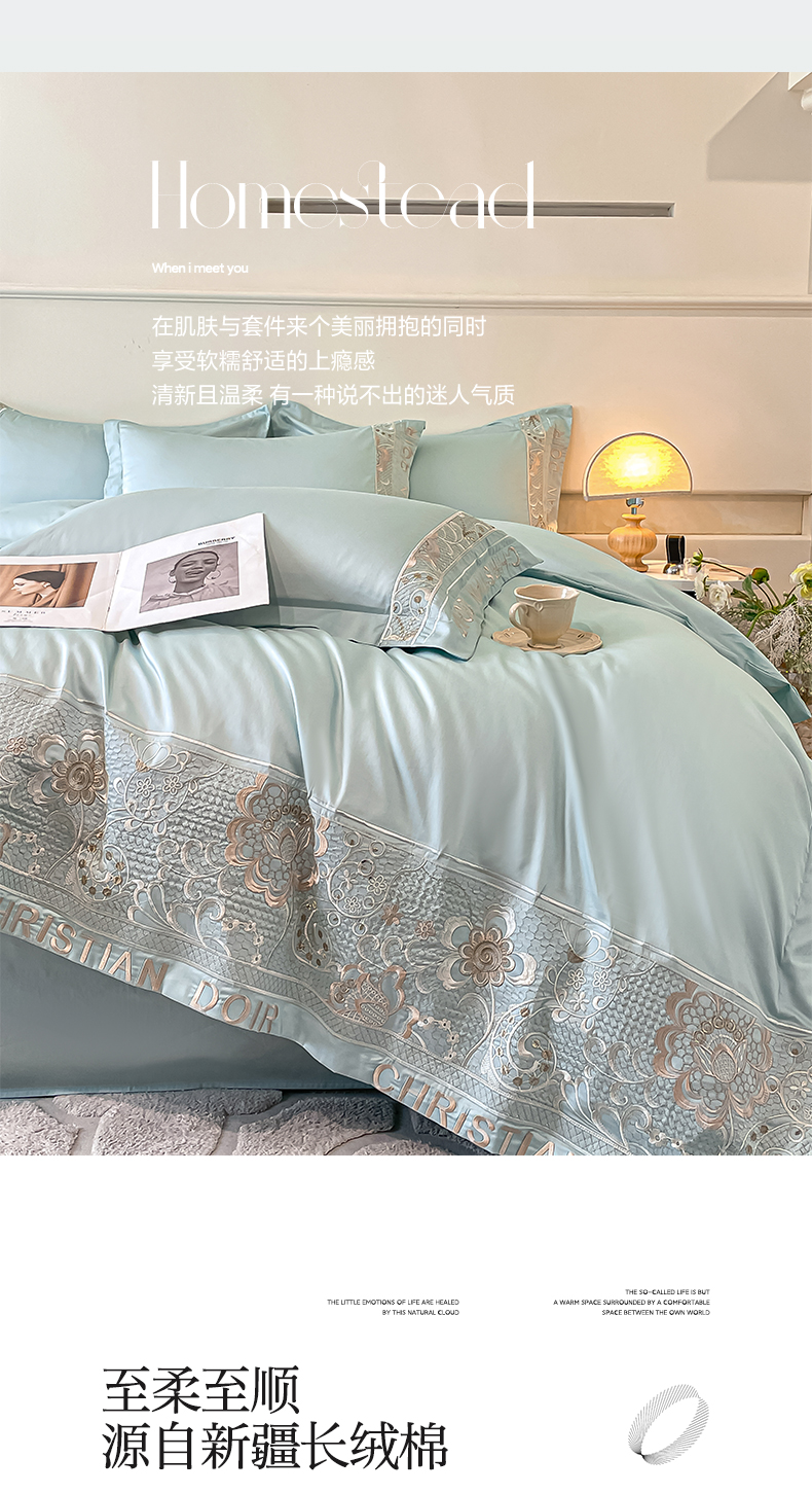 (总)欧乐蒂 2025新款欧式水洗贡缎全棉刺绣四件套-欧雅终版,宾利蓝,玉色,白色,粉色,豆沙,酒红,香槟,高级灰