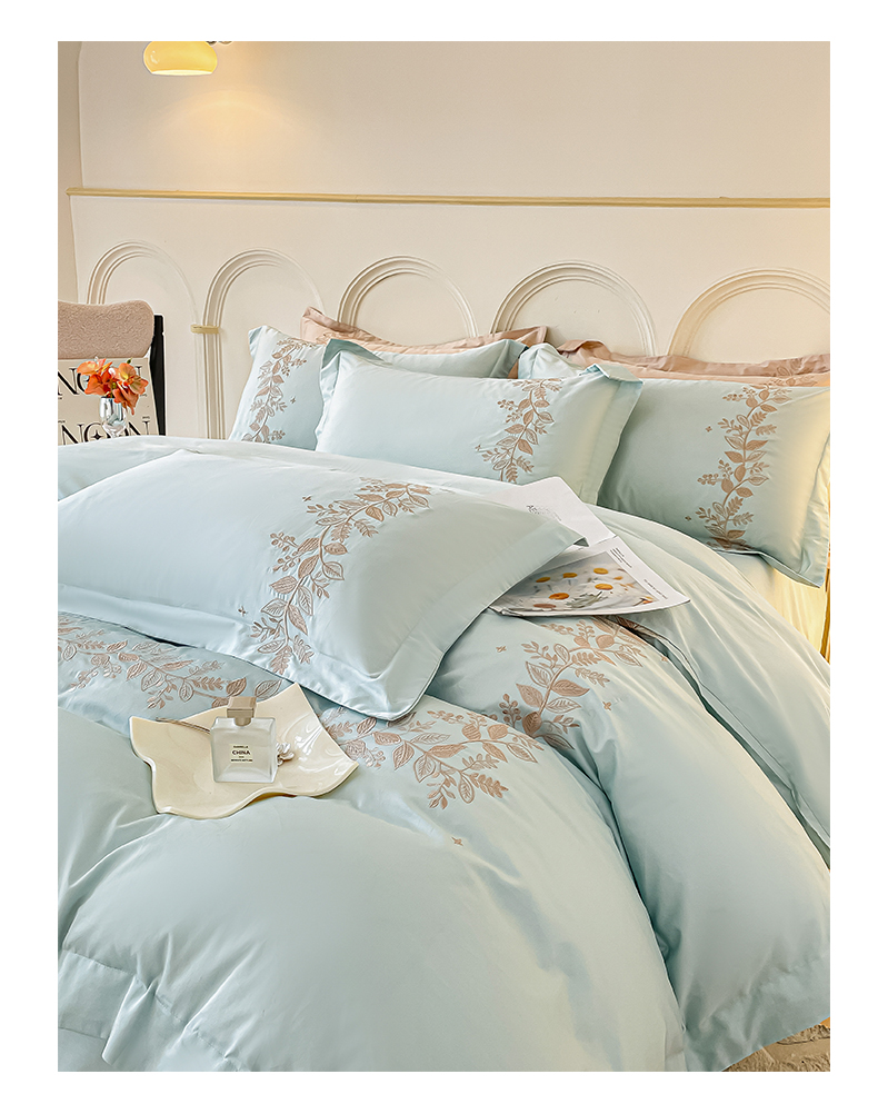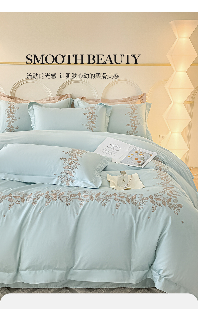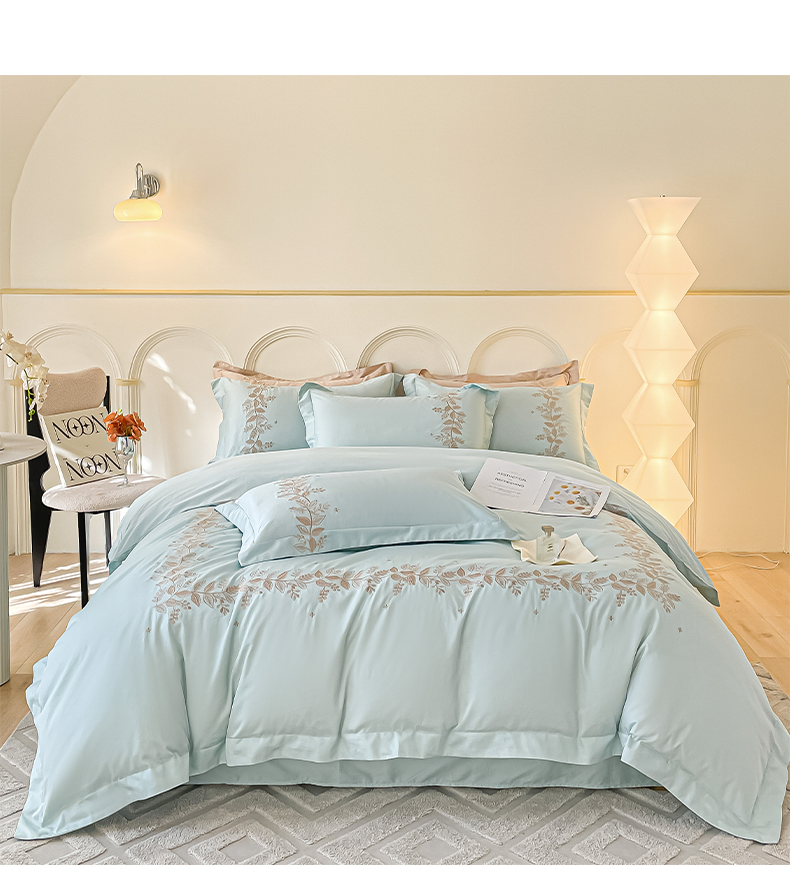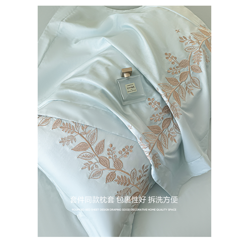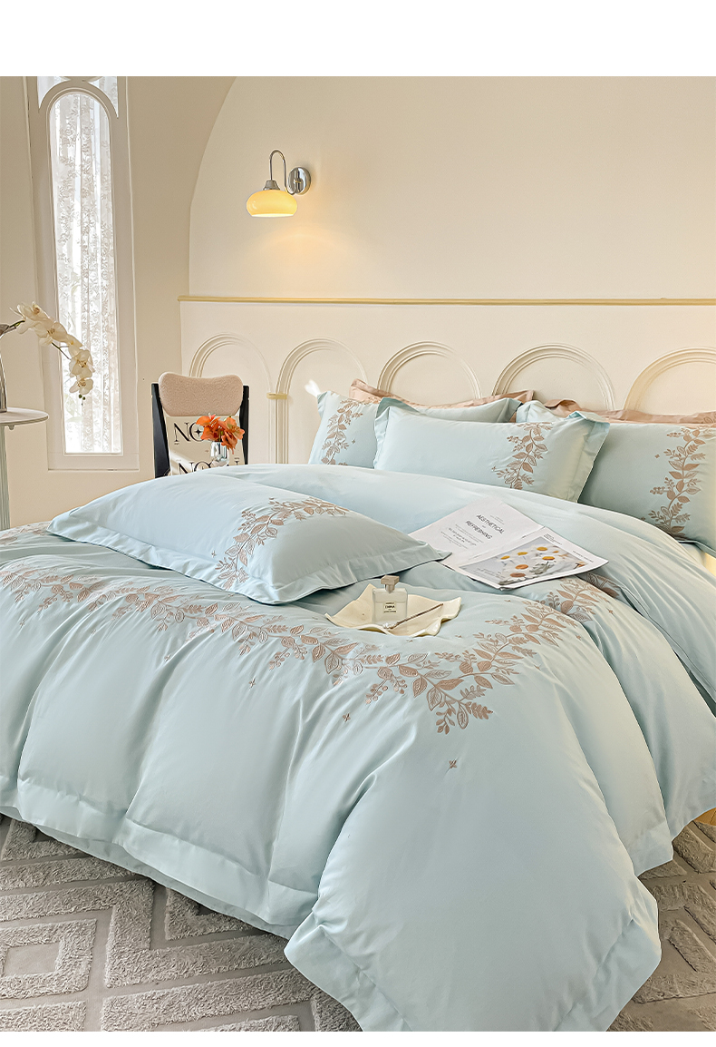 (总)欧乐蒂 2025新款欧式水洗贡缎全棉刺绣四件套-欧雅终版,宾利蓝,玉色,白色,粉色,豆沙,酒红,香槟,高级灰