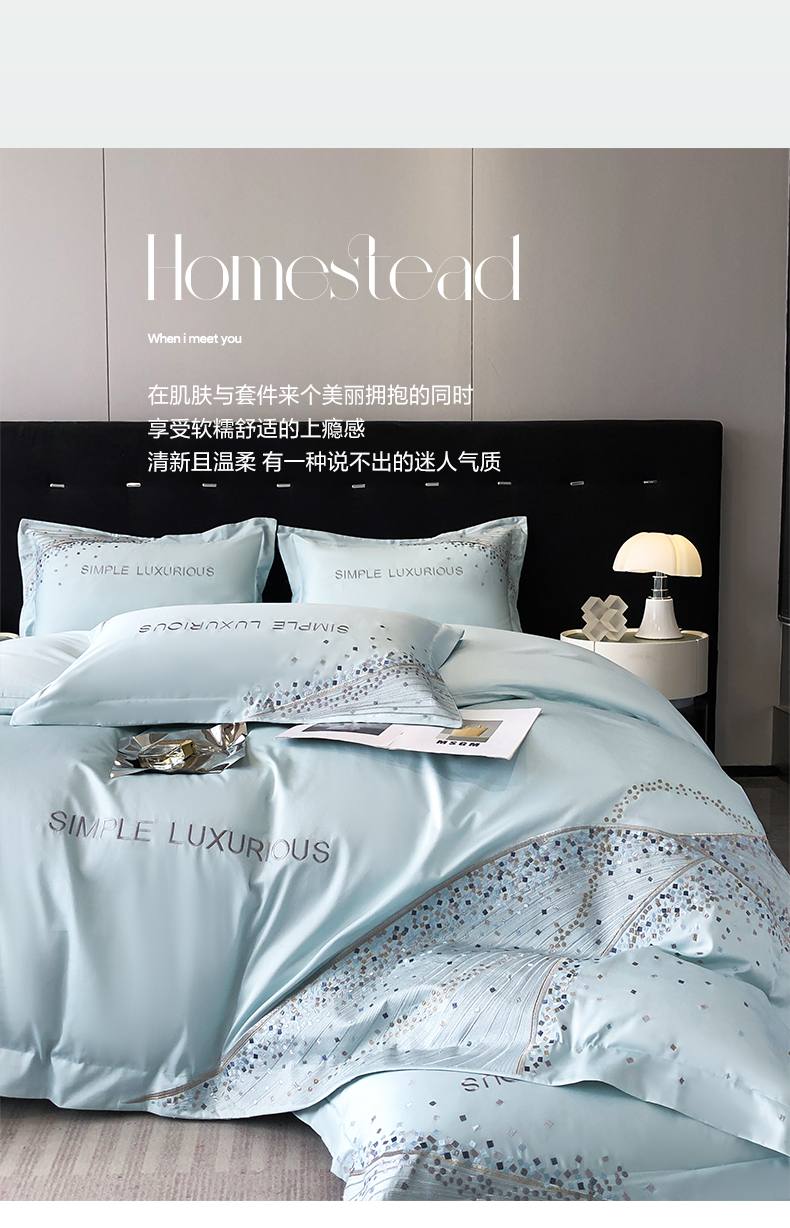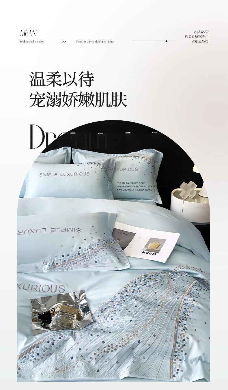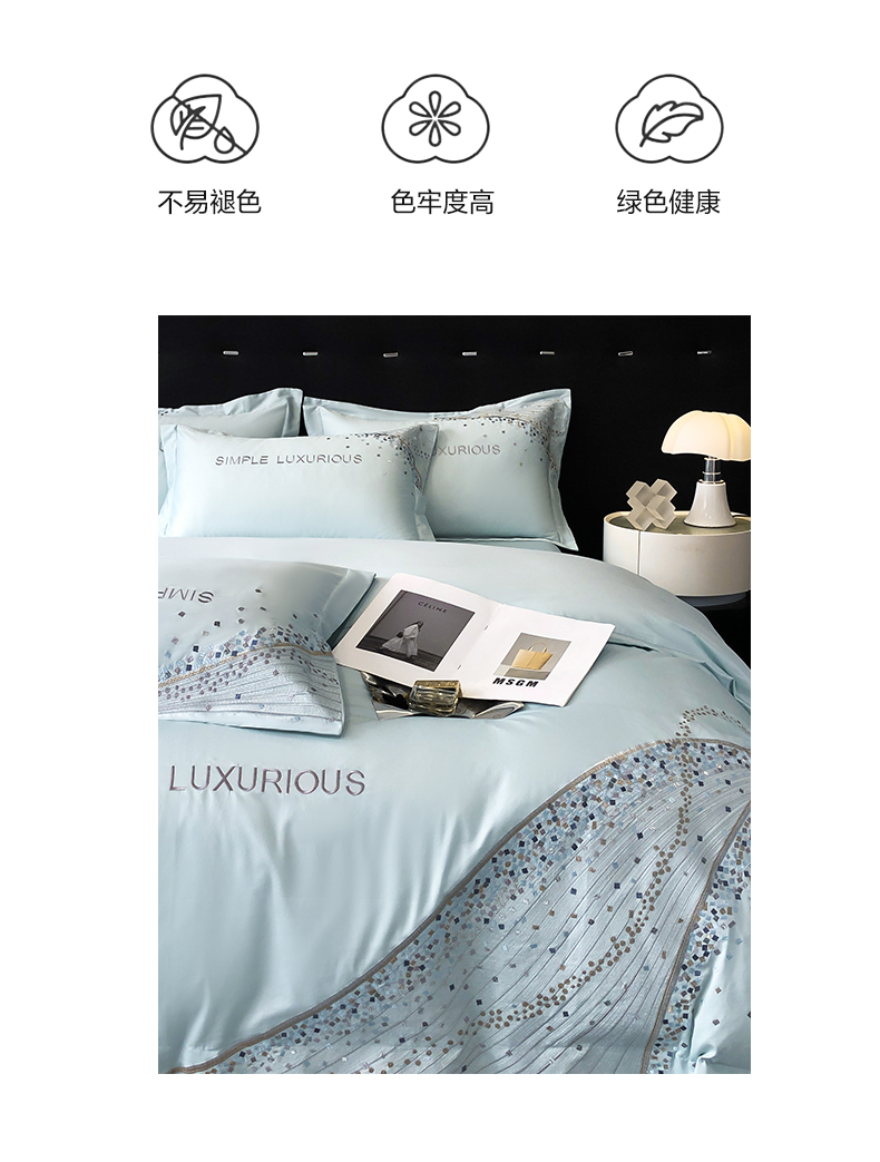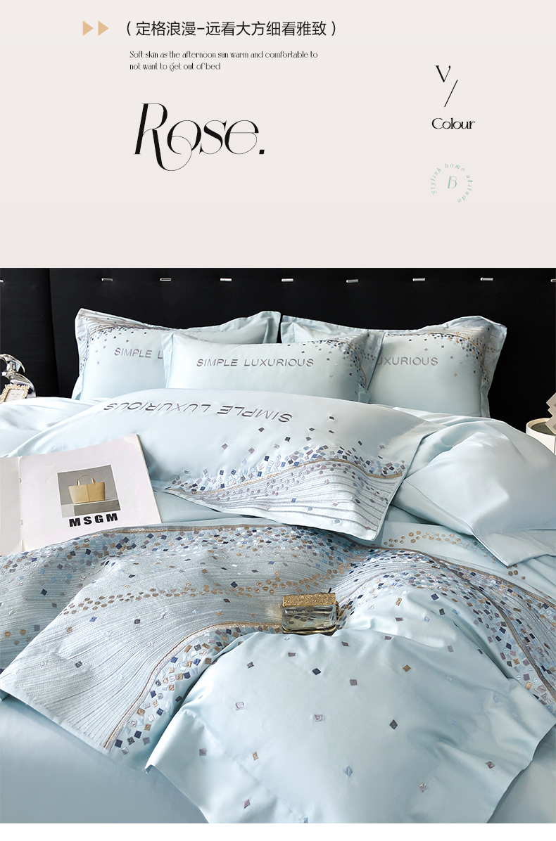(总)欧乐蒂 2025新款欧式水洗贡缎全棉刺绣四件套-欧雅终版,宾利蓝,玉色,白色,粉色,豆沙,酒红,香槟,高级灰
