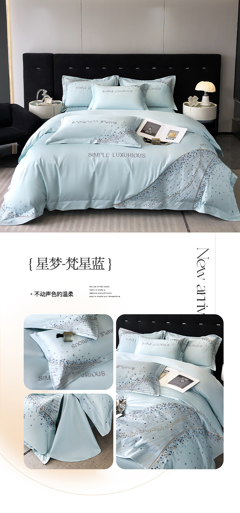 商品名称:欧乐蒂 2025新款星梦-高支高密新疆长绒棉四件套-终版 星梦-梵星蓝