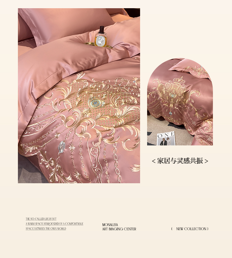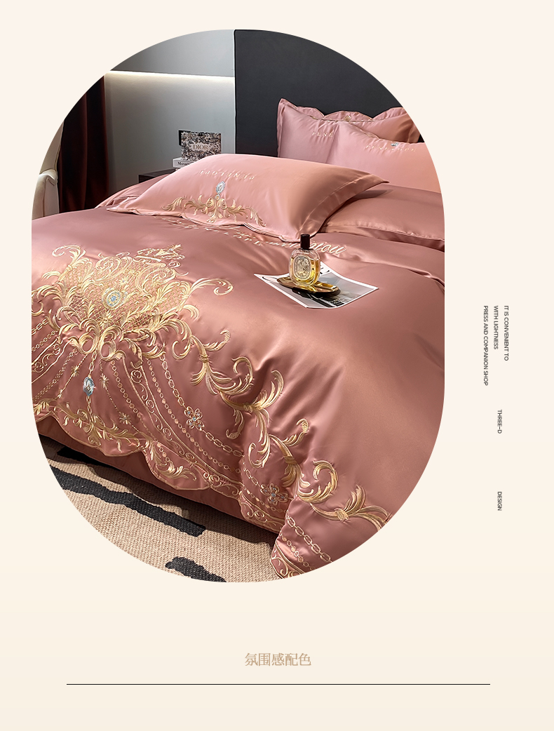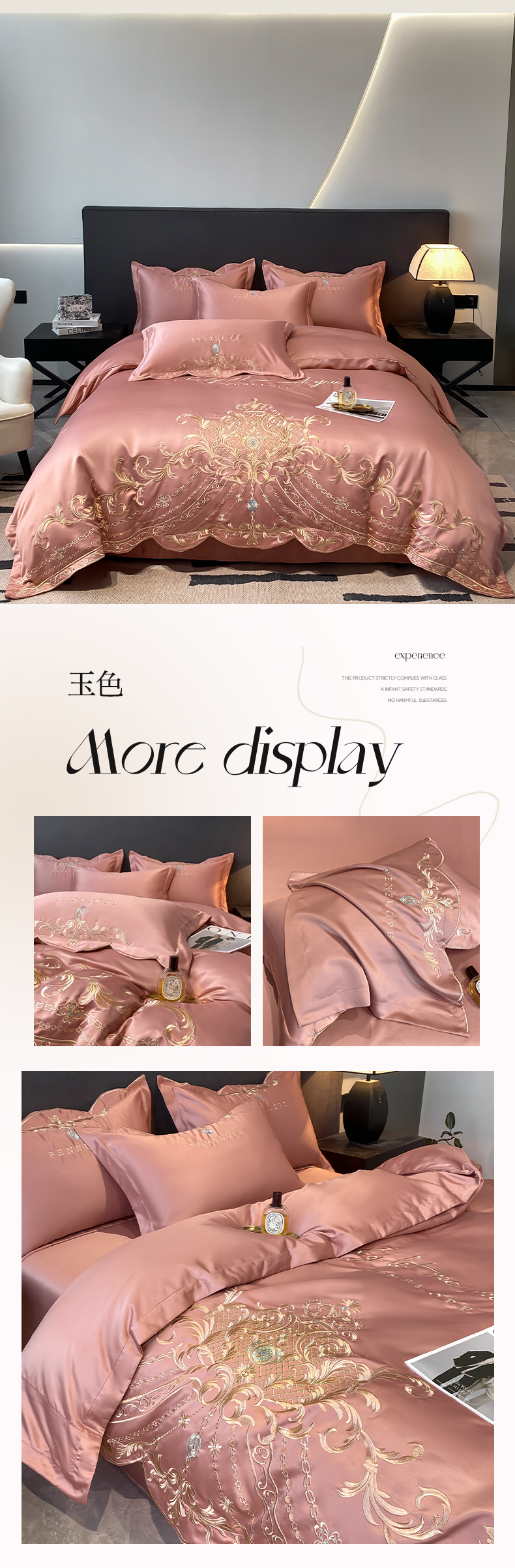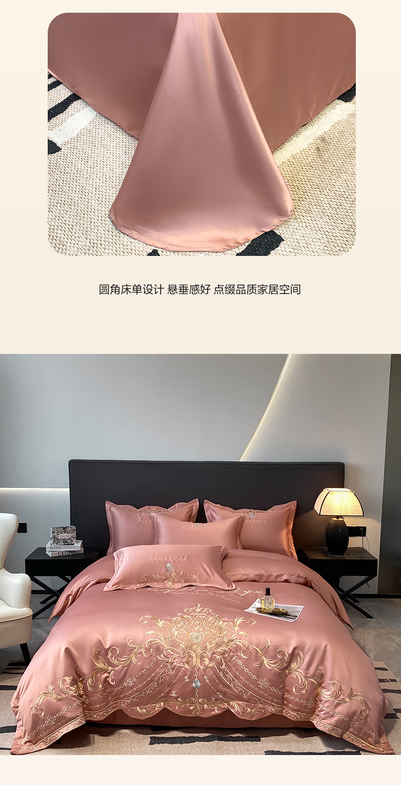 (总)欧乐蒂 2025新款欧式水洗贡缎全棉刺绣四件套-欧雅终版,宾利蓝,玉色,白色,粉色,豆沙,酒红,香槟,高级灰