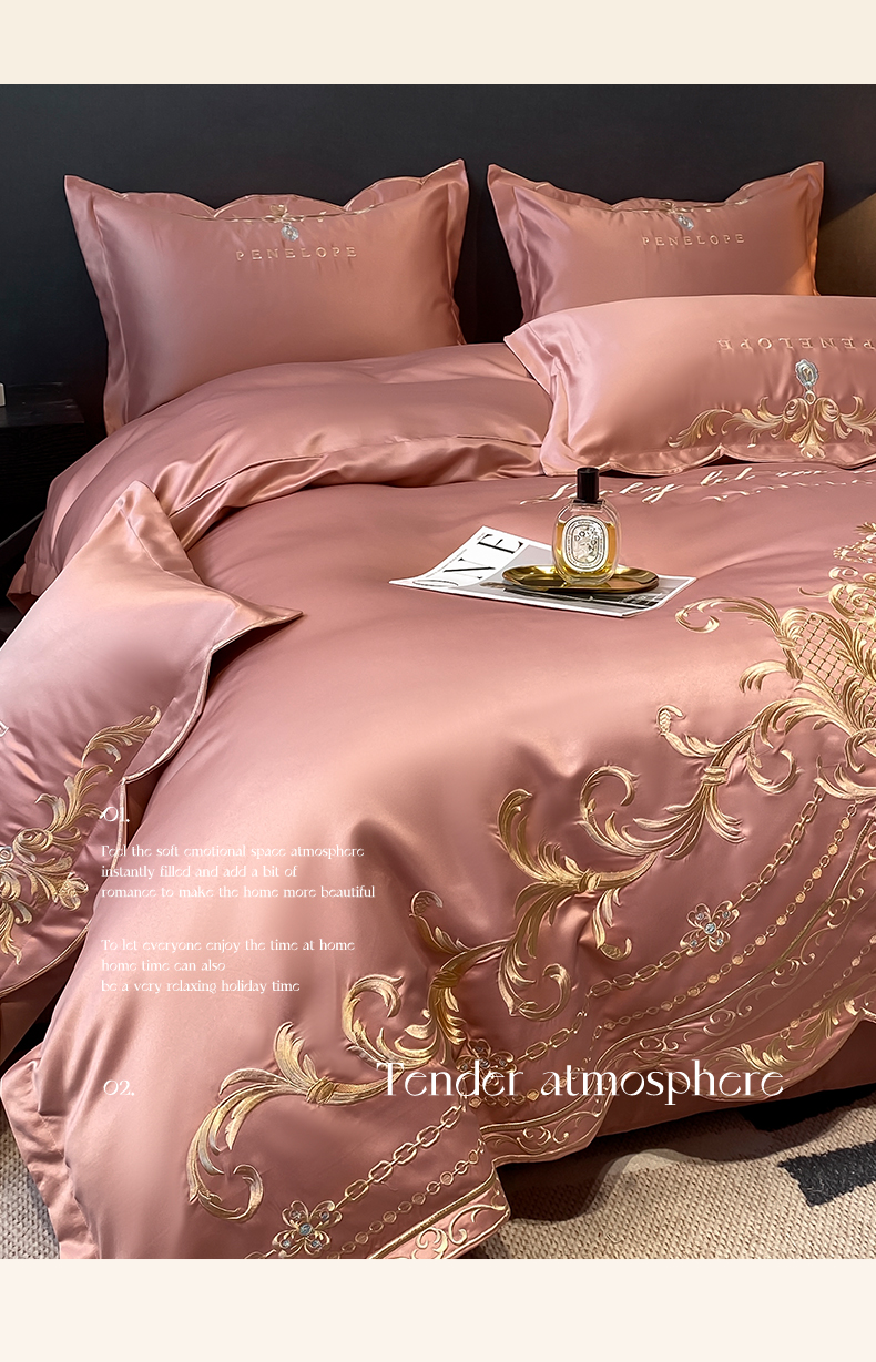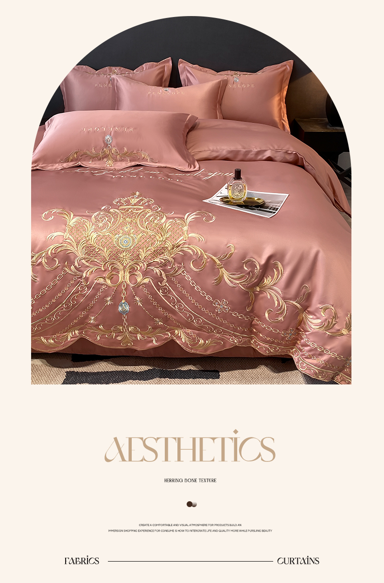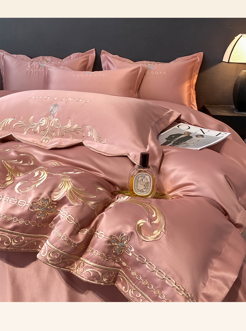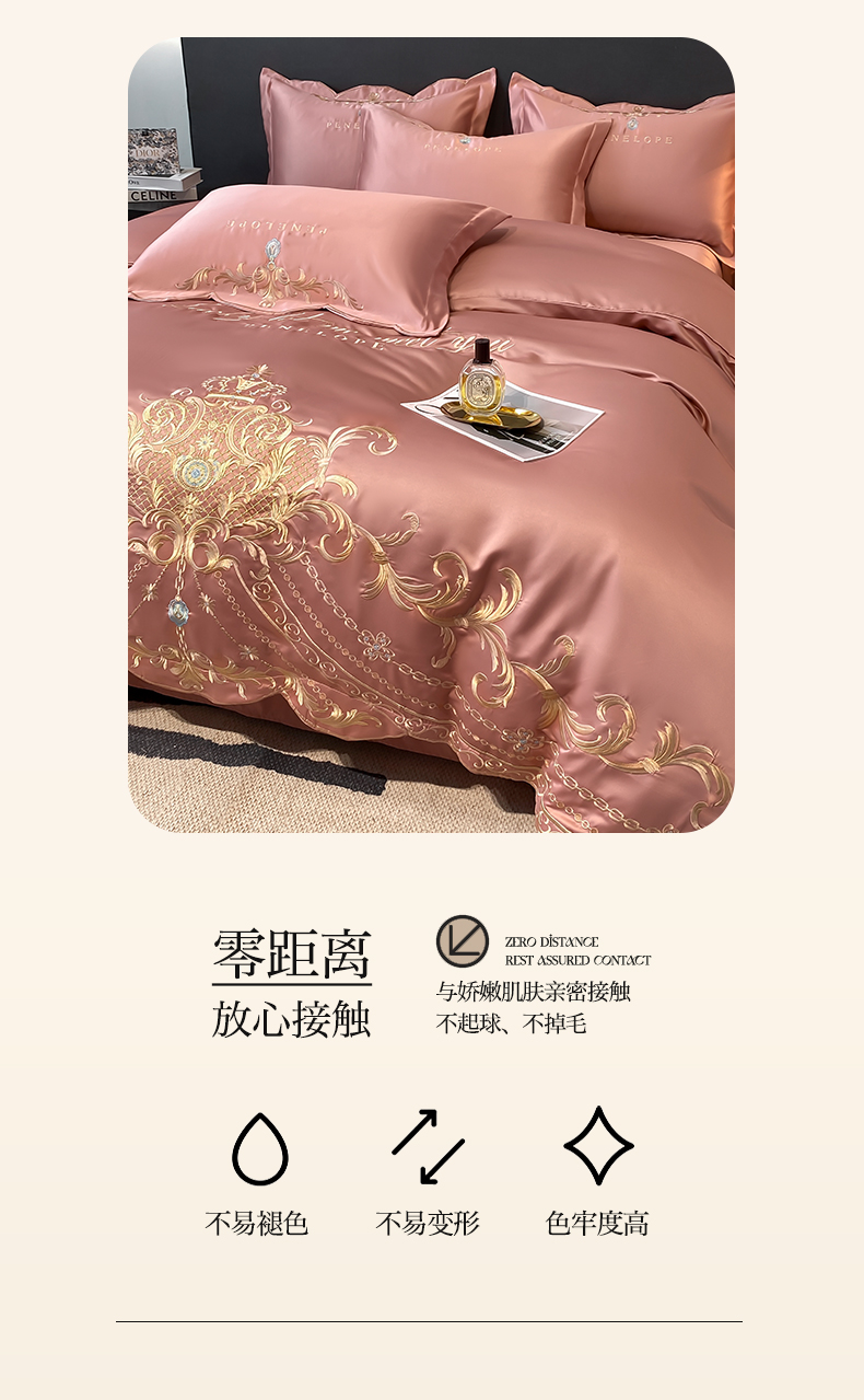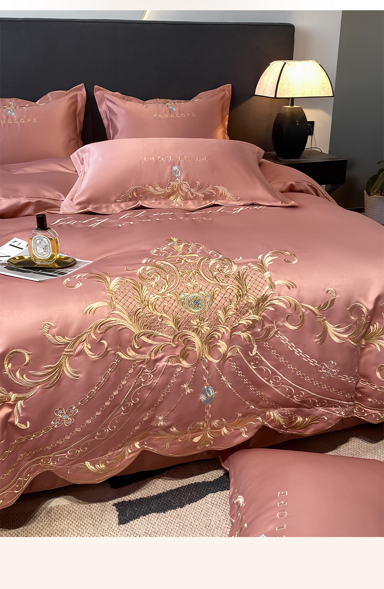 (总)欧乐蒂 2025新款欧式水洗贡缎全棉刺绣四件套-欧雅终版,宾利蓝,玉色,白色,粉色,豆沙,酒红,香槟,高级灰