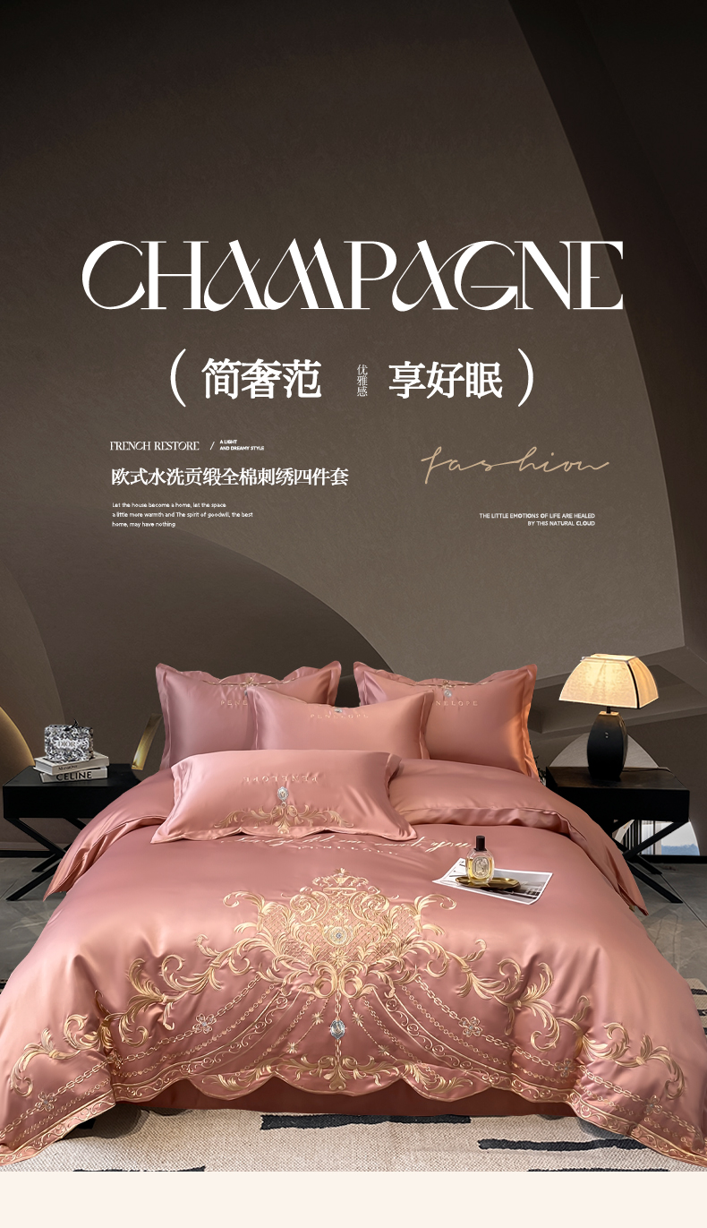 商品名称:欧乐蒂 2025新款欧式水洗贡缎全棉刺绣四件套-欧雅终版 玉色