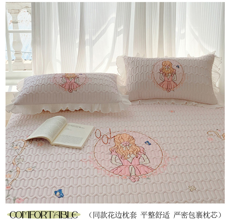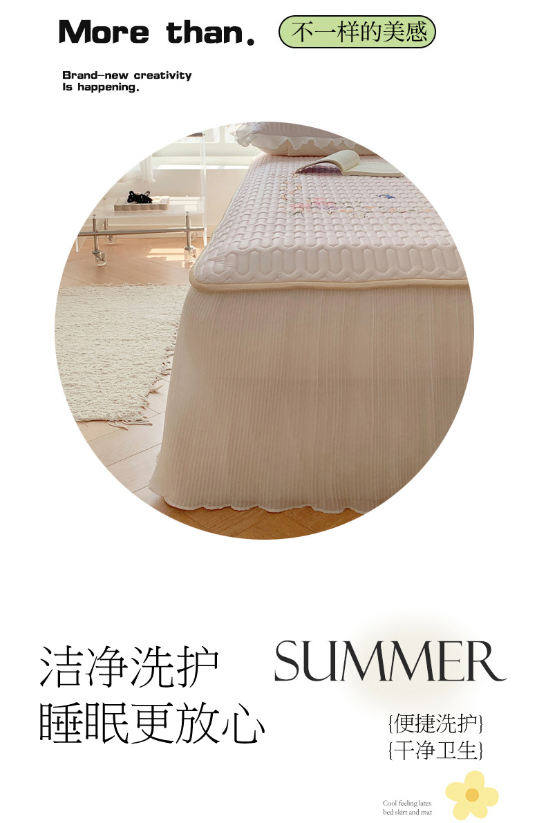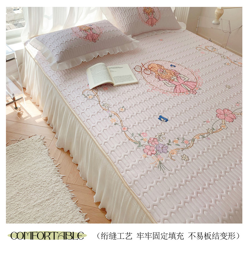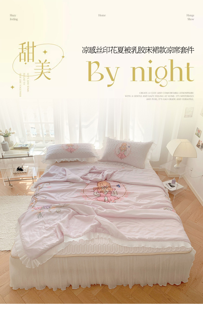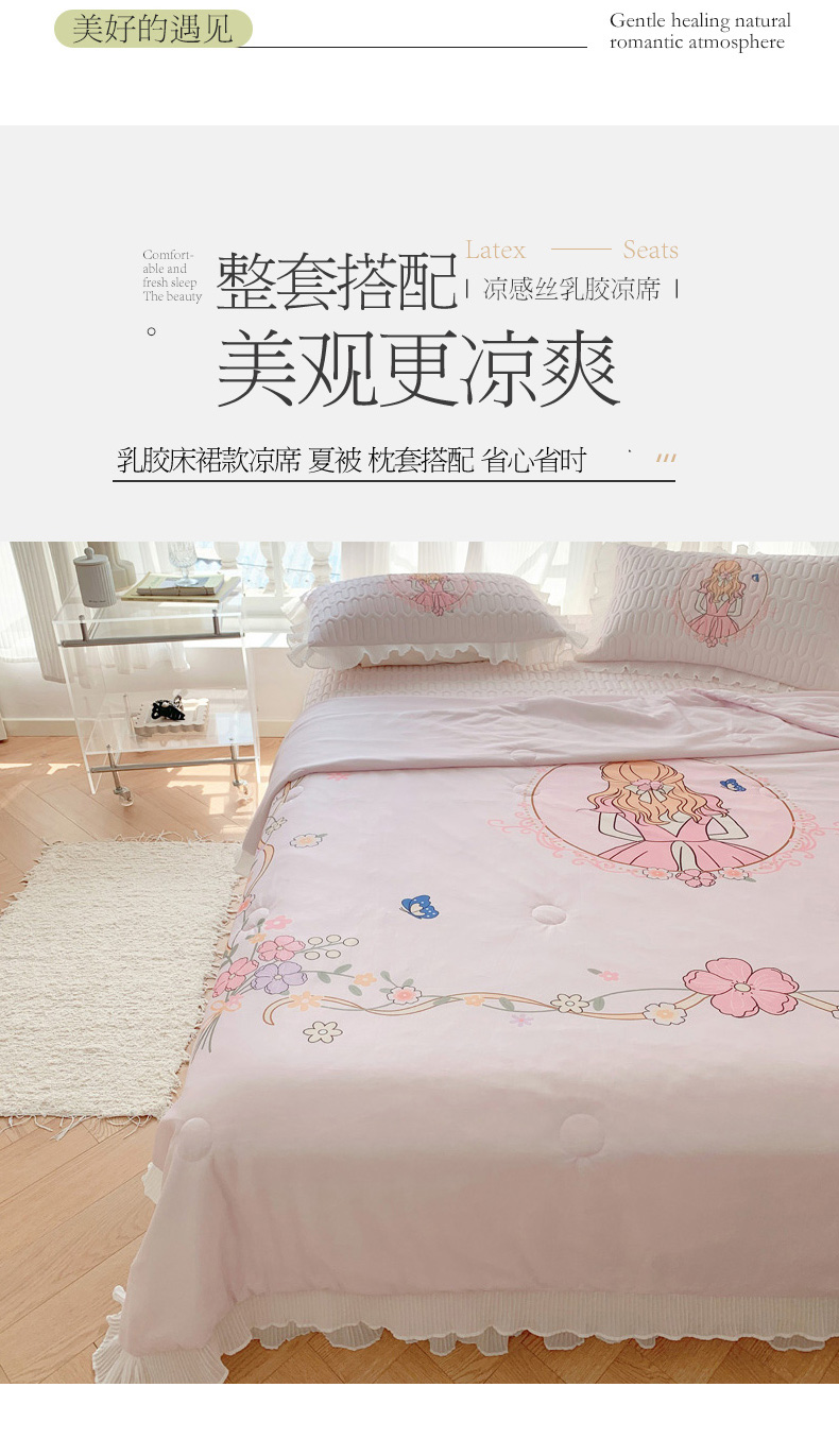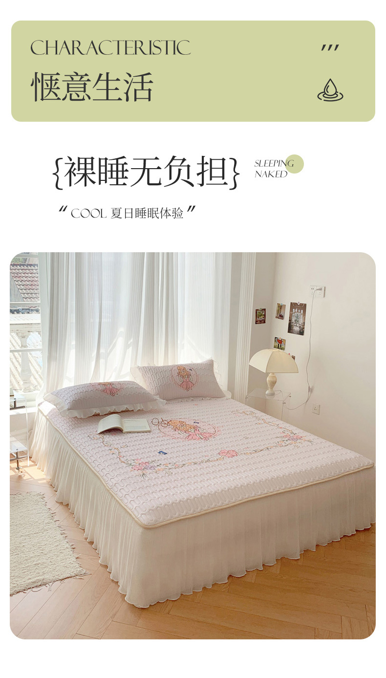 慕澄家纺 2024新款大版印花床裙款乳胶凉席-凉席三件套 女孩