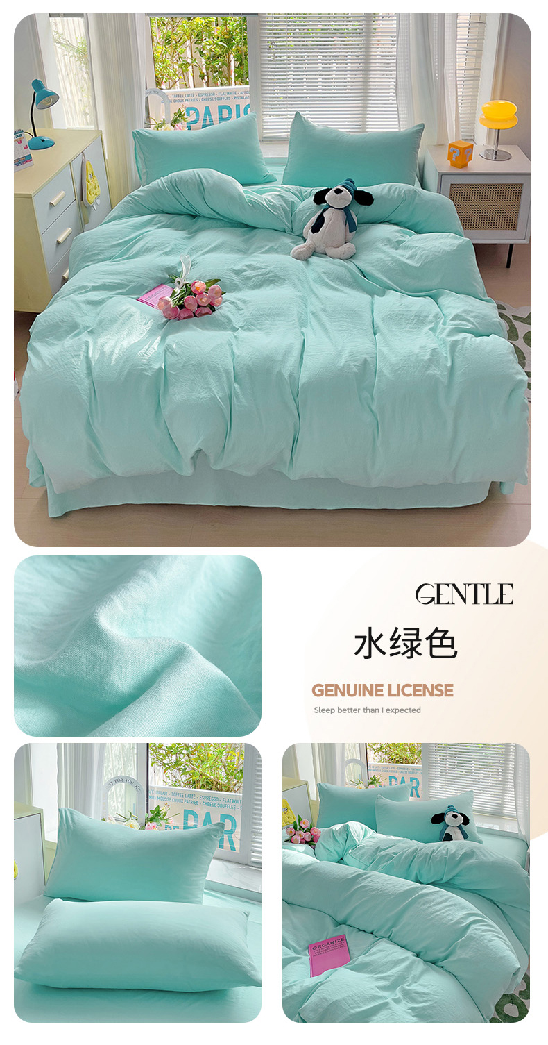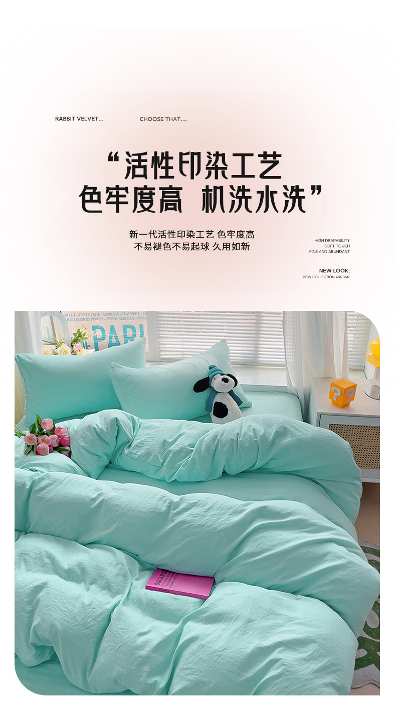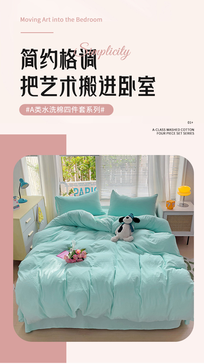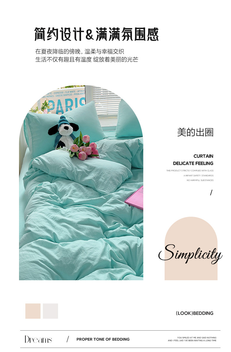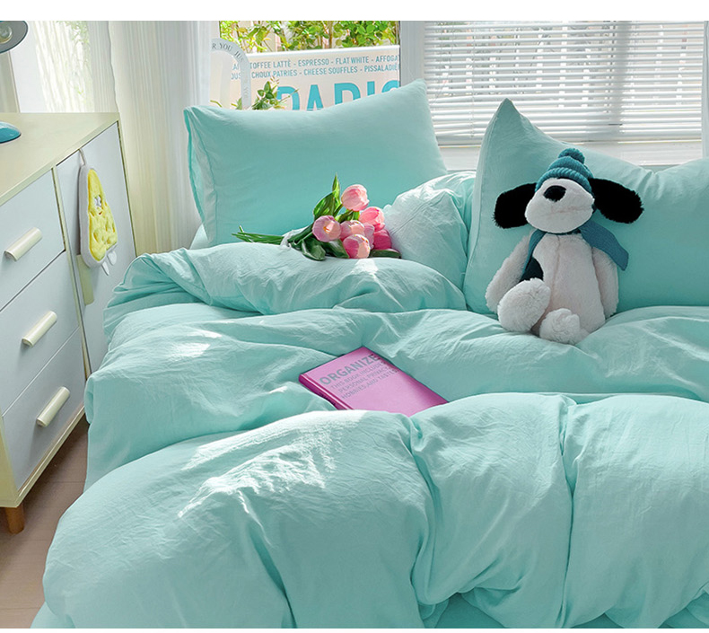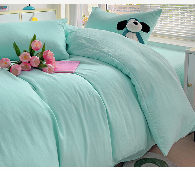 当前位置: 91家纺网 > 商品网购 > 床品套件 > 四件套 > 水洗棉四件套 > 森璐家纺 2024新款1ins风水洗棉四件套纯色四件套混搭素色四件套(二) 水绿色