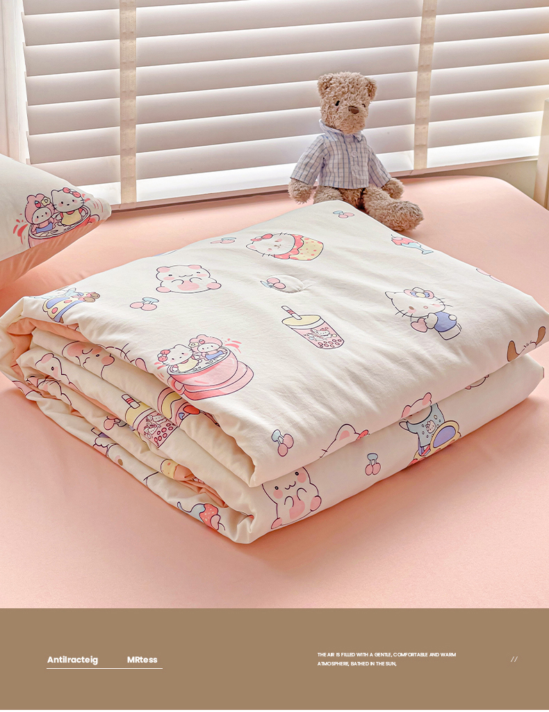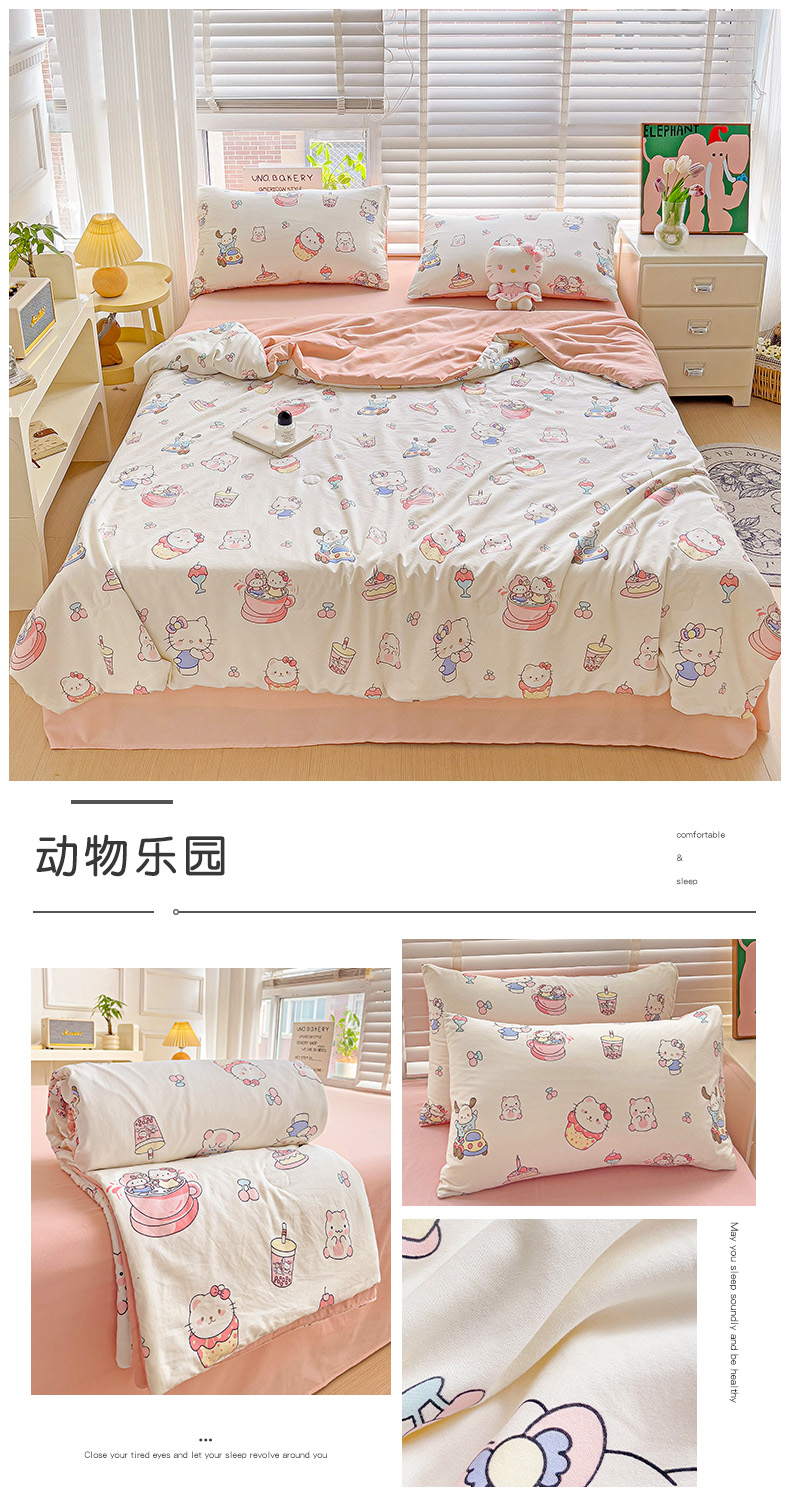 优选 2025直播爆款水洗皱皱夏被四件套空调被芯三件套春秋被子 动物乐园