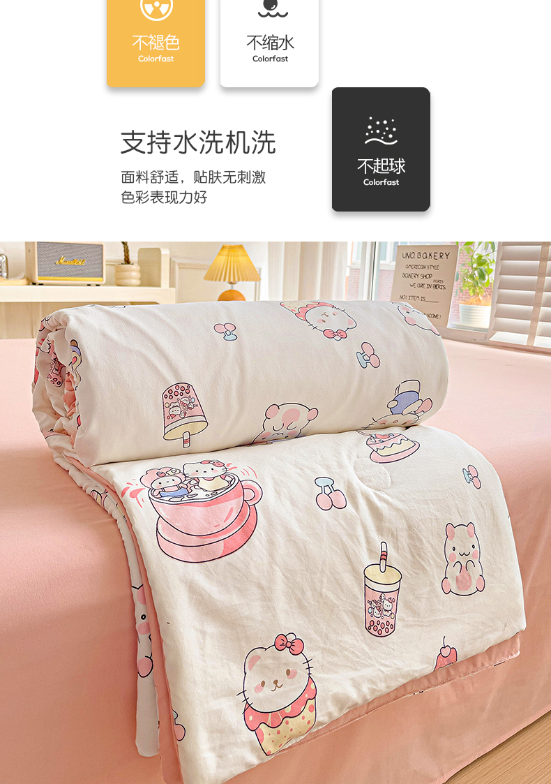 (总)优选 2025新款木棉双层纱ins少女心可爱加厚豆豆冬被四件套床盖三件套暖梦小红书推荐,组合图仅做展示不可下单,点点爱心,格子草莓,格子樱桃,花花兔兔,快乐小新,绿色条格,十里桃花,童话世界,音乐篇章
