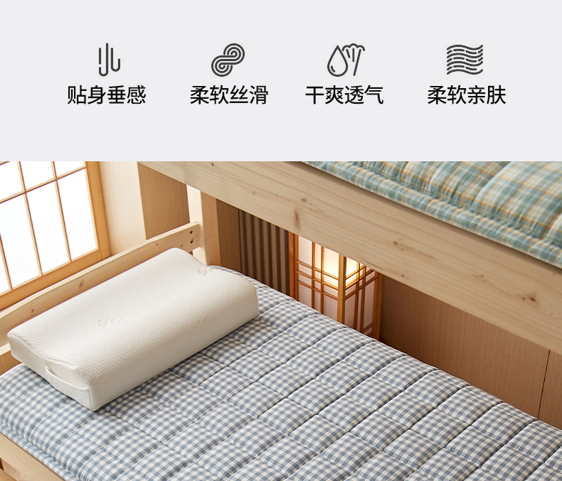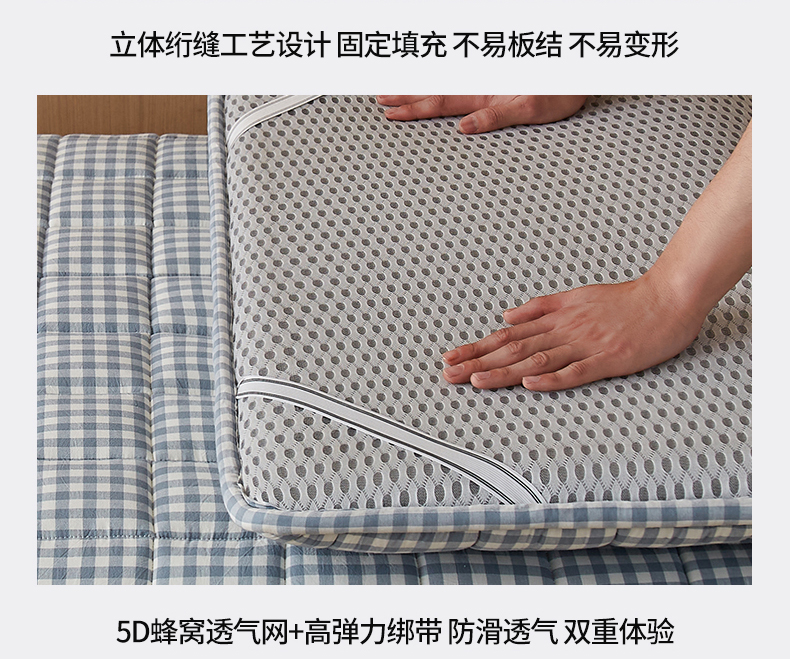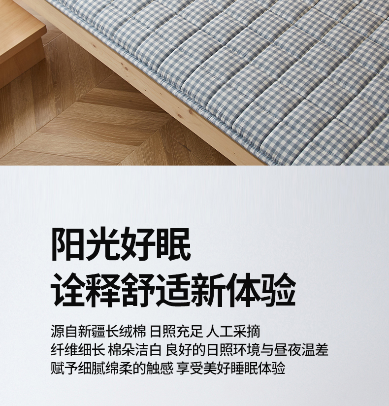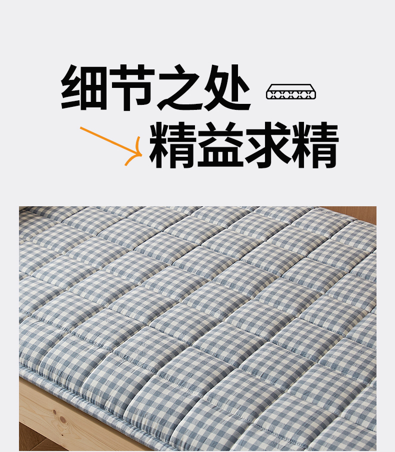 商品名称:祁恋婷家居 2024新款全棉水洗棉棉花床褥床垫【床垫遮盖物】系列-学生款 蓝小格