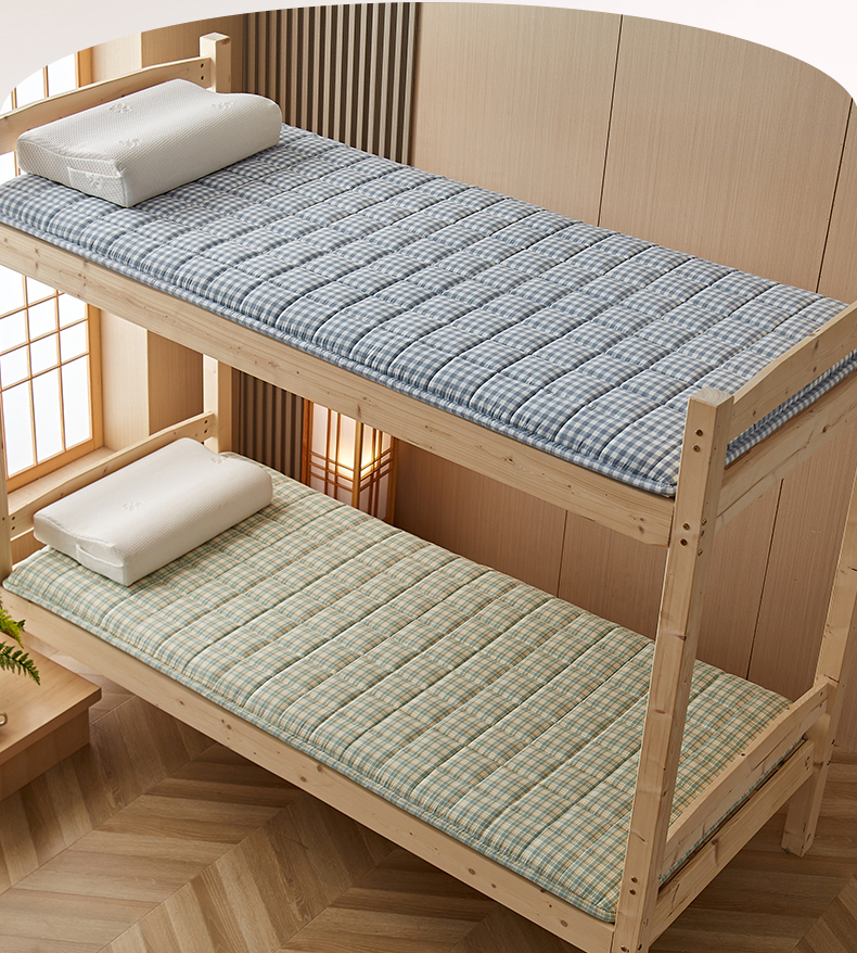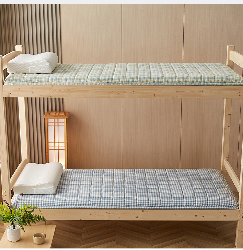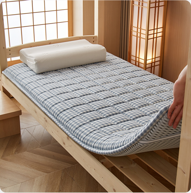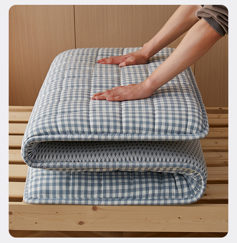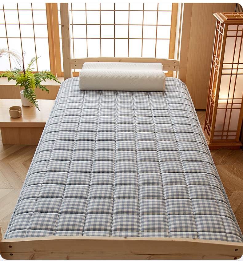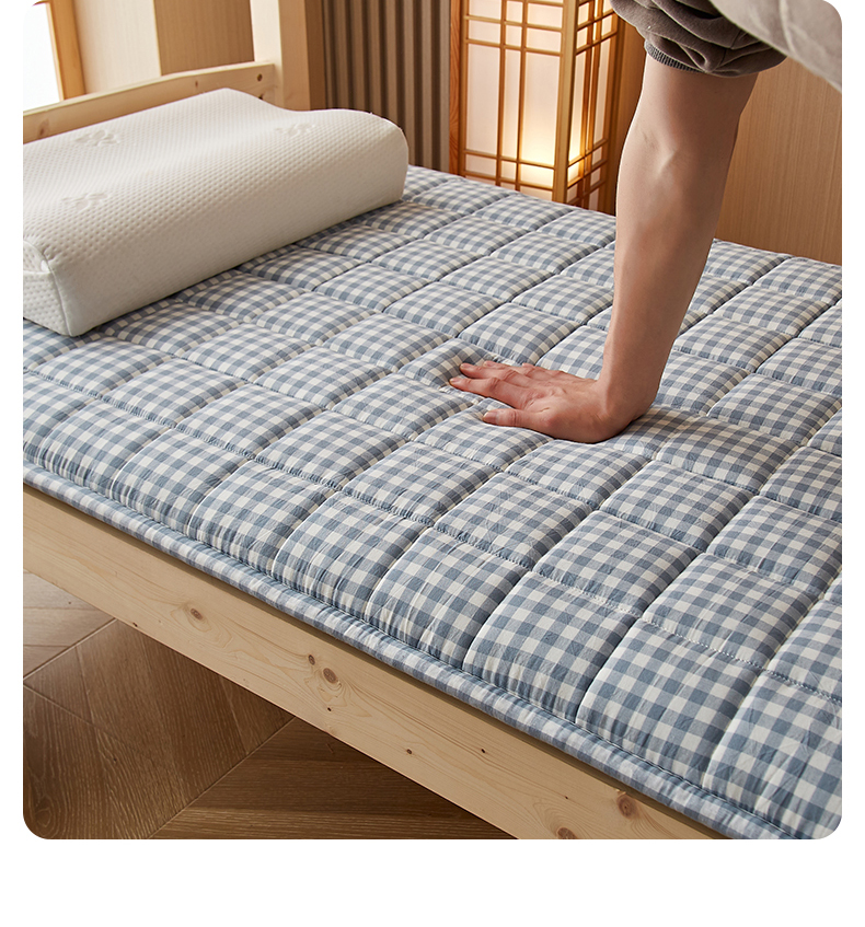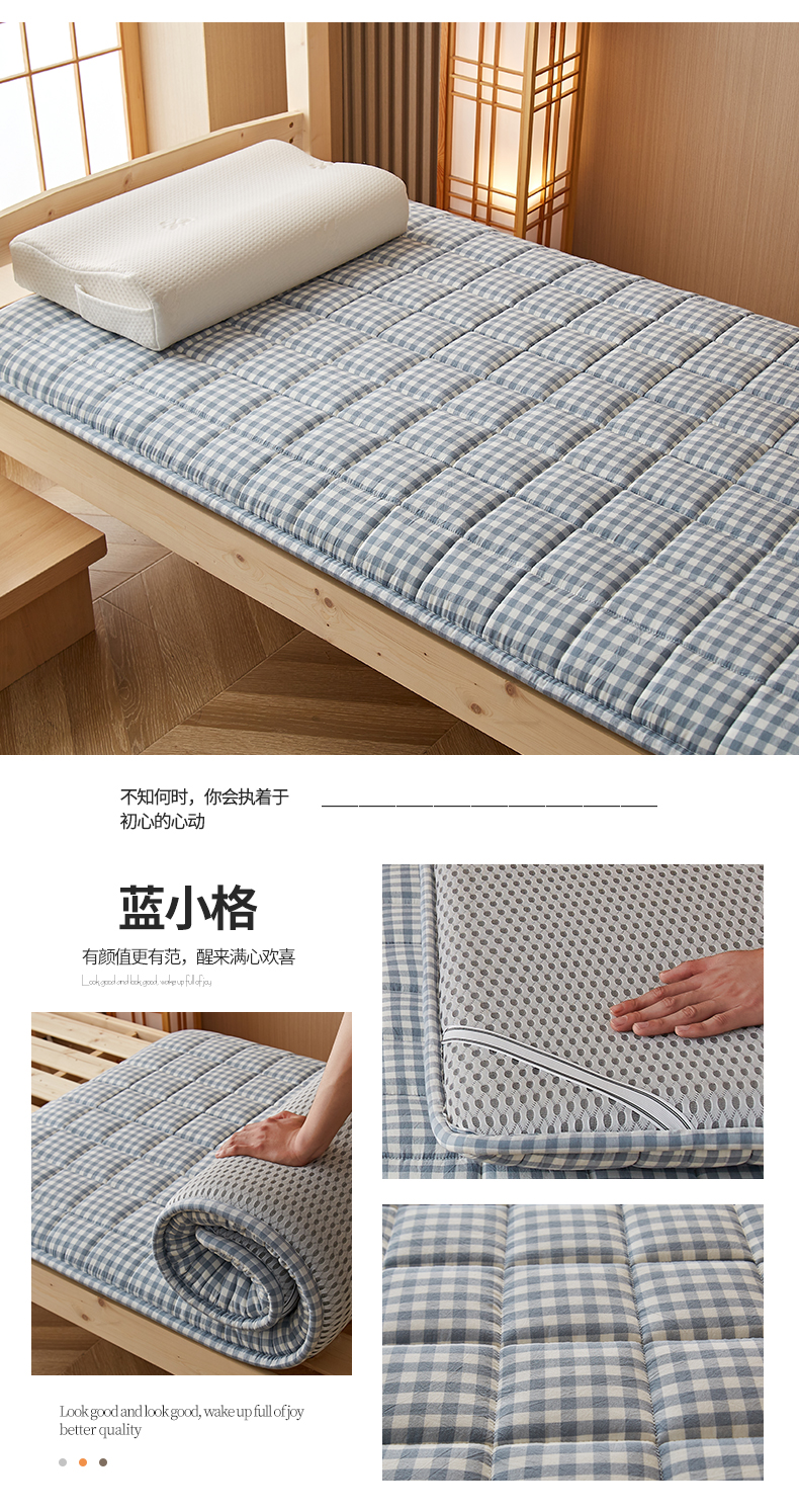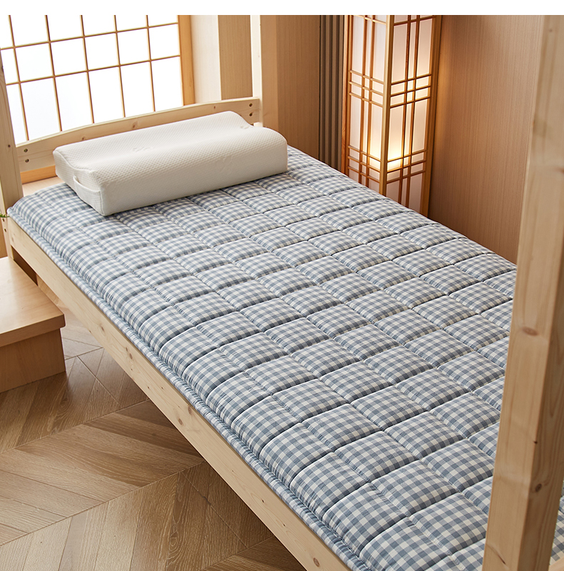 祁恋婷家居 2024新款全棉水洗棉棉花床褥床垫【床垫遮盖物】系列-学生款 蓝小格