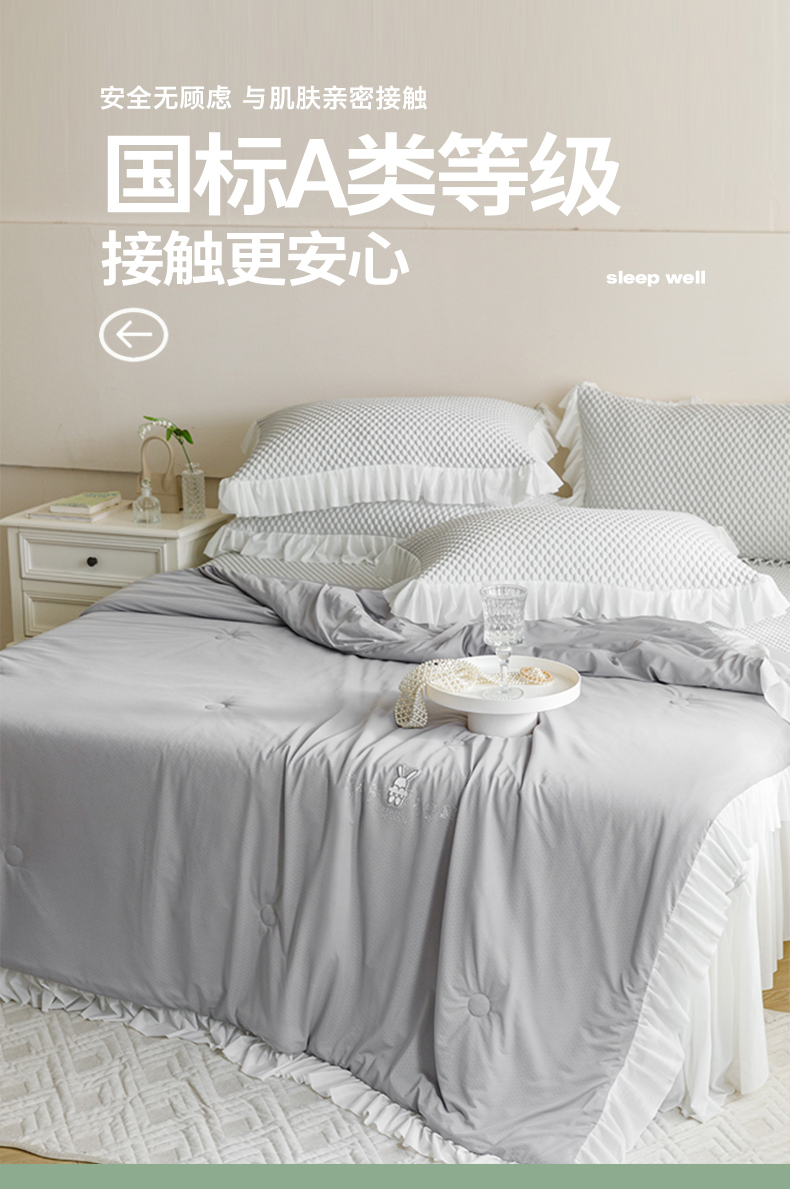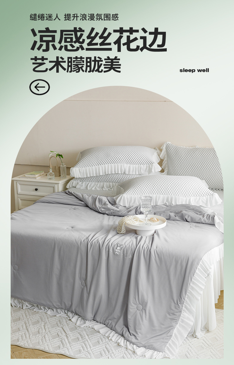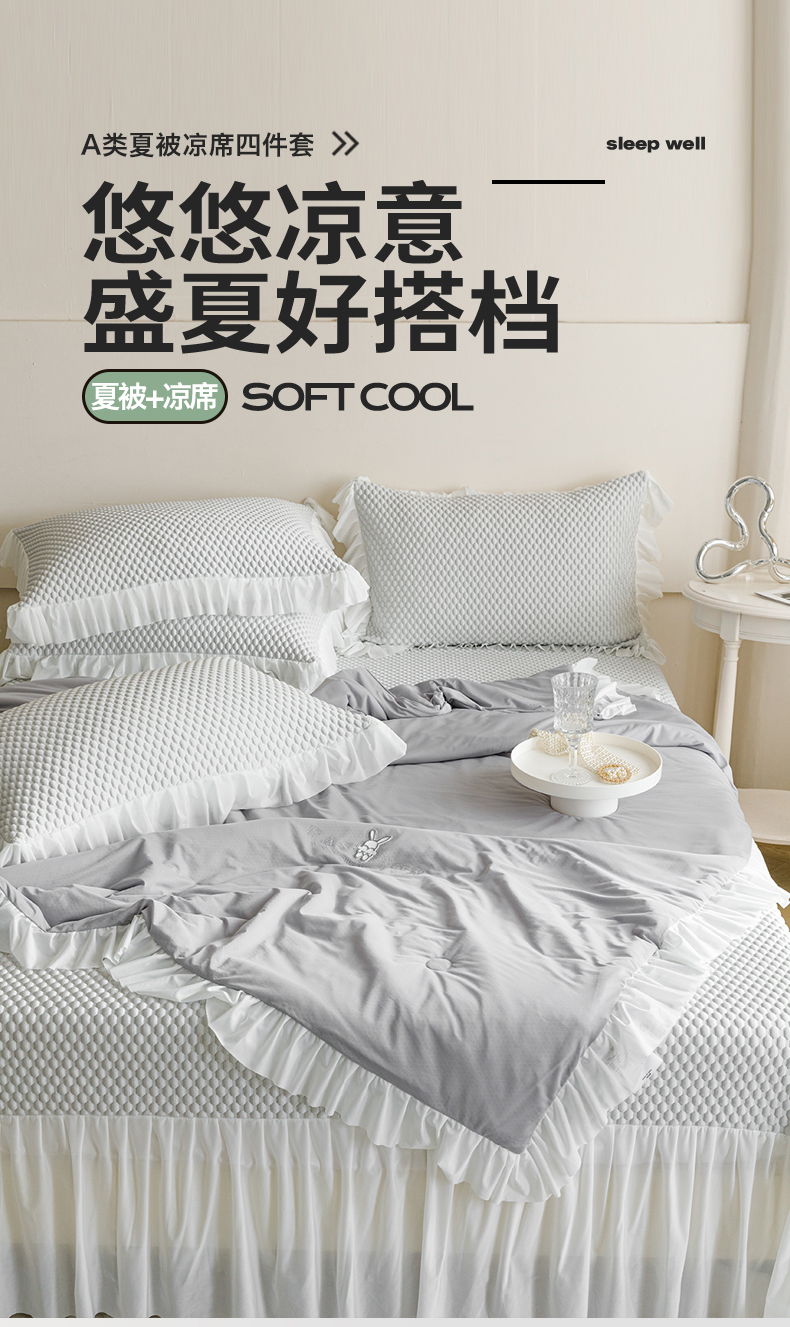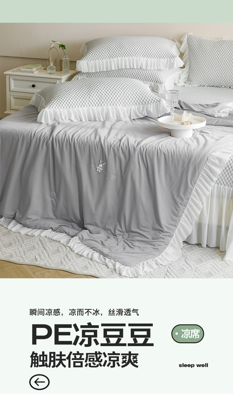 婳庭家居 2024新款夏被豆豆凉席四件套 豆豆-浅灰