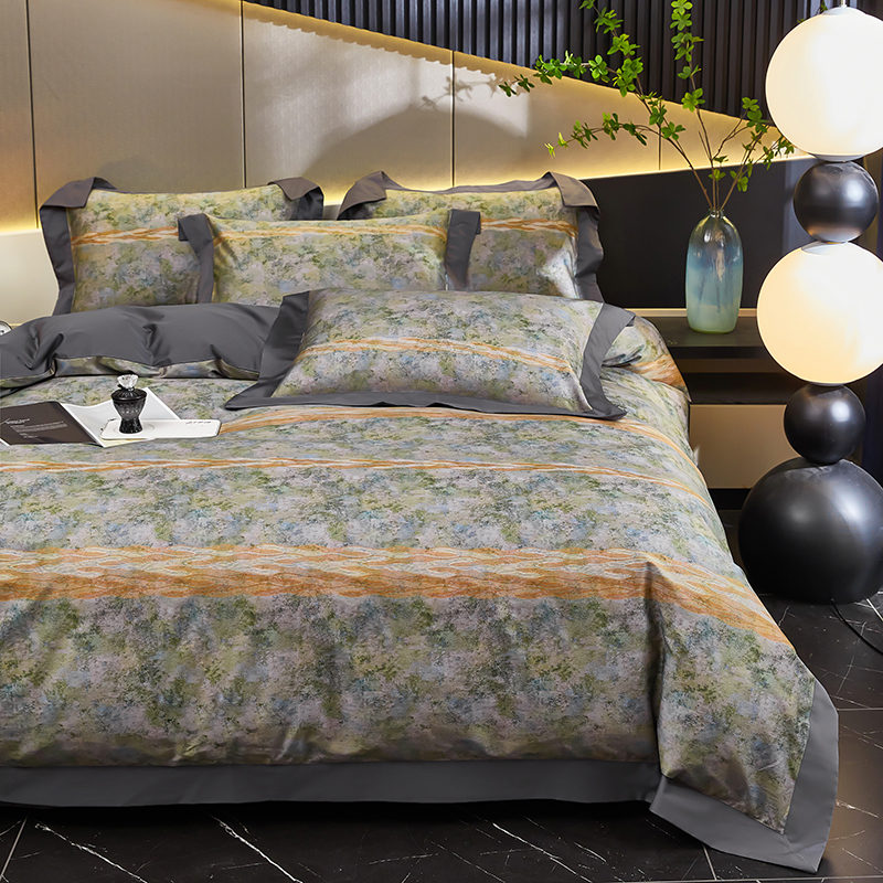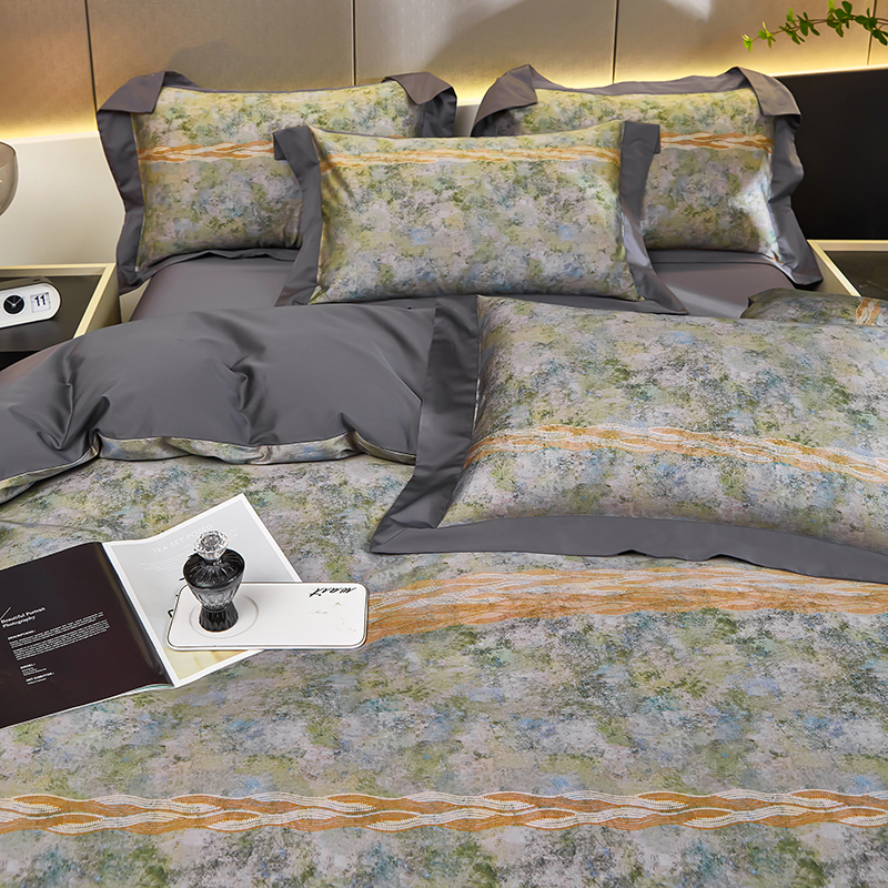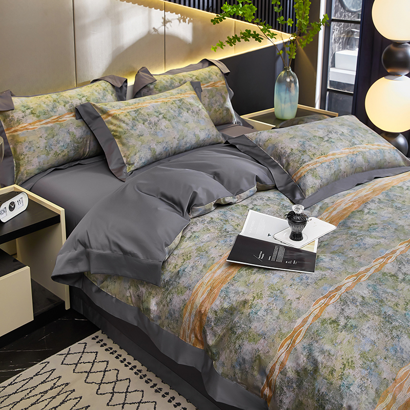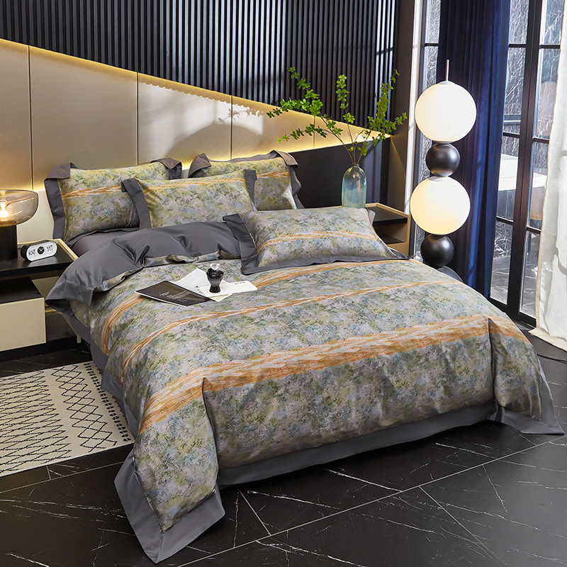 优姿家纺 2024新款160支长绒棉高端大版四件套 名门时光灰绿
