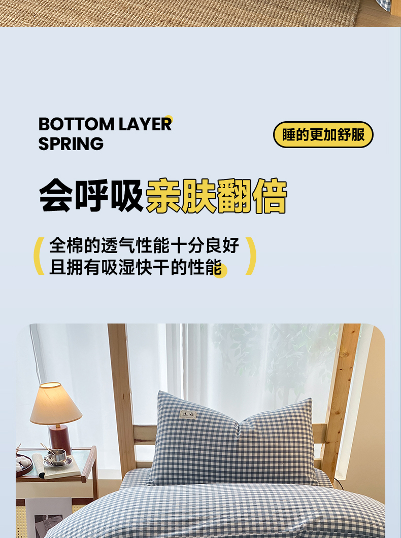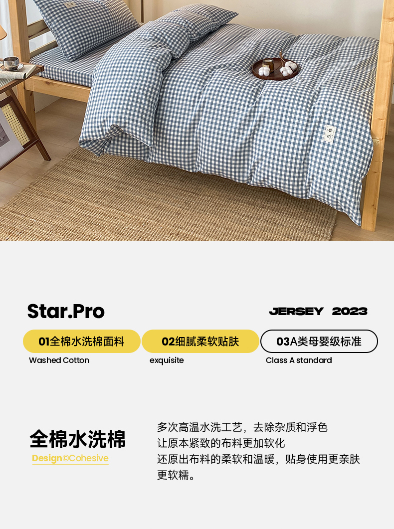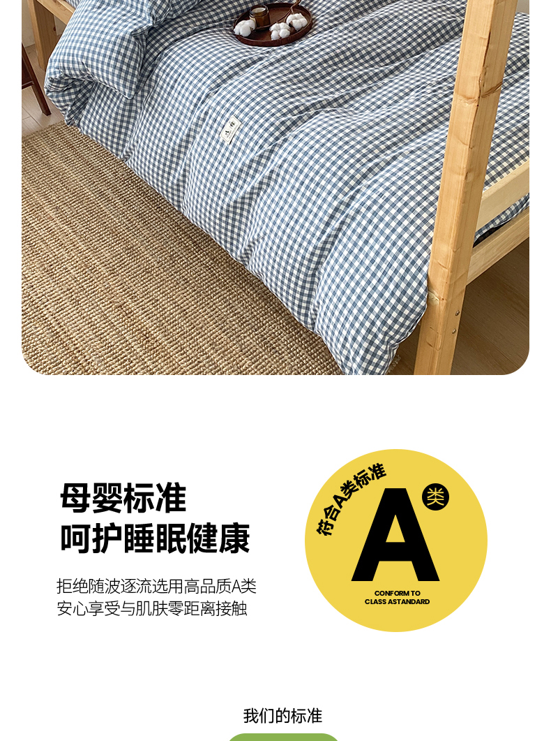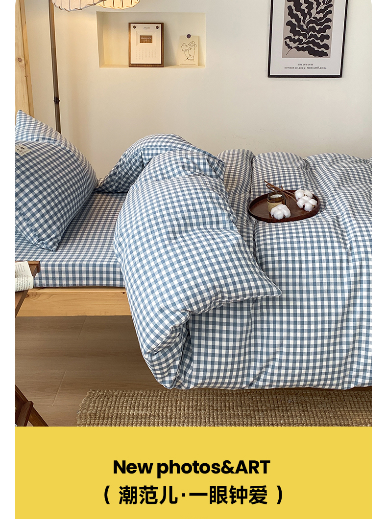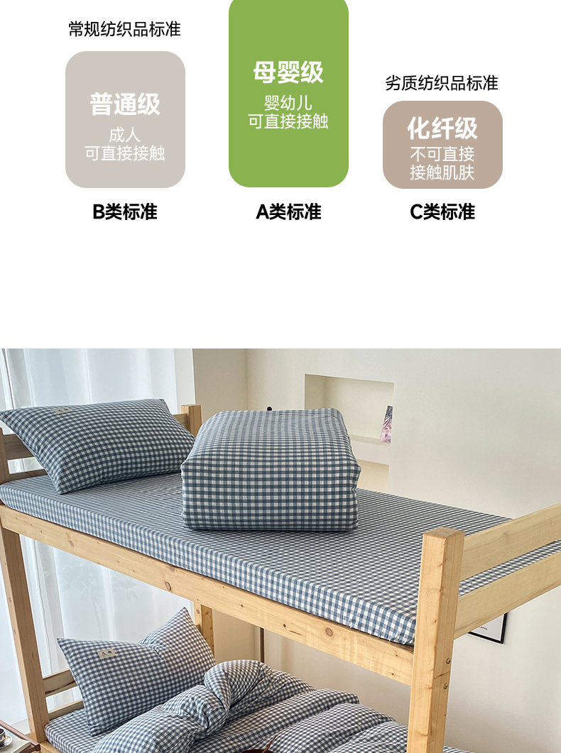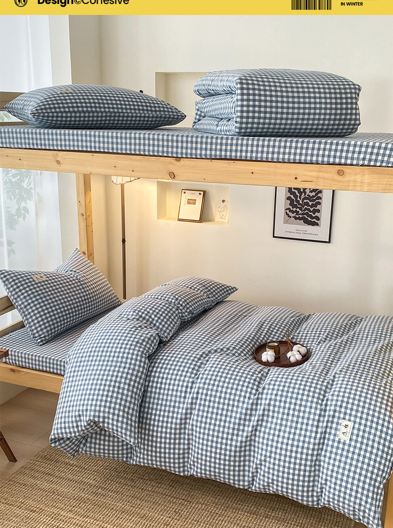 当前位置: 91家纺网 > 商品网购 > 床品套件 > 三件套 > 21度C 2024新款色织全棉水洗棉学生三件套 蓝小格