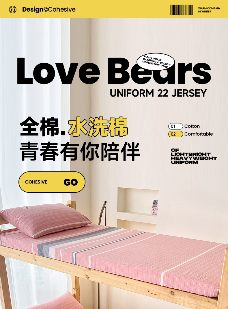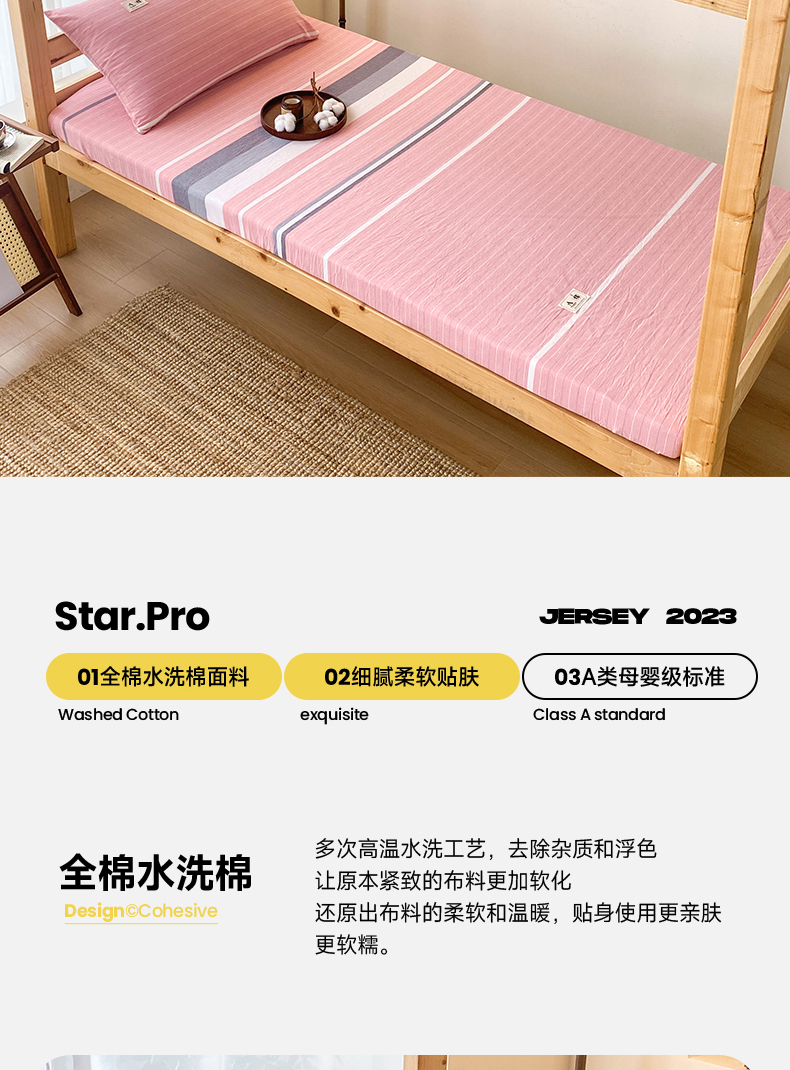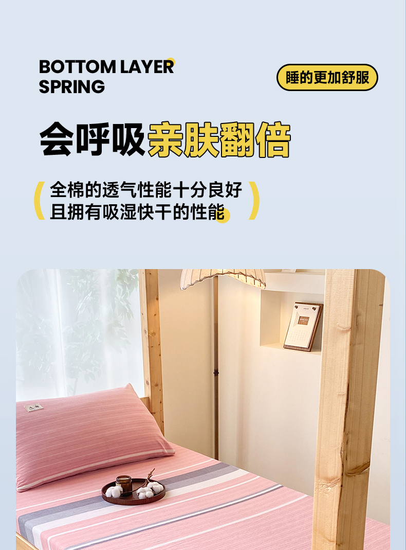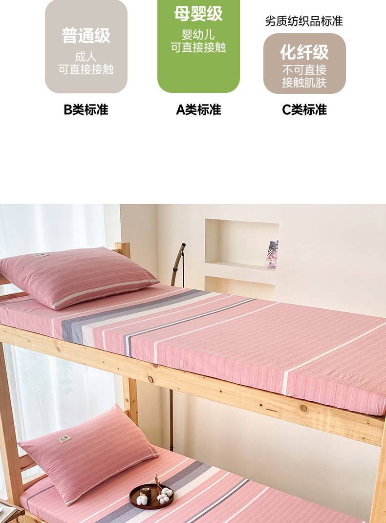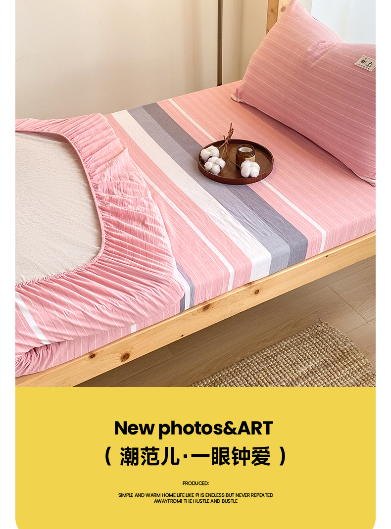 • 91家纺网 家纺一手货源 找家纺 21度C 2024新款色织全棉学生床笠 豆蔻粉