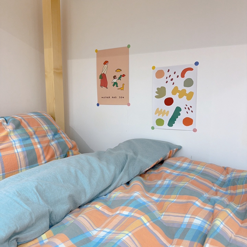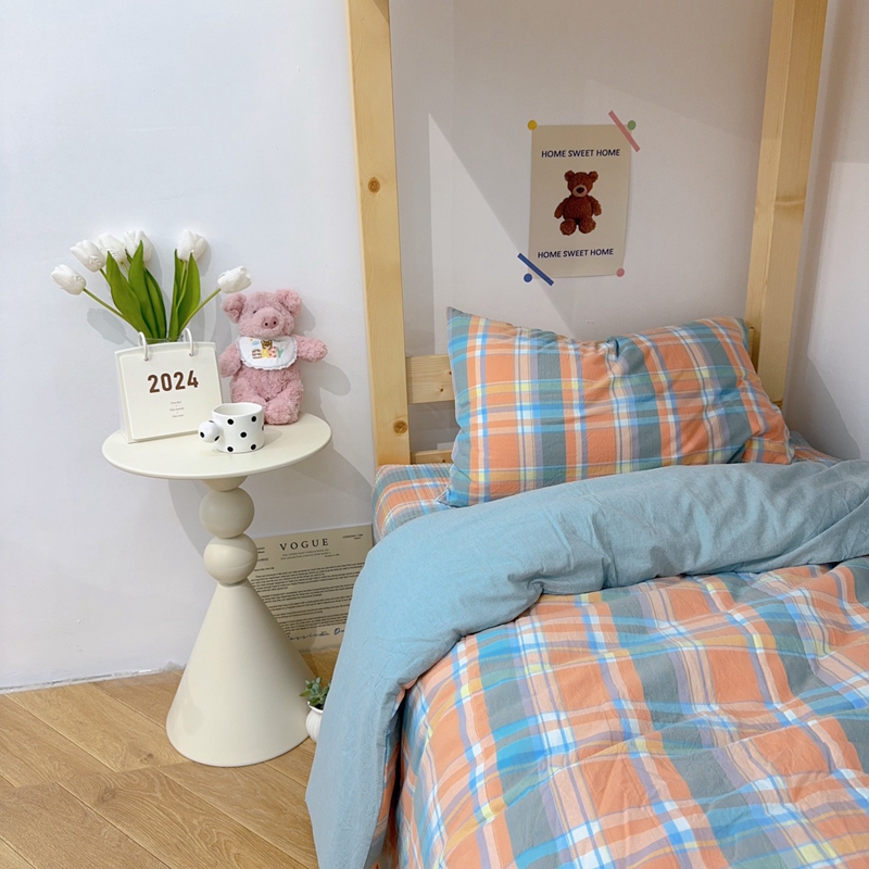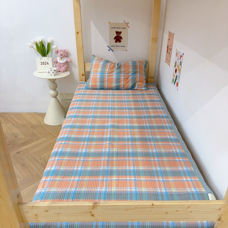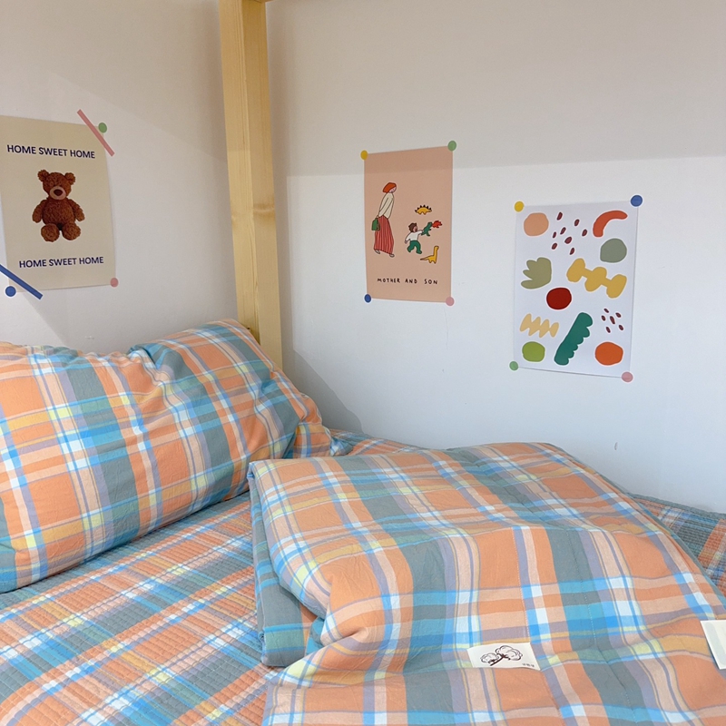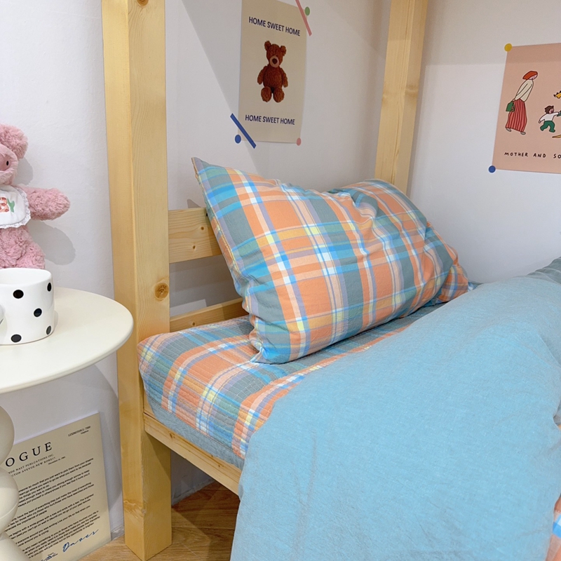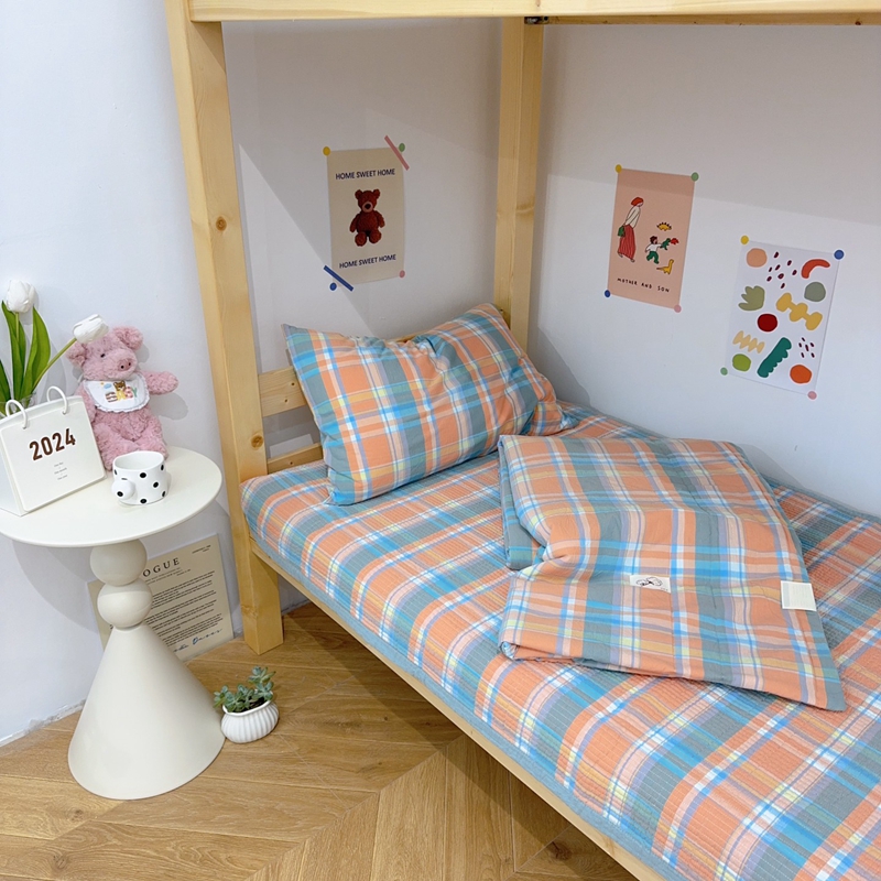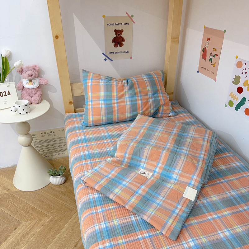 有货 2024新款水洗全棉学生大豆夏被被套床盖三件套 桔大格