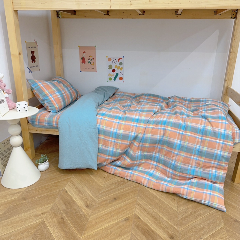 商品名称:有货 2024新款水洗全棉学生大豆夏被被套床盖三件套 桔大格