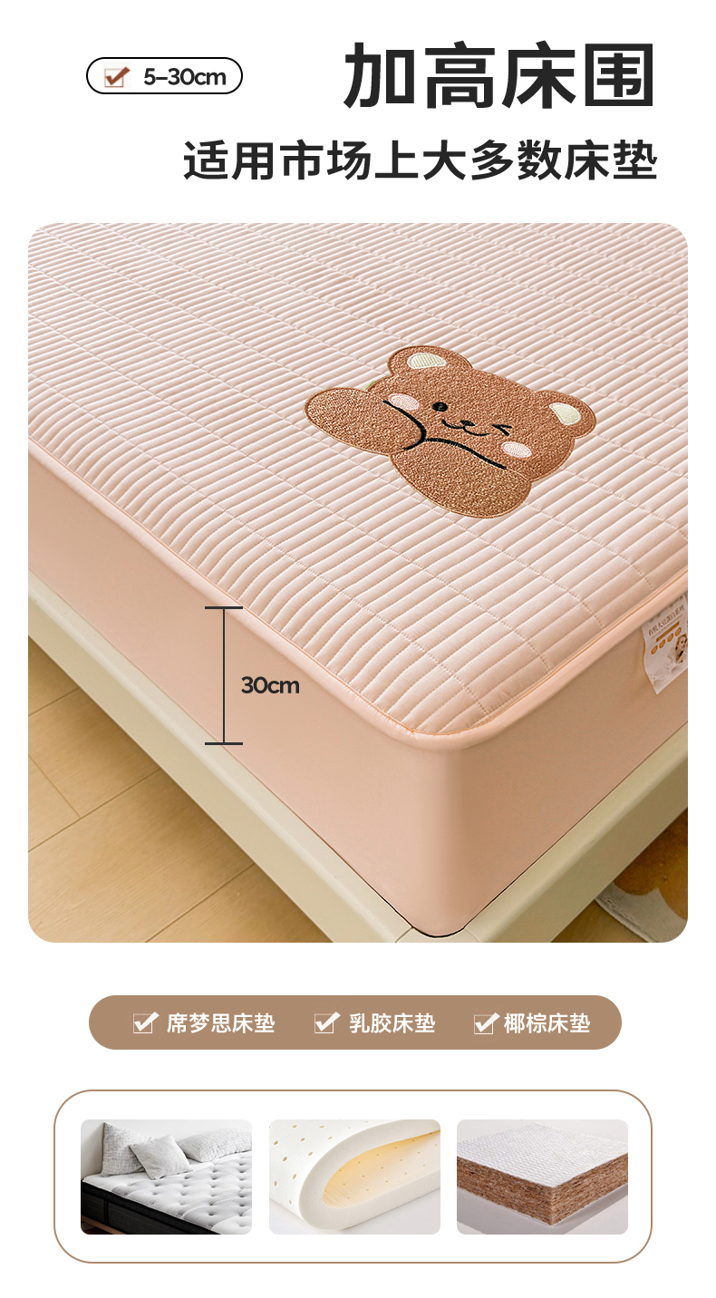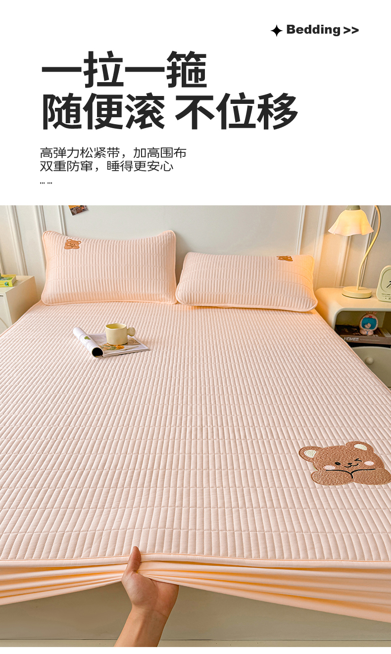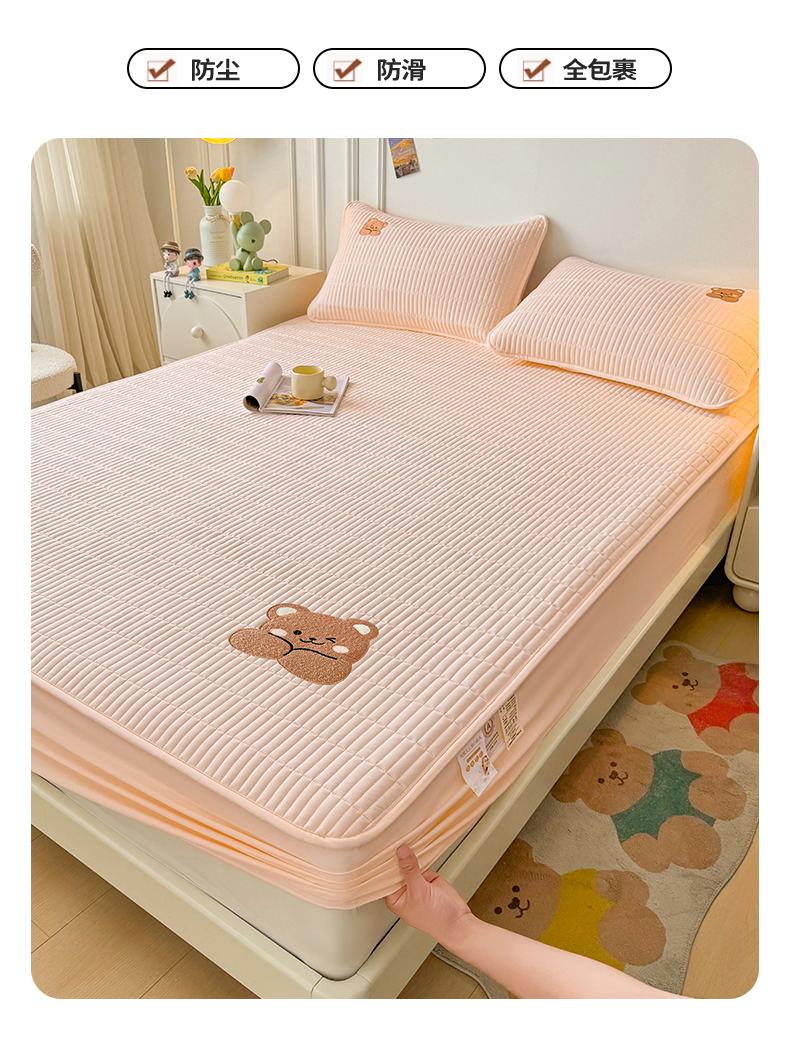 • 91家纺网 家纺一手货源 找家纺 2025新品高克重A类原棉夹棉床笠刺绣绣花柯基熊猫床笠三件套 床笠款-幸福熊-豆蔻玉