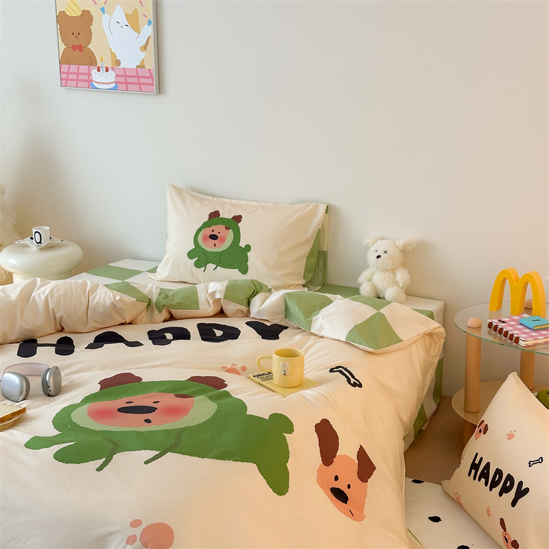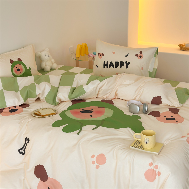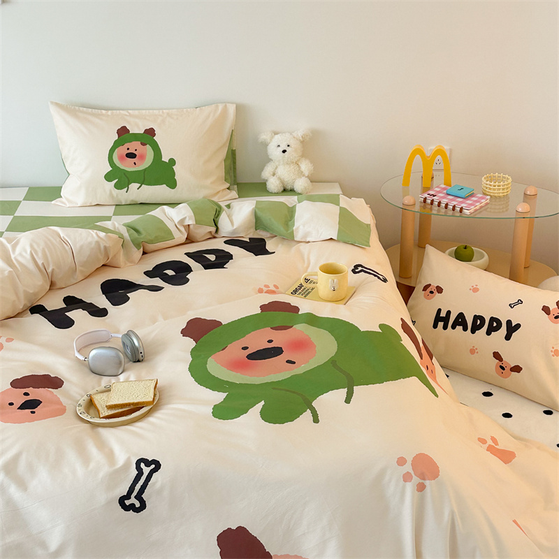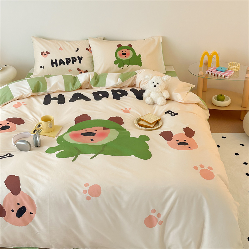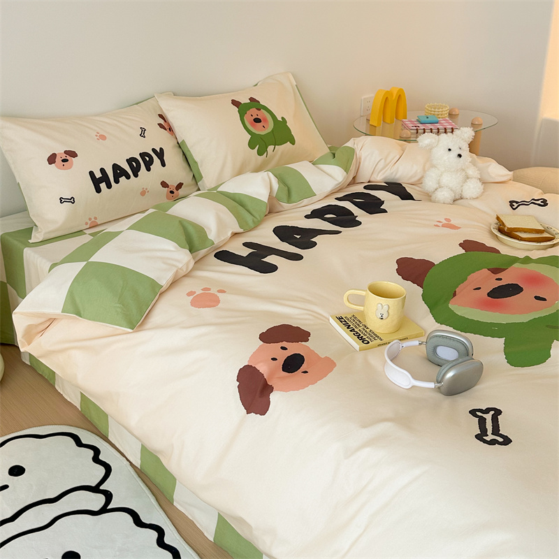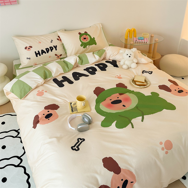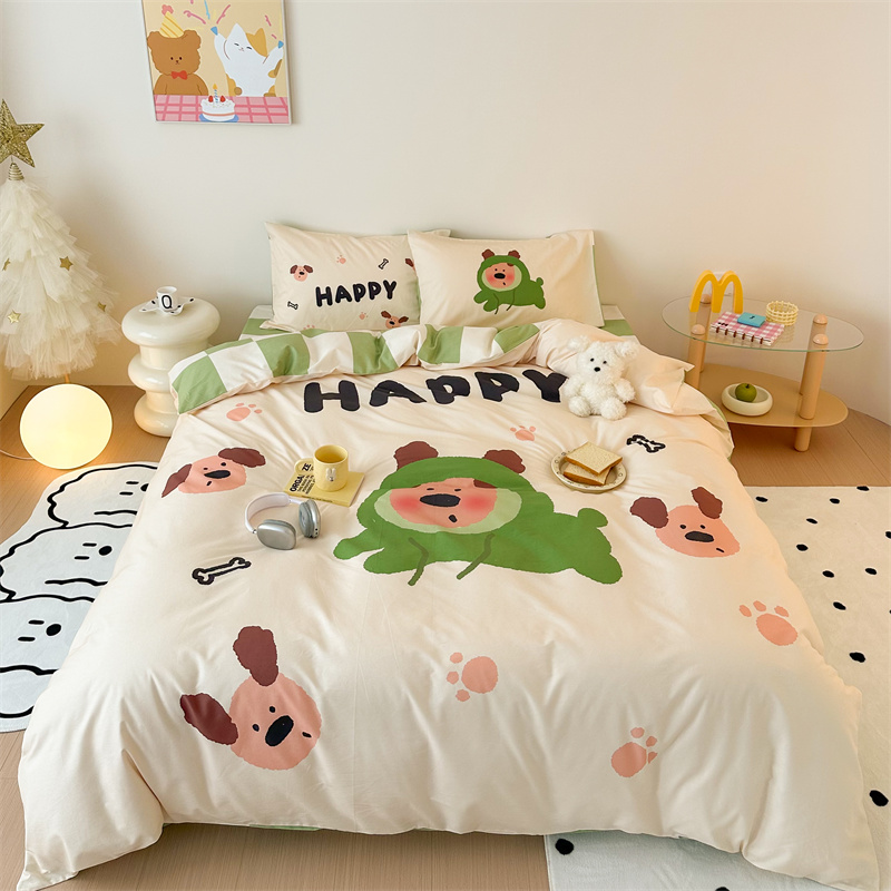 珺柔家纺 2024新款130*70 全棉大版数码印花四件套 开心小狗