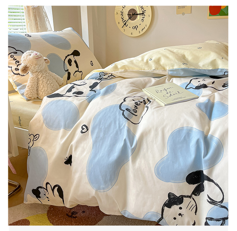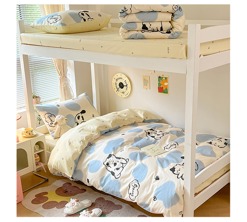 当前位置: 91家纺网 > 商品网购 > 床品套件 > 四件套 > 全棉普通四件套 > 麦伦家居 2024新款40支13372全棉斜纹学生上下铺床品系列 奶牛猫