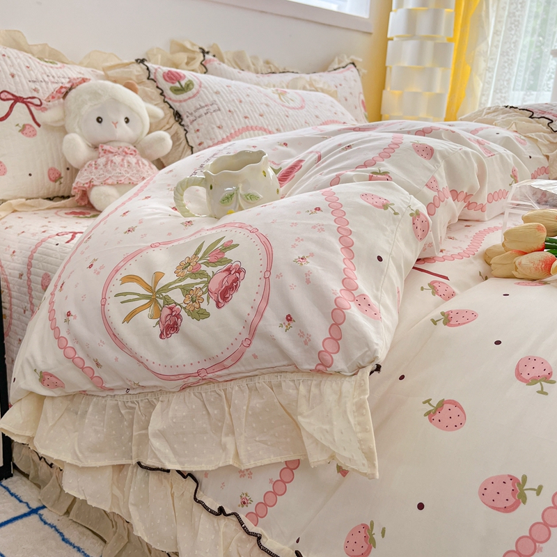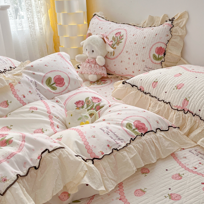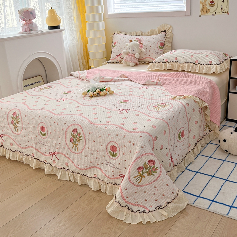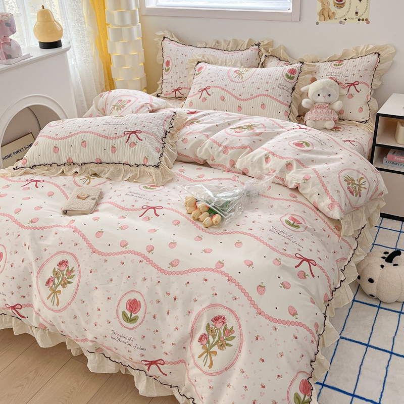 暖居 2024新款韩系全棉高温砂洗棉花床盖被套四件套纯棉床盖三件套 手捧花