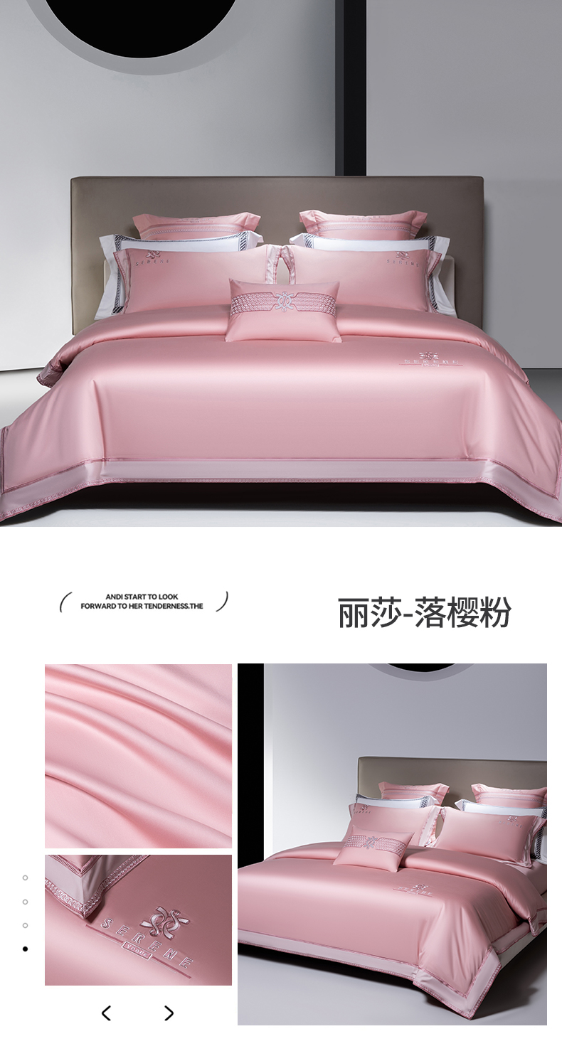商品名称:高大尚婚庆馆 2025新款长绒棉高端绣花四件套 丽莎 落樱粉