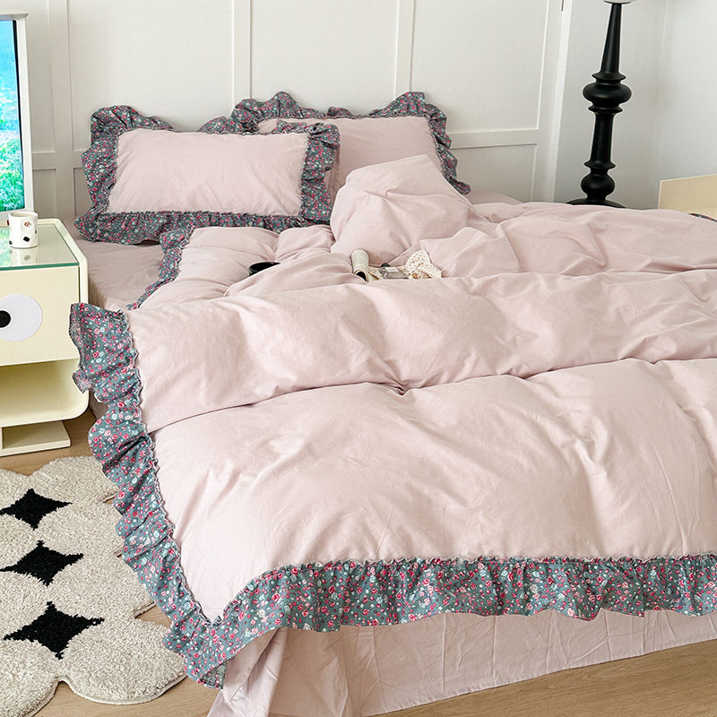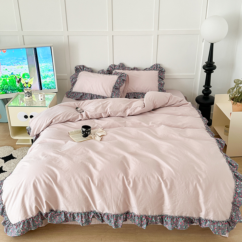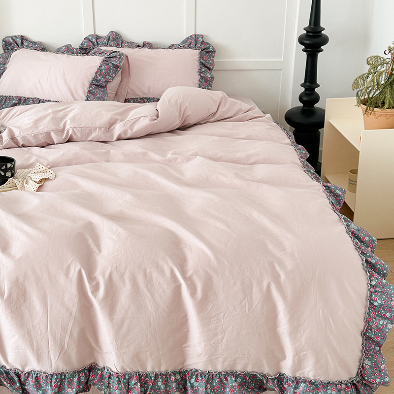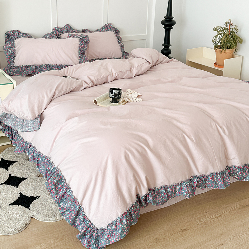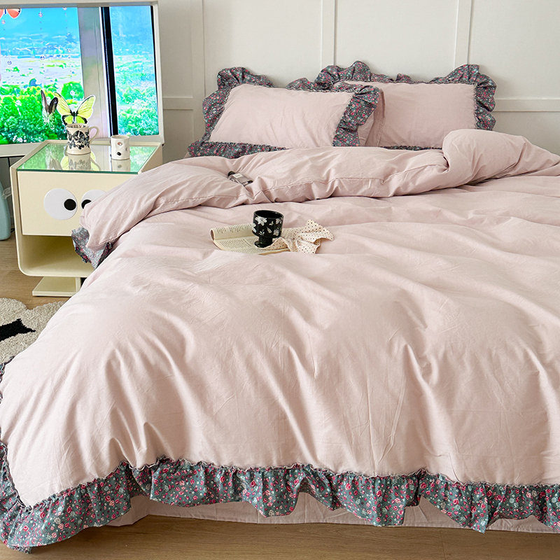 昔可家纺 2024新款纯色碎花花边全棉小清新四件套 紫韵花海