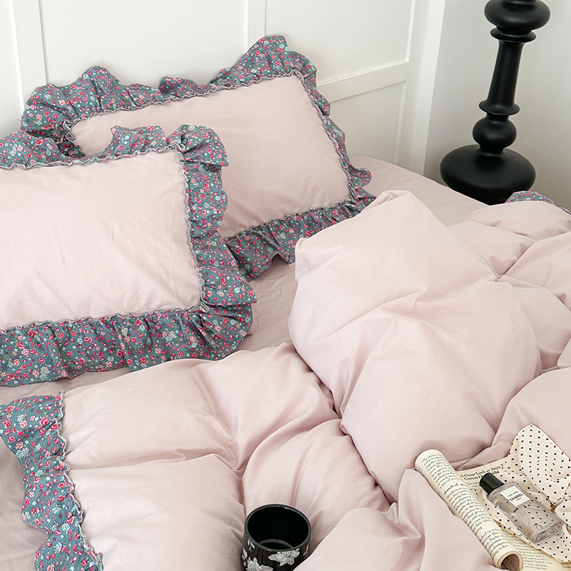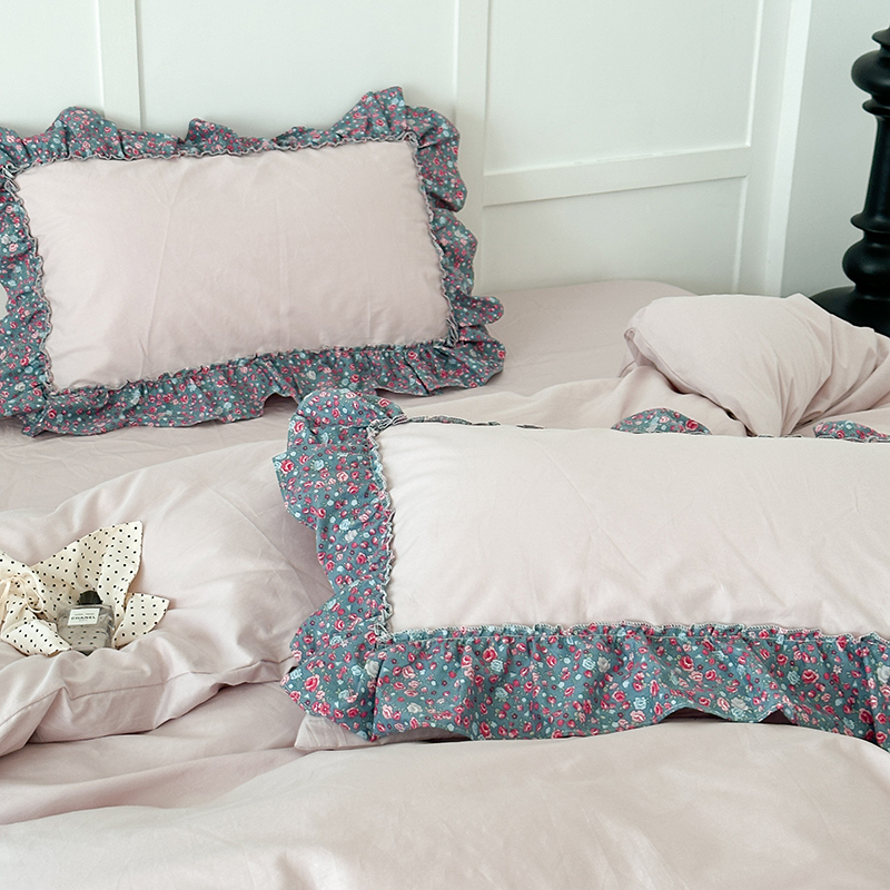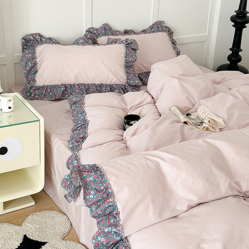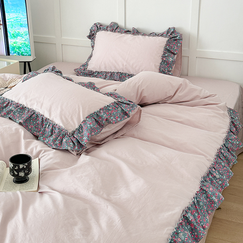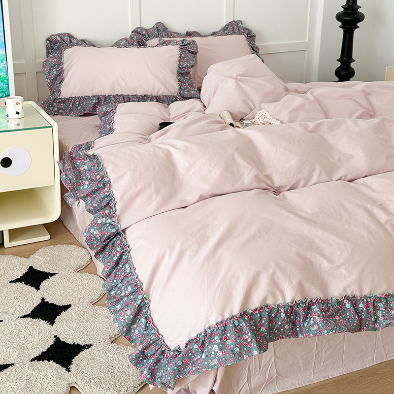 昔可家纺 2024新款纯色碎花花边全棉小清新四件套 紫韵花海