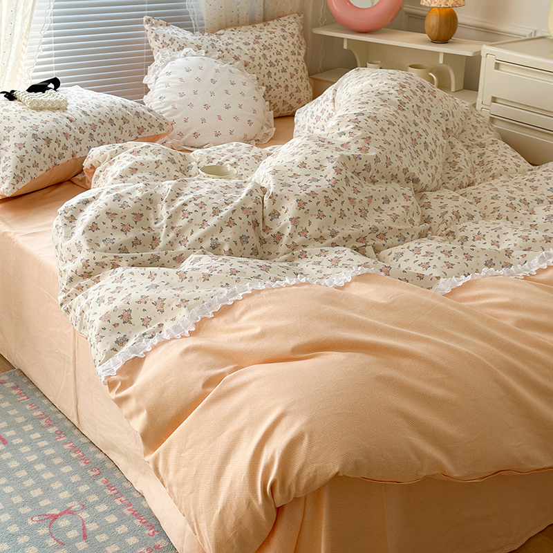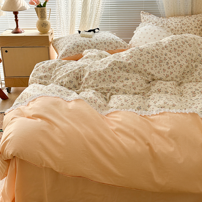 商品名称:昔可家纺 2024新款拼接蕾丝花边全棉四件套 彩色玫瑰